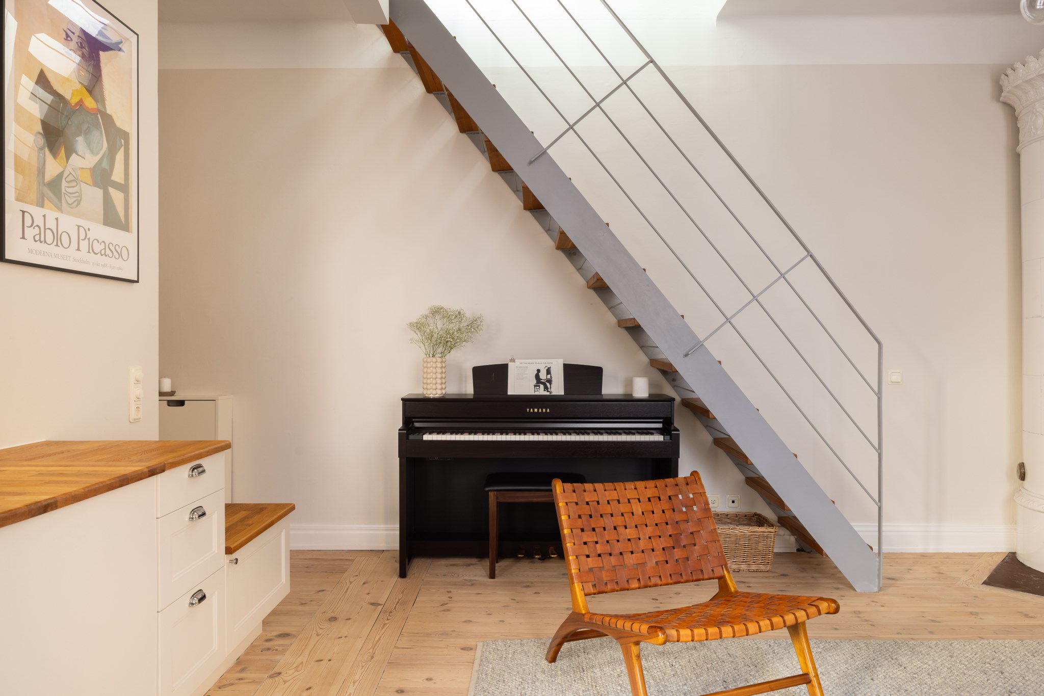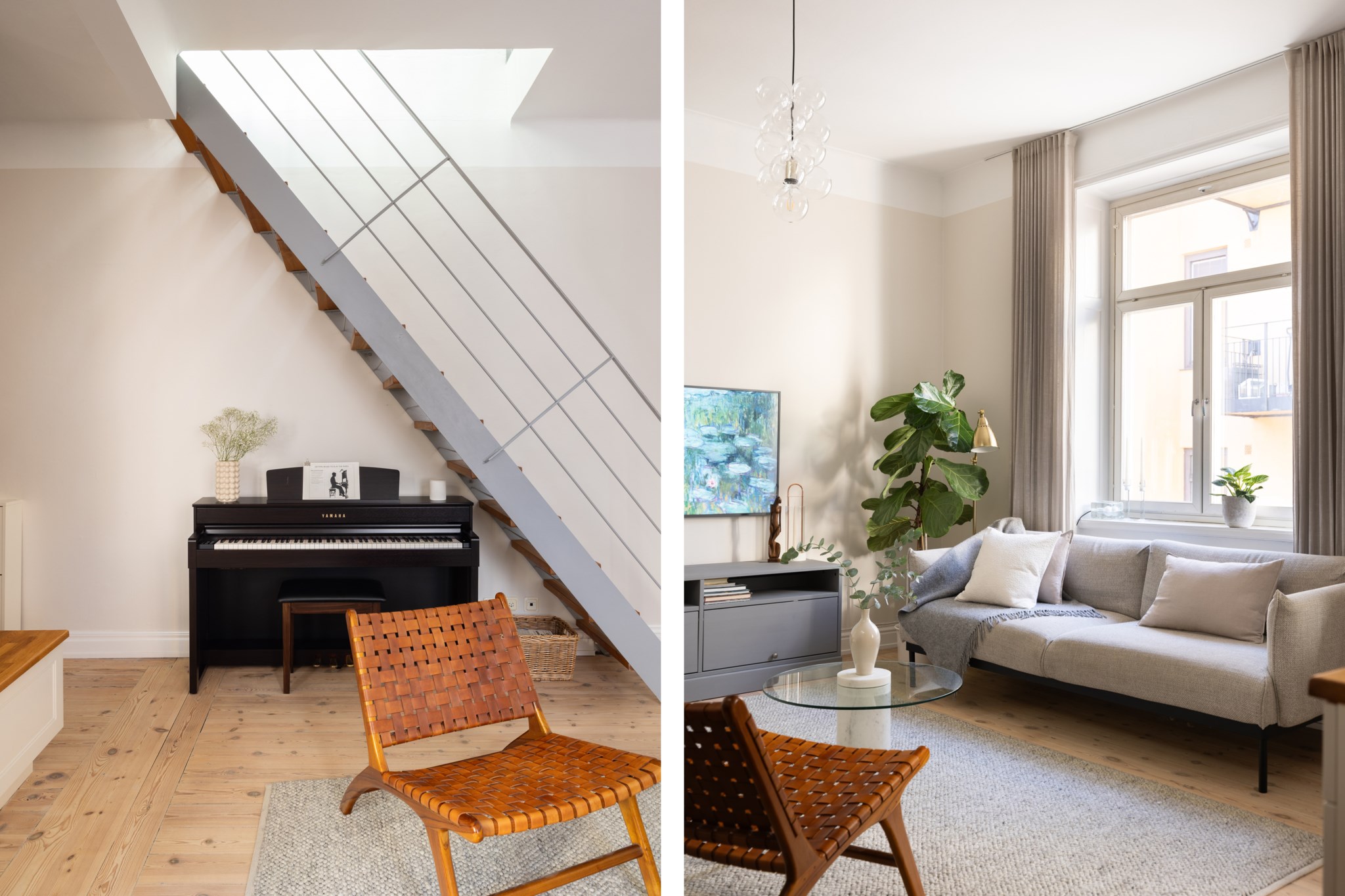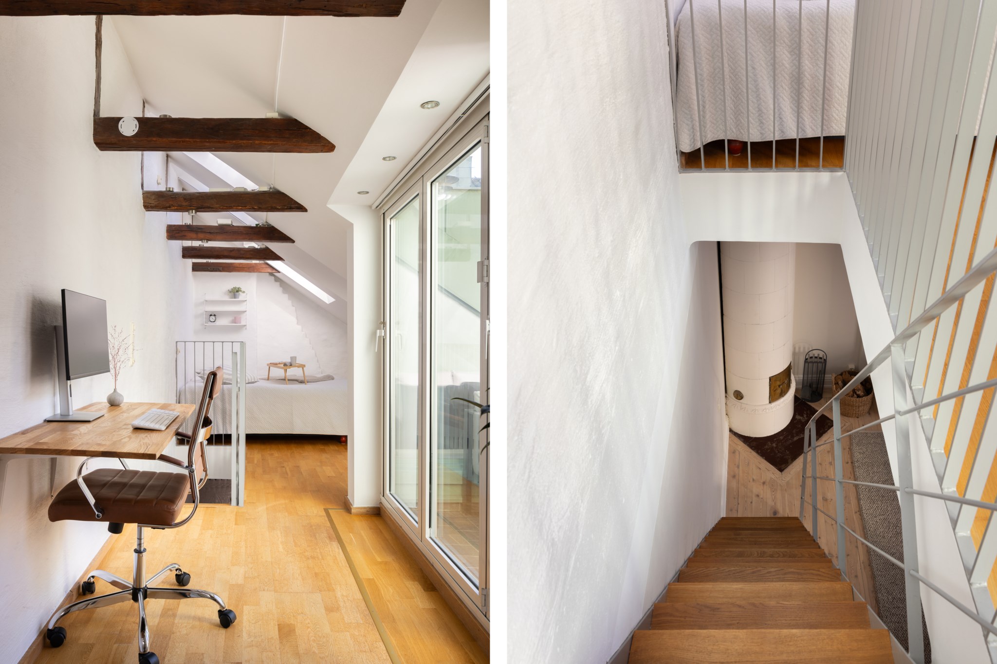 Välkommen till Norrtullsgatan 26A, en unik etagelägenhet som förenar sekelskiftescharm med modern funktion. Här bor du i ett hem med karaktär, ljus och rymd fördelat på två plan, med en solig terrass i söderläge som kronan på verket. På entréplanet möts du av vitlaserade plankgolv och en social yta där kök och vardagsrum smälter samman i en öppen planlösning. Köket har vita, sekelskiftesinspirerade skåpsluckor och en bänkskiva i trä – både tidlöst och inbjudande. I vardagsrummet står den vackra, fungerande kakelugnen som blir en självklar samlingspunkt och skapar en varm atmosfär under årets kallare månader. Här finns även ett stilrent badrum med helkaklade vita väggar och grå klinkergolv. En trappa upp väntar bostadens privata del med ett rofyllt sovrum och ett praktiskt kontorsutrymme under snedtaket. De platsbyggda garderoberna maximerar förvaringsmöjligheterna, och därtill finns två rymliga förråd som gör det enkelt att hålla ordning. Från detta plan nås också lägenhetens höjdpunkt – den soliga terrassen i söderläge, perfekt för odling, avkoppling eller middagar i kvällssolen. Bostaden är idag disponerad som en välplanerad 2,5:a men kan med enkla medel göras om till en 3:a för den som önskar ytterligare ett sovrum