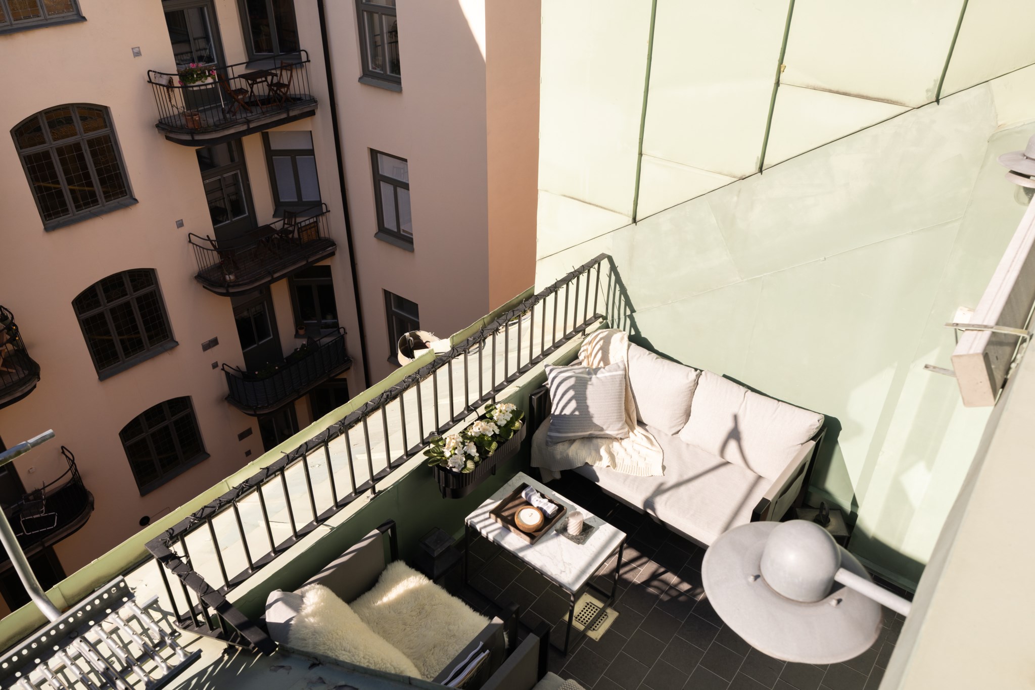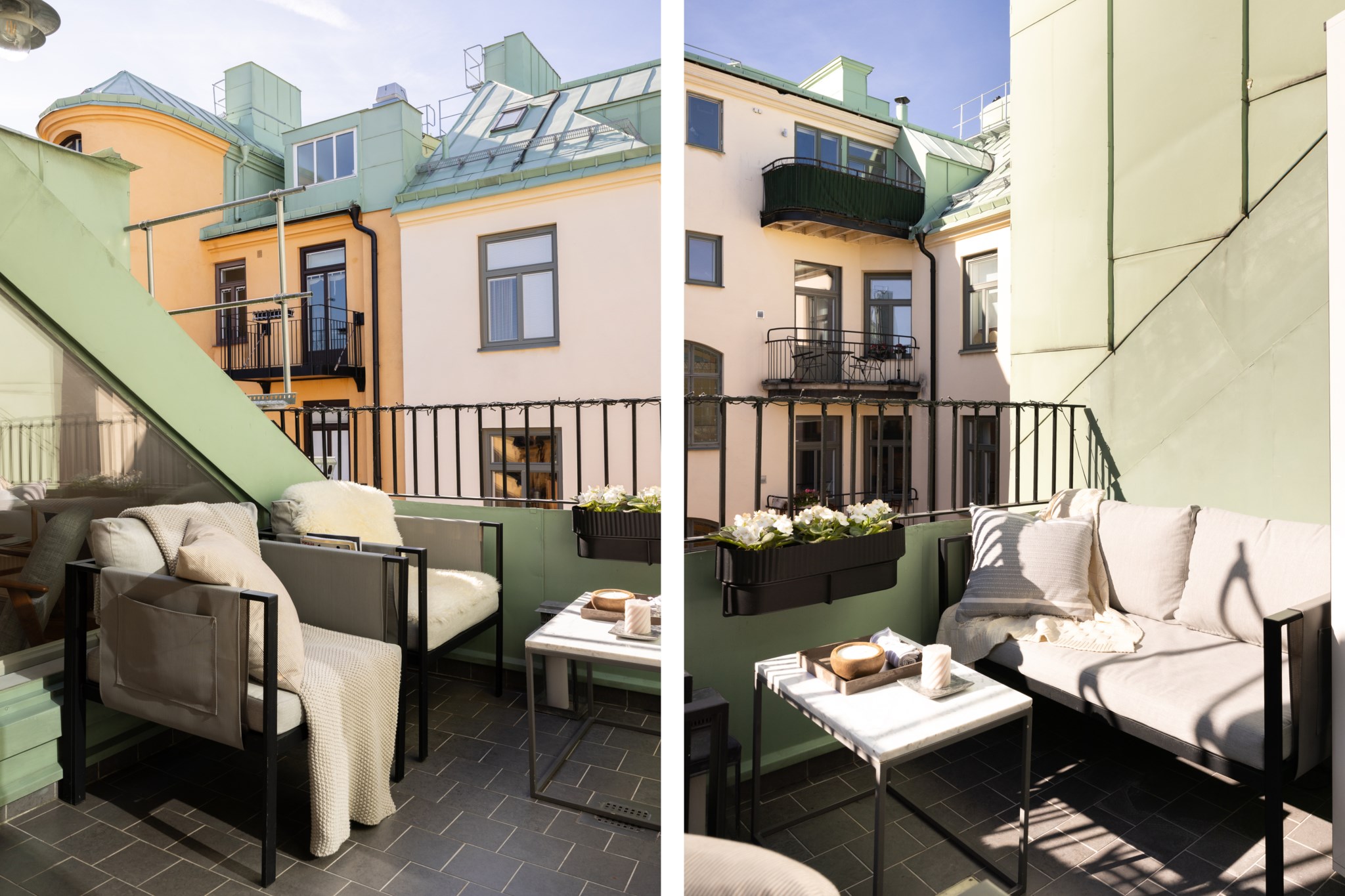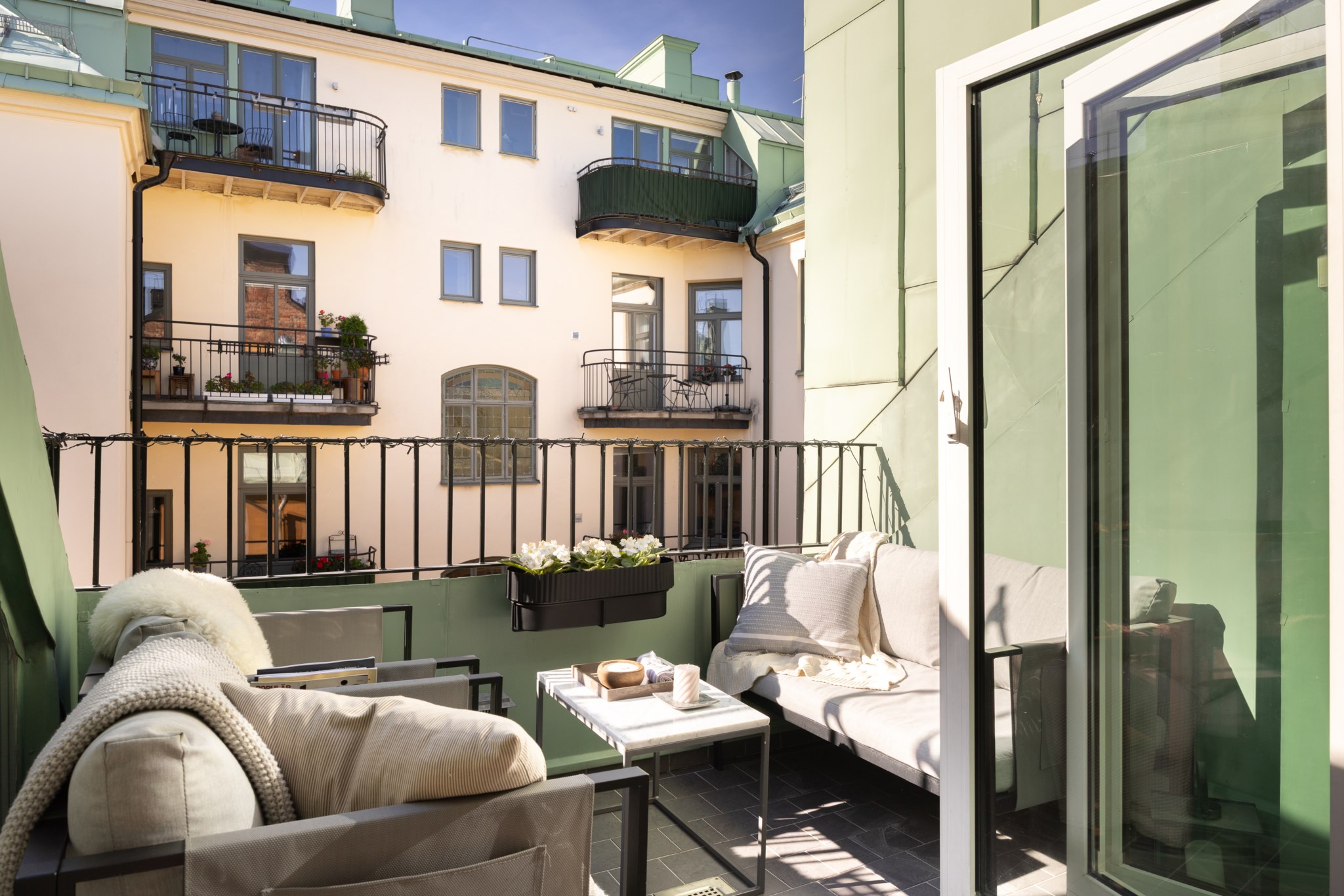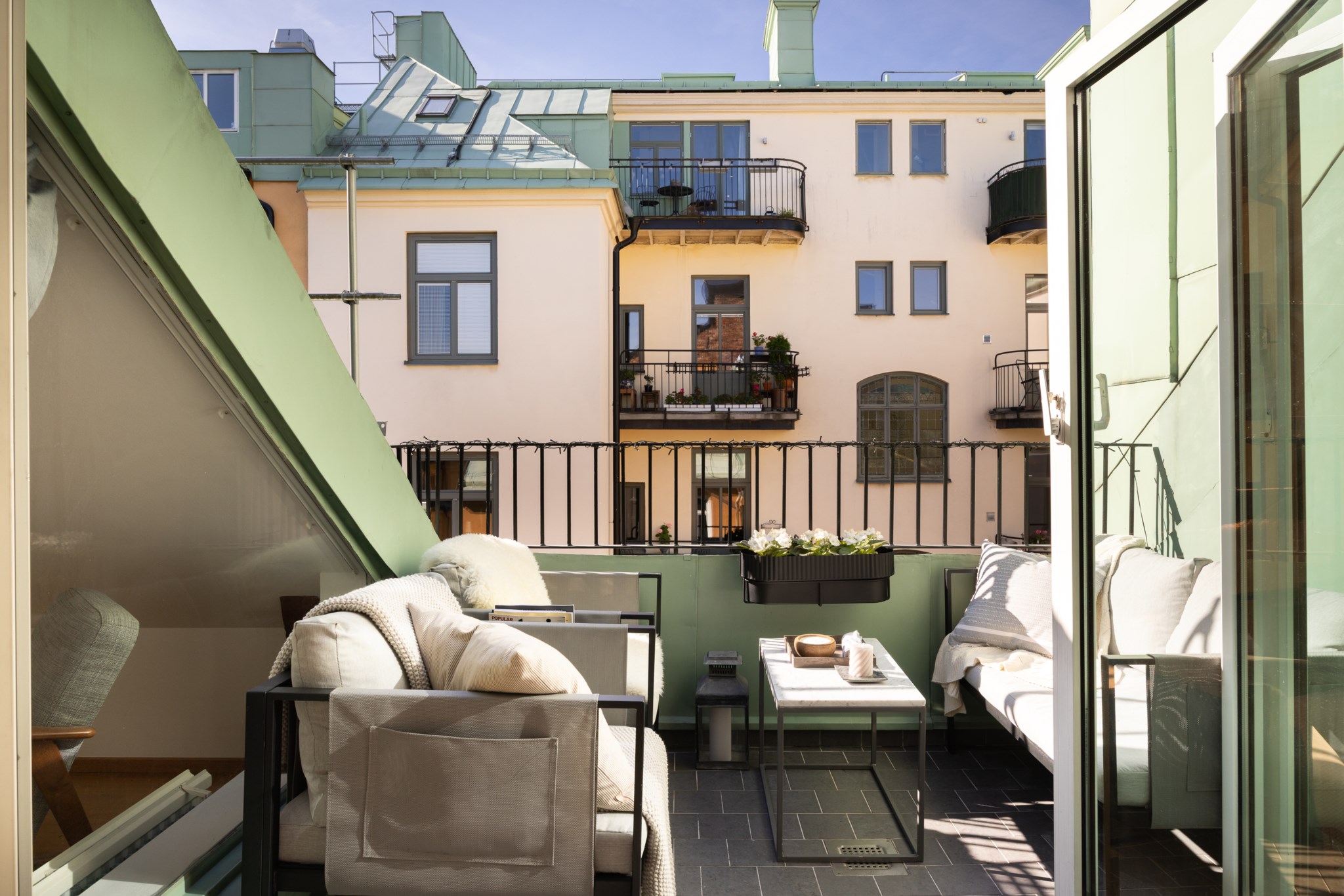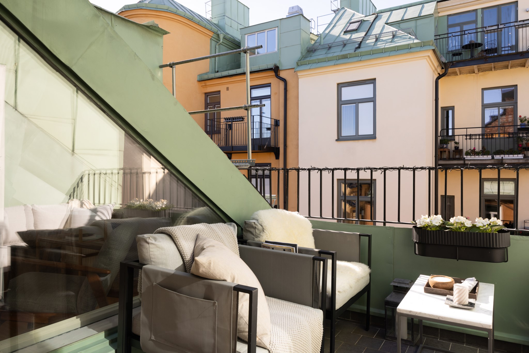 Drömlik etagelägenhet med kakelugn & solig terrass mot grönskande innergård!