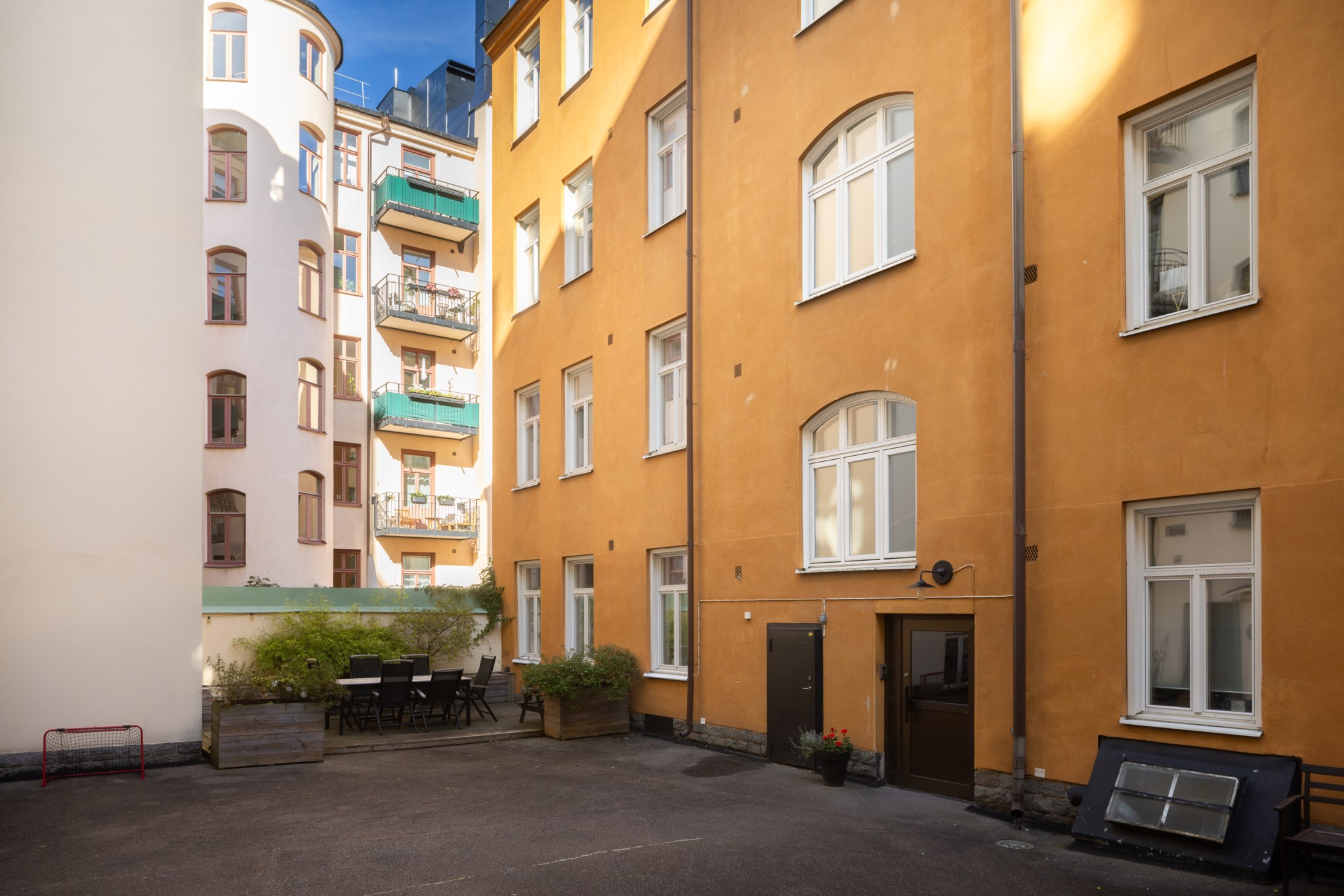 Föreningen har inga större renoveringar planerade i dagsläget (kontrollerat 2025-09-26).GårdsplatsFöreningen har en gemensam innergård med uteplats och grillmöjligheter.ParkeringI området råder boendeparkering.Gemensamma utrymmen- Tvättstuga (källarplan) utrustad med två tvättmaskiner, torktumlare och torkskåp.