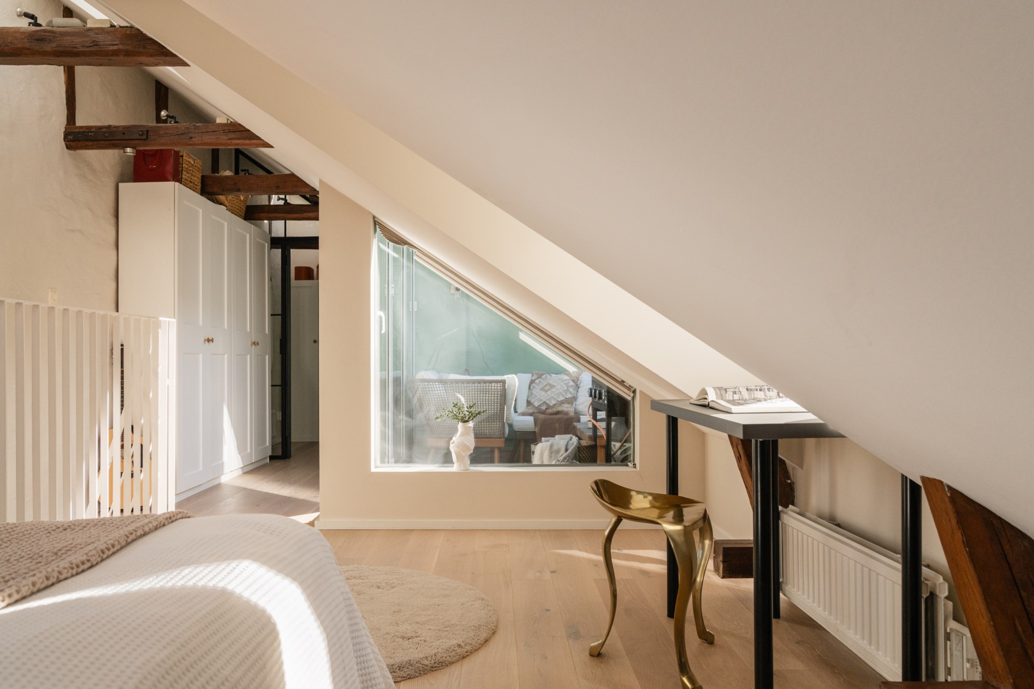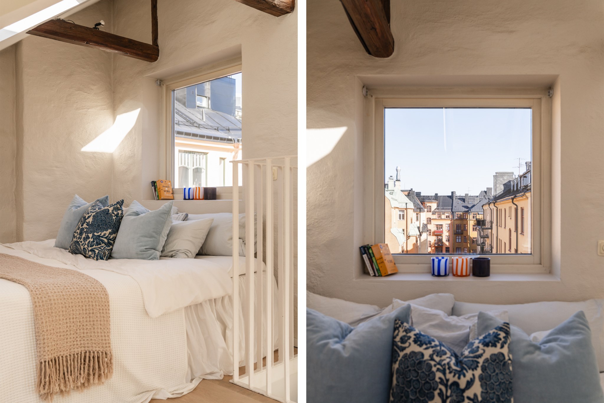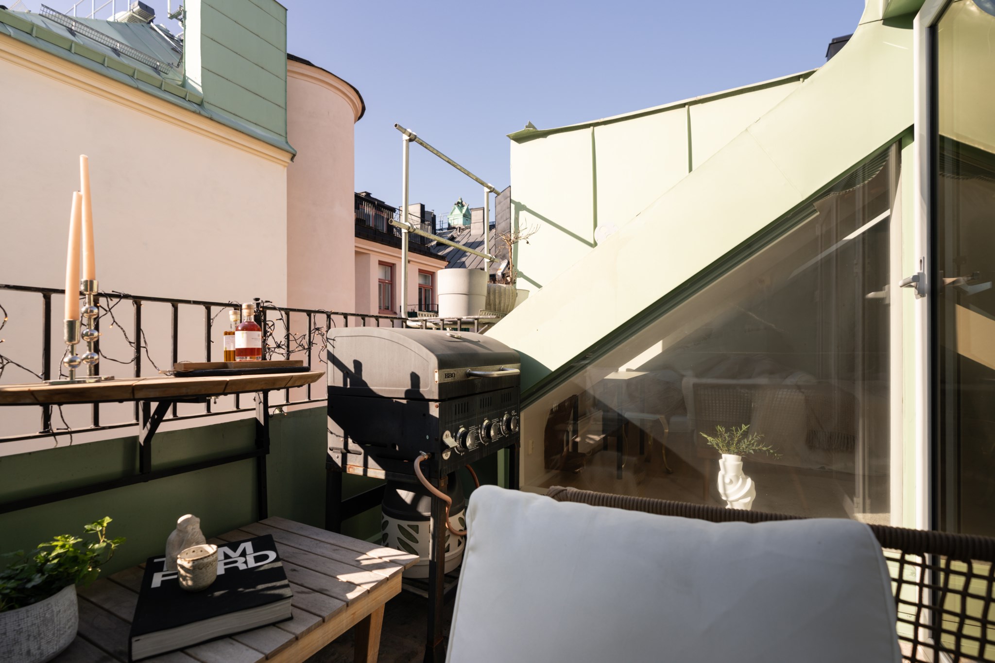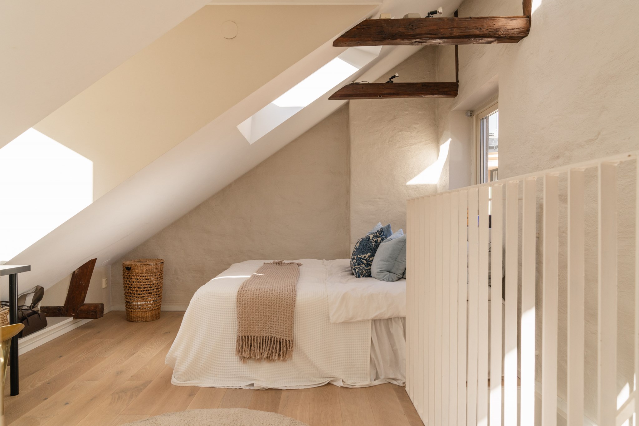 Bostaden bjuder på en alldeles särskild atmosfär – en plats där varje detalj samspelar. Den fungerande kakelugnen blir hemmets naturliga hjärta och skapar en varm och inbjudande känsla under årets kallare månader. Den öppna planlösningen tillsammans med etagelösningen ger bostaden karaktär och en social dynamik där rummen binds samman på ett naturligt sätt. Från bostaden nås även den underbara terrassen i rakt söderläge – en privat oas ovan stadens tak. Här kan du njuta av sol större delen av dagen, från lugna morgonkaffen till långa middagar i kvällssolen. Kombinationen av taknära läge och söderläge skapar ett fantastiskt ljusinsläpp som förstärker bostadens luftiga och harmoniska känsla. Planlösningen är både genomtänkt och charmig, där kvadratmeterna nyttjas optimalt och etageplanet bidrar till en tydlig separation mellan sociala ytor och mer privata delar. Resultatet är ett hem som känns större än sina kvadratmeter och som erbjuder flera naturliga möbleringsmöjligheter.
