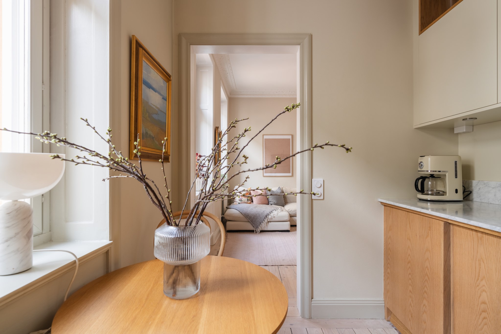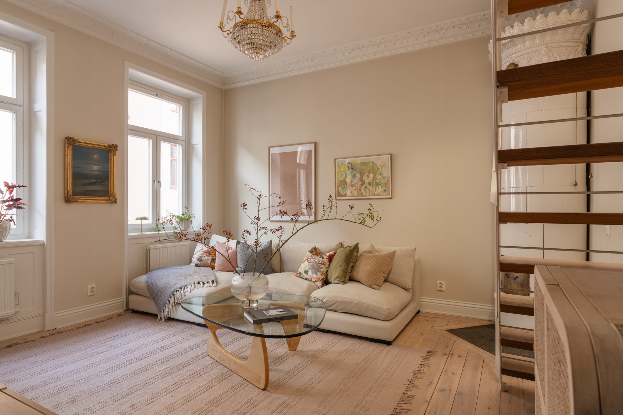 Högst upp i huset, i ett vackert sekelskifteshus från 1905, väntar denna unika och karaktärsfulla etagevåning. Här möts klassisk charm och modern funktion i ett hem där ljuset flödar genom generösa fönsterpartier och där planlösningen skapar en härlig rymd mellan våningsplanen.