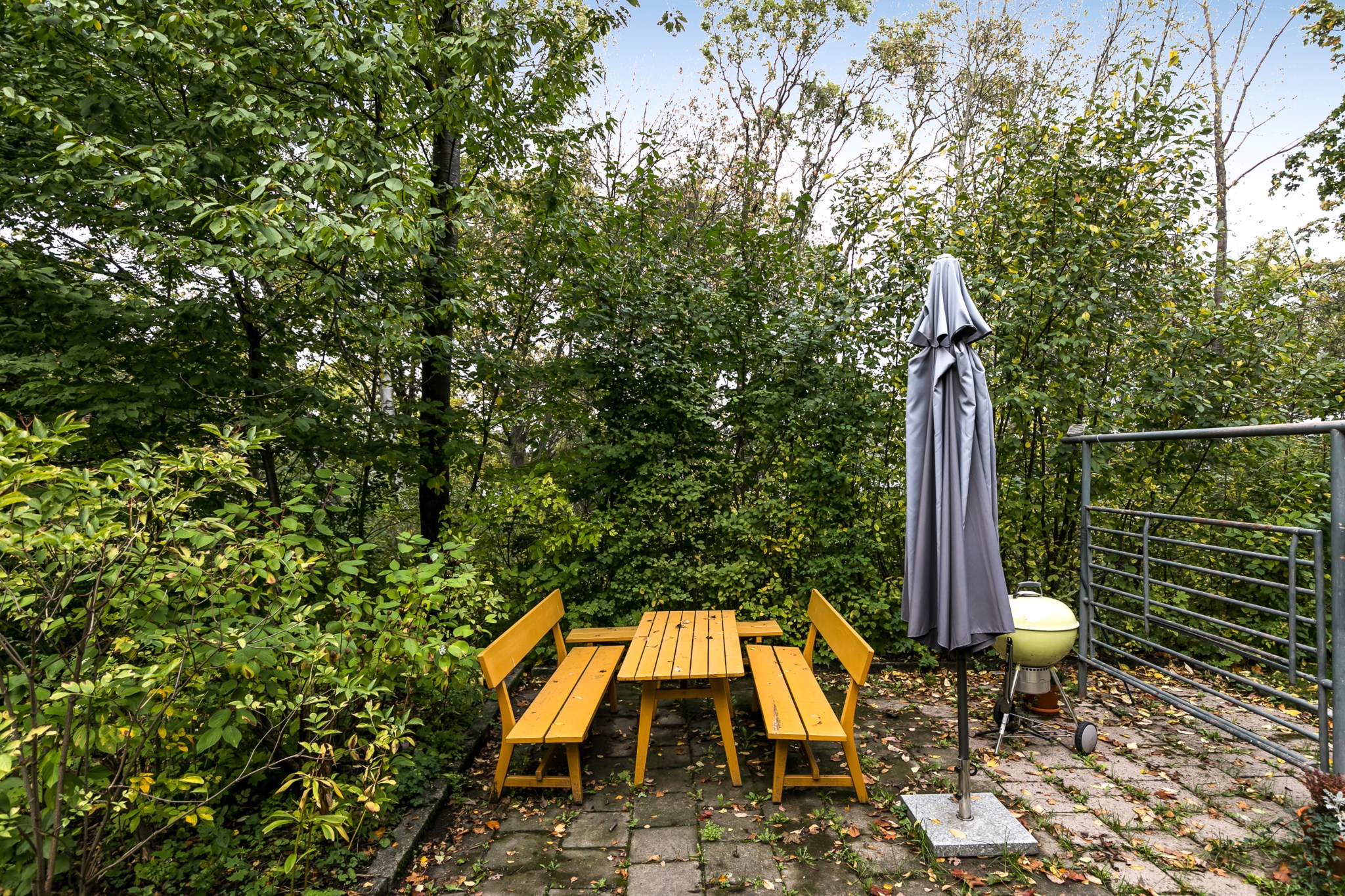 Till bostaden hör en charmig balkong med ett vackert svart smidesräcke. Här finns plats för balkongmöbler och växter med goda möjligheter att skapa en trivsam plats utomhus.