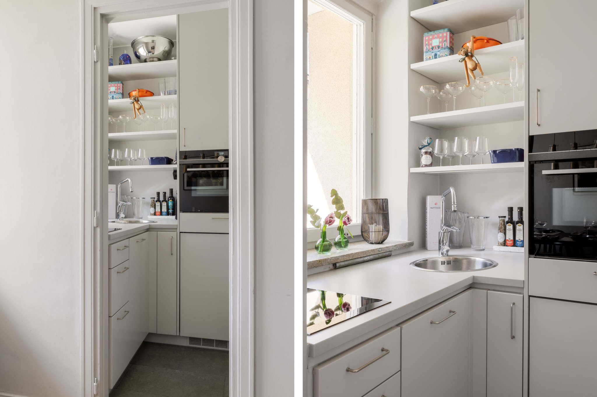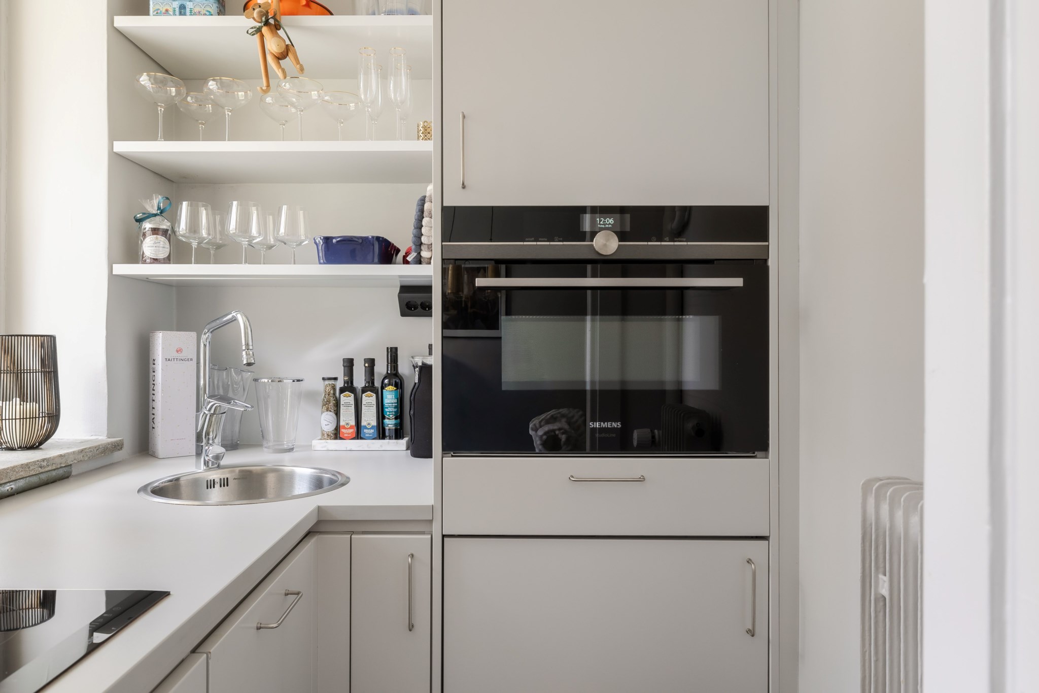 Smakfullt kök från Ballingslöv i stelren design med ljusgrå, släta luckfronter och beslag i rostfritt stål. Köket är utrustat med diskmaskin, kombinerad micro/ugn, kyl med frysfack spishäll samt diskho. Ett fin fönster förser köket med ett härligt ljus.