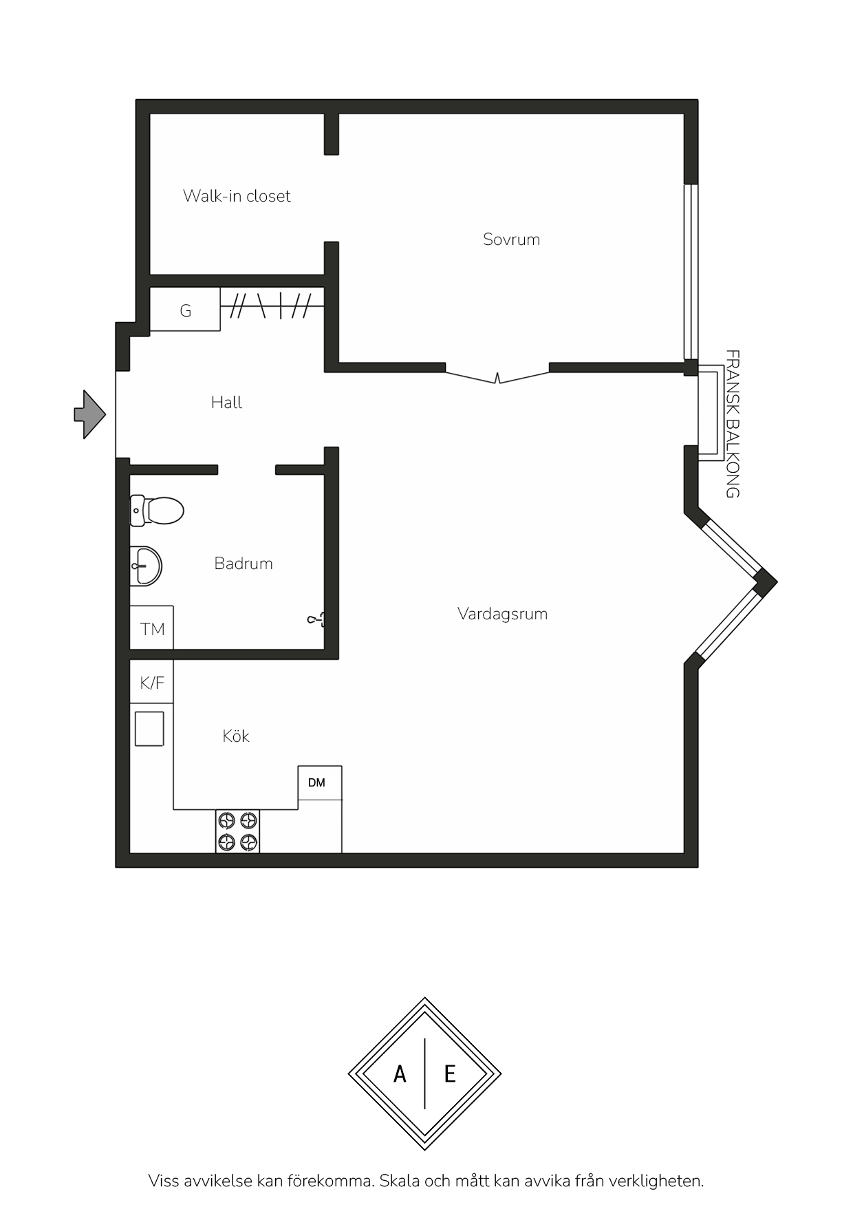Det erbjuds en öppen och social planlösning mellan kök och vardagsrum med ett funktioinellt kök med integrerade vitvaror (ink diskmaskin), ett rymligt sovrum som försluts med vackra spröjsade dubbeldörrar samt en walk in closet med mycket god förvaring. Badrummet är renoverat i modern tappning och är utrustat med tvättmaskin för maximal komfort.
