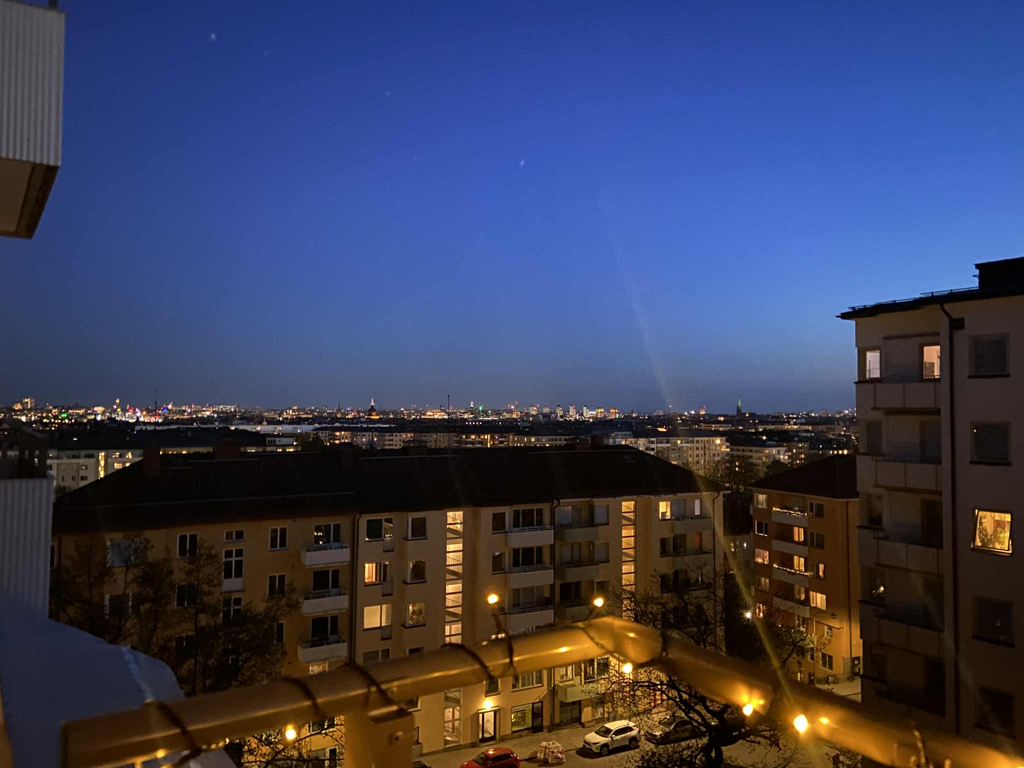 Fantastisk balkong i sydvästläge med sol från tidig eftermiddag till sen kväll. Plats för möblemang och planteringar. Sagolik utsikt och högt fritt läge. Balkongen nås från vardagsrummet.