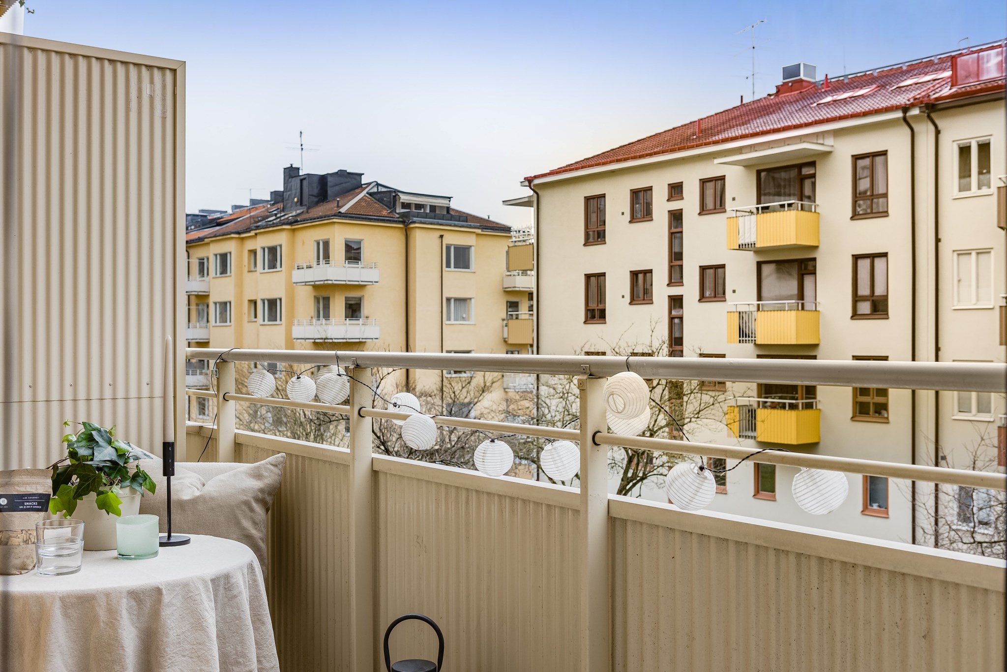 Det finns en gemensam takterass för medlemmarna att disponera.
