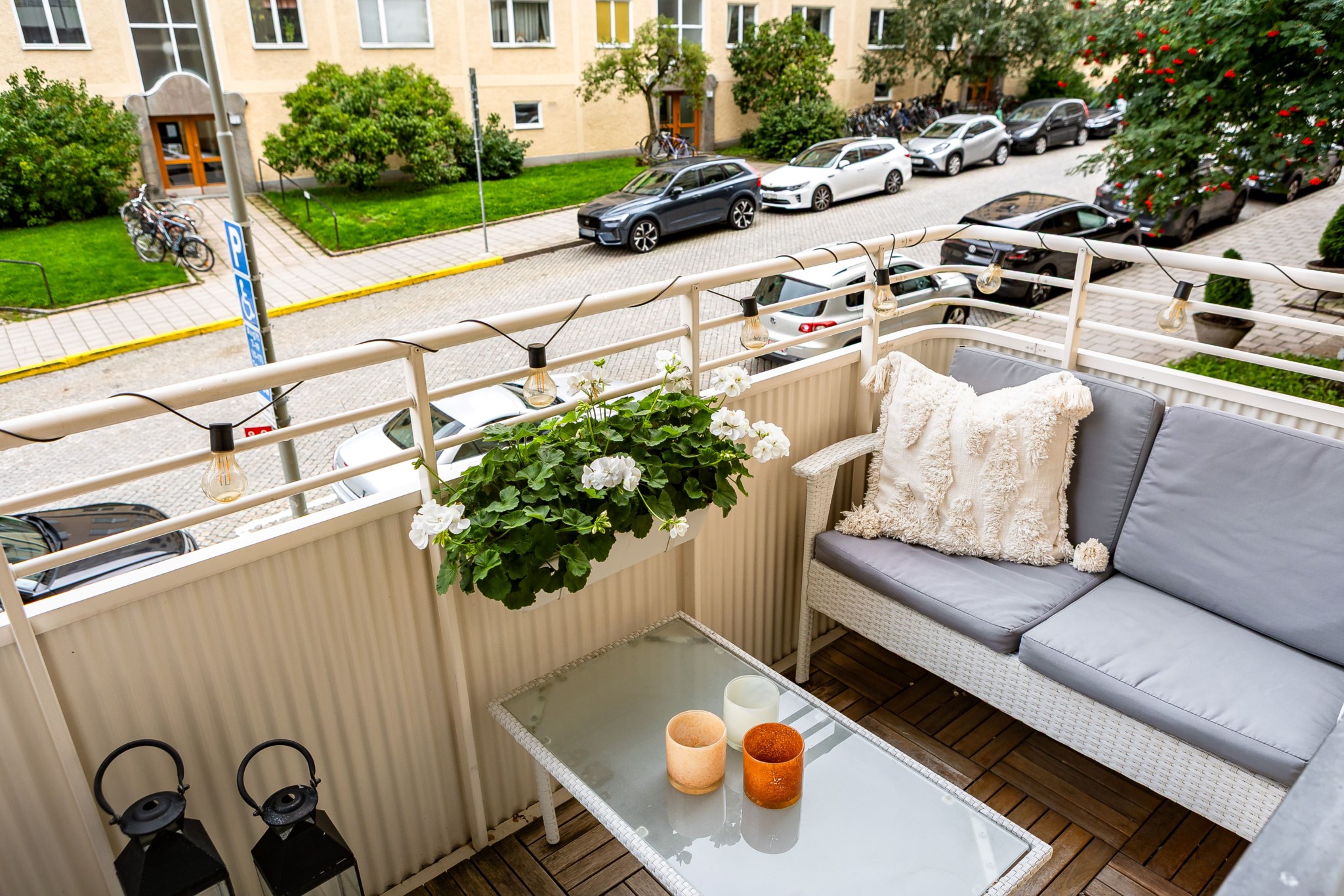 Till bostaden hör en trevlig balkong med plats för både balkongmöbler och växter. En perfekt yta att skapa en personlig och trivsam utomhusmiljö.