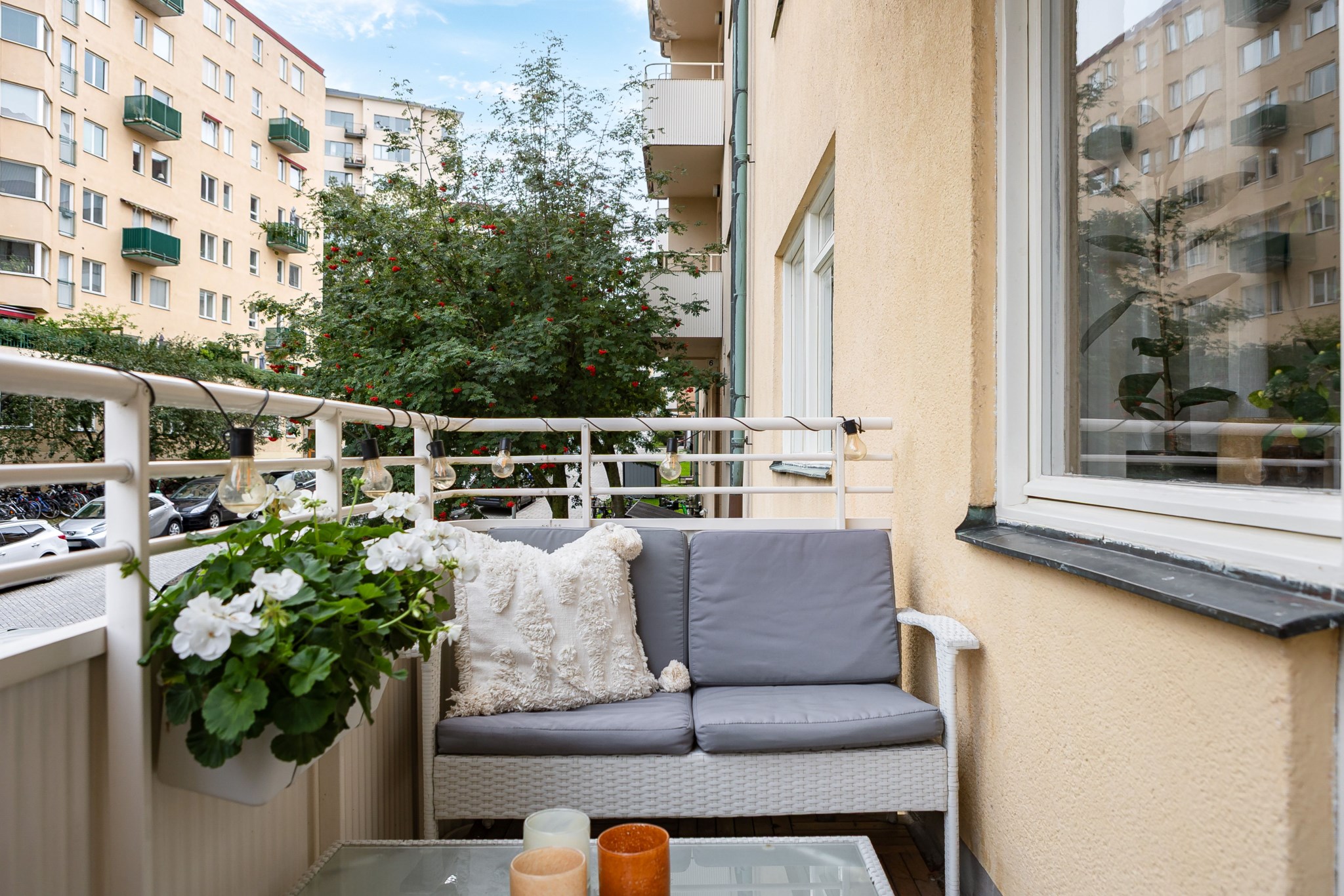 Välkommen till denna fantastiska etta med extra allt i hjärtat av Gärdet! Denna bostad passar dig som inte vill tumma på standard eller läge och som inte nöjer dig med något annat än det bästa. Bostaden har ett smakfullt renoverat kök med integrerade vitvaror inklusive diskmaskin och stor kyl/frys, ett ljust allrum med en stor balkong som vetter mot Rindögatan samt ett klassiskt helkaklat badrum.