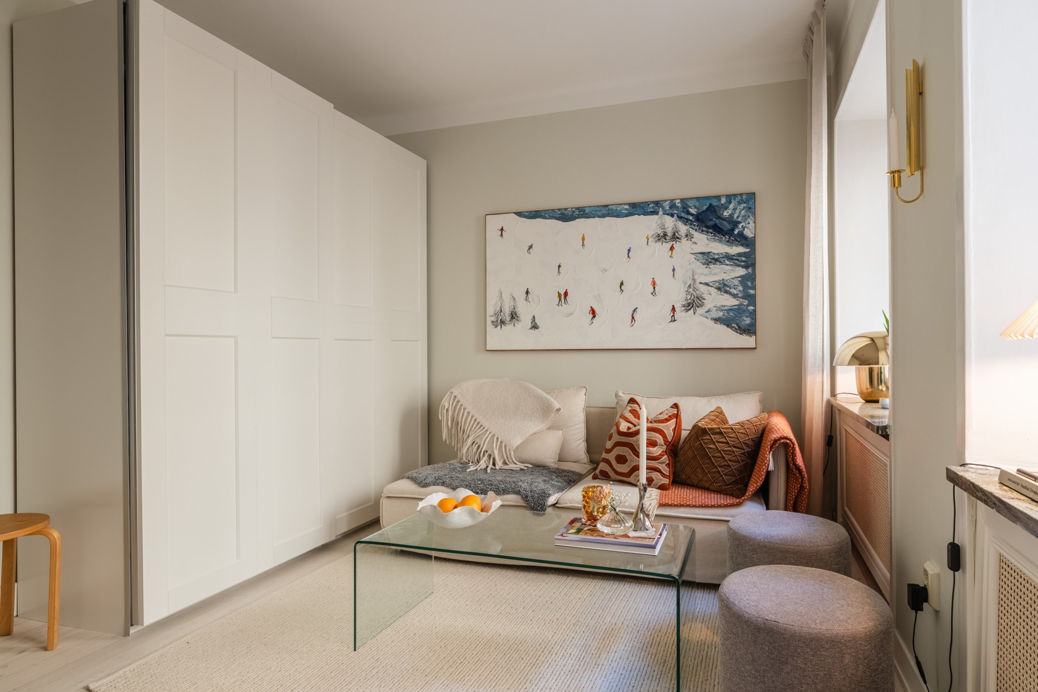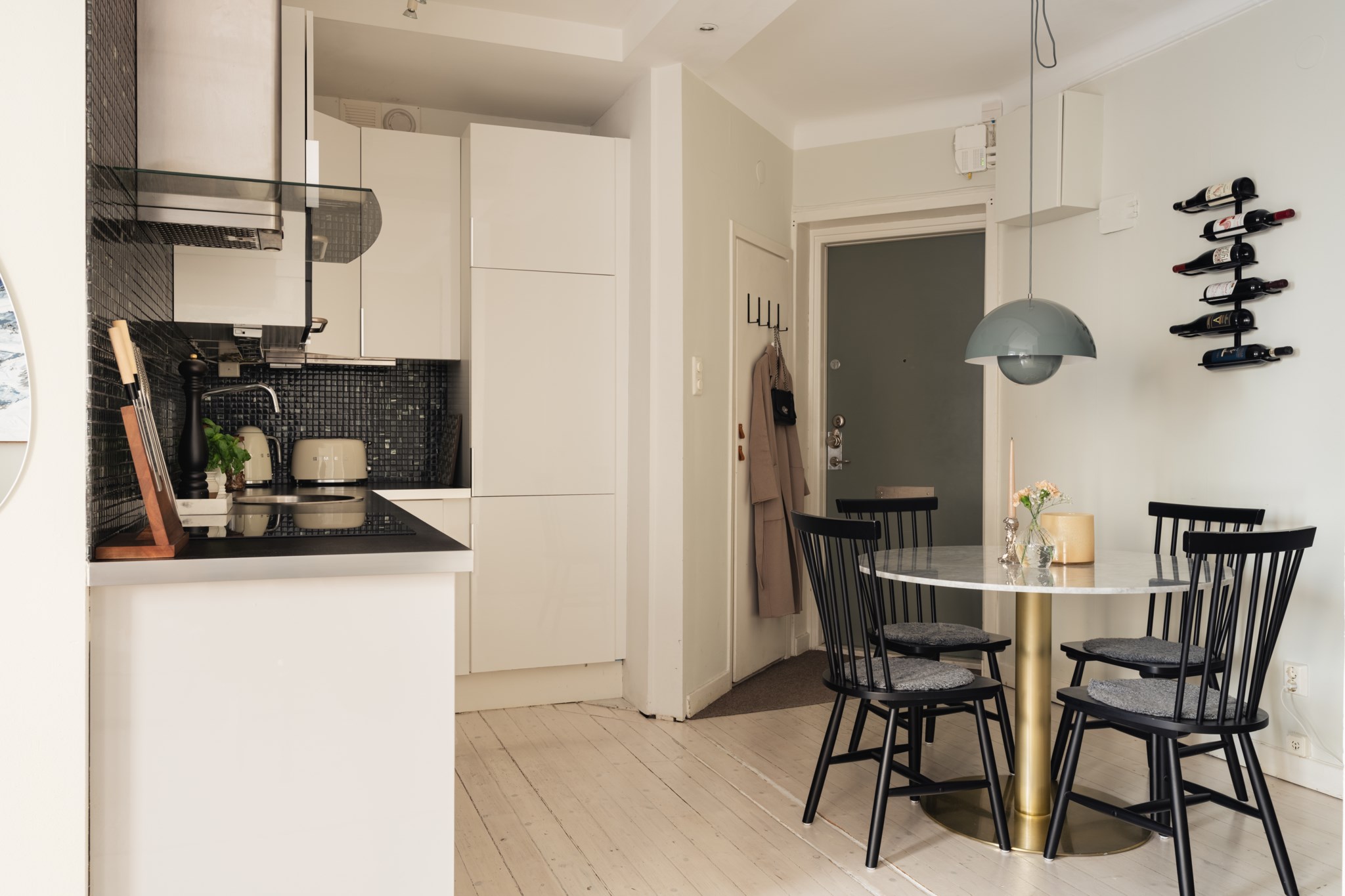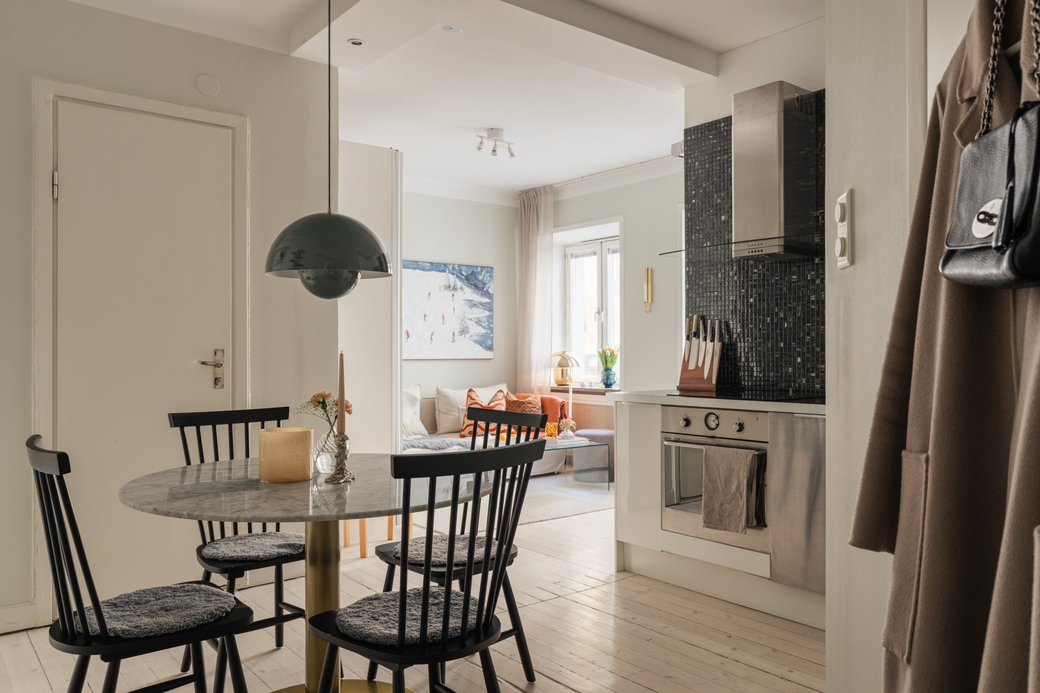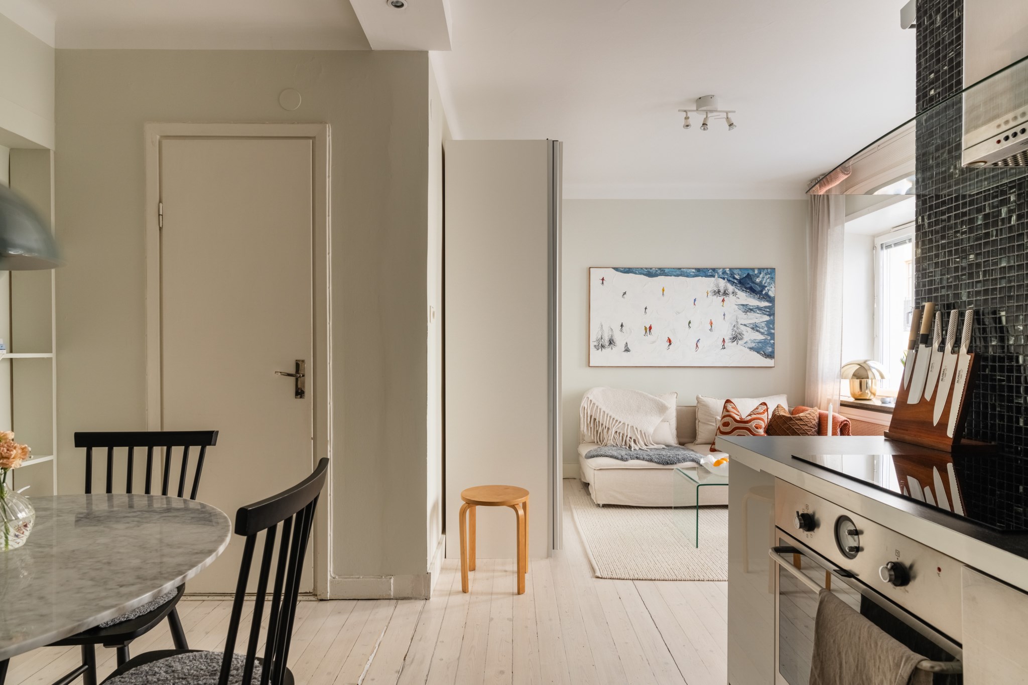 Bostaden erbjuder ett luftigt vardagsrum med plats för både soffgrupp och matbord. Det separata sovrummet gör lägenheten till en riktig minitvåa – perfekt för dig som vill ha tydlig rumsindelning. Köket är praktiskt planerat med bra arbetsytor och förvaring, och badrummet är stilrent och funktionellt. Stora fönster bidrar till ett härligt ljusflöde genom bostaden och förstärker känslan av rymd. Tillsammans med den genomtänkta planlösningen skapas ett hem som passar lika bra för singeln som för paret som vill bo centralt men ändå trivsamt.