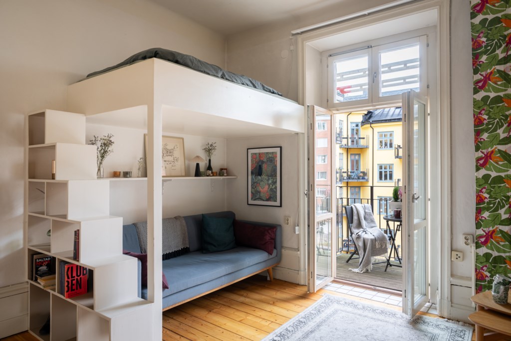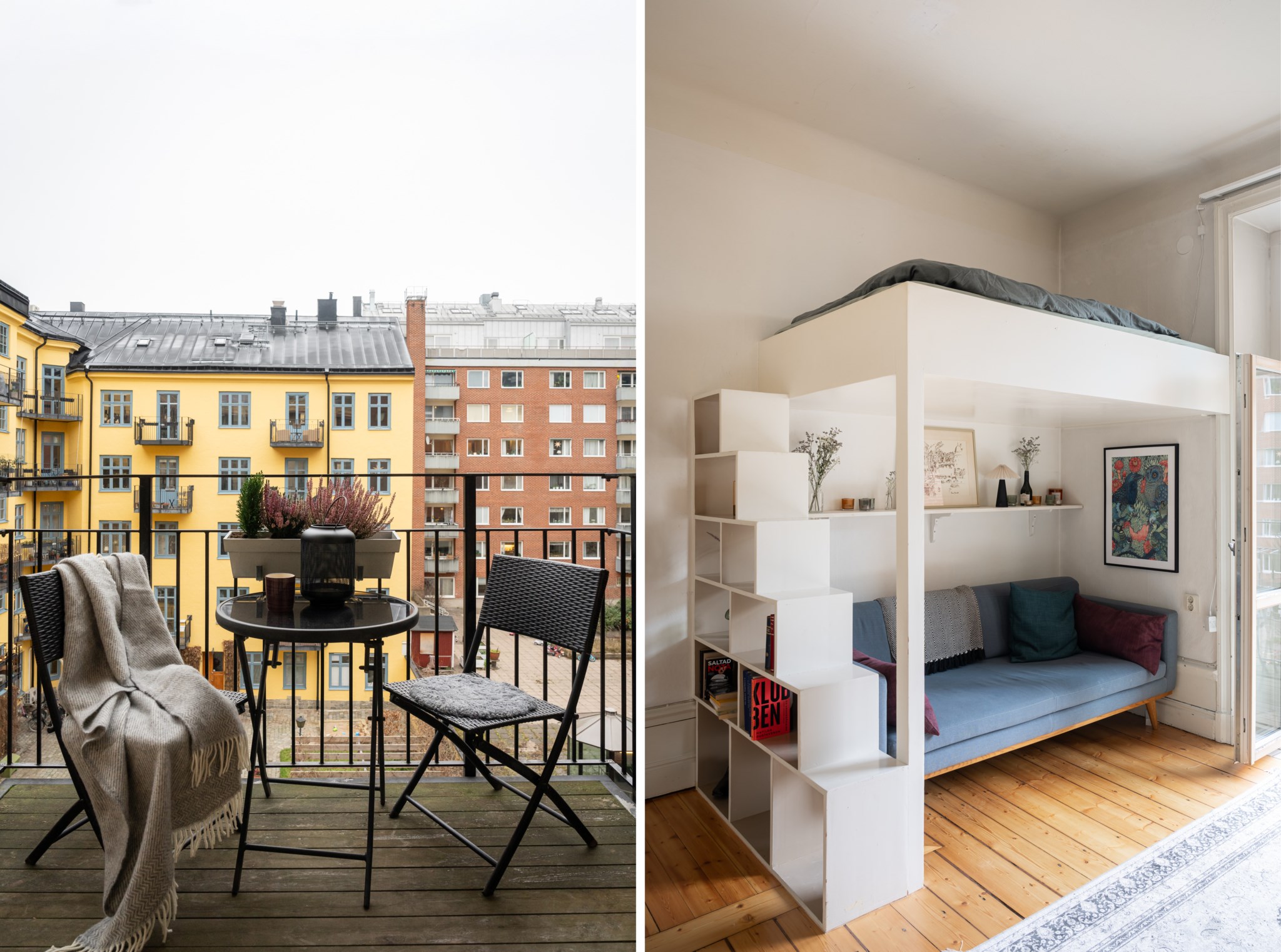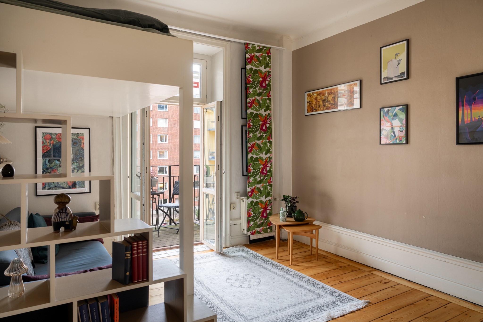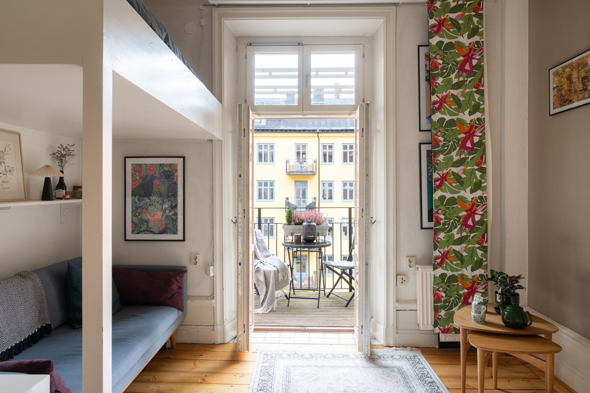 Lägenheten har en härlig rymd med generös takhöjd, vackra trägolv och stora fönsterpartier som släpper in gott om ljus. Det öppna allrummet erbjuder flexibla möbleringsmöjligheter där nuvarande lösning med loftsäng skapar extra golvyta och gör hemmet både stilfullt och funktionellt. Köket är smakfullt renoverat med modern känsla – svart bänkskiva, rostfria köksluckor och genomtänkta arbetsytor. Perfekt för dig som gillar att laga mat. Badrummet är helkaklat i mörka, eleganta toner med dusch och fräscha materialval. Dessutom finns en separat WC, vilket är både praktiskt och lyxigt för en etta i denna storlek. Från vardagsrummet kliver du rakt ut till bostadens absoluta pärla – en mysig balkong med utsikt över innergården.