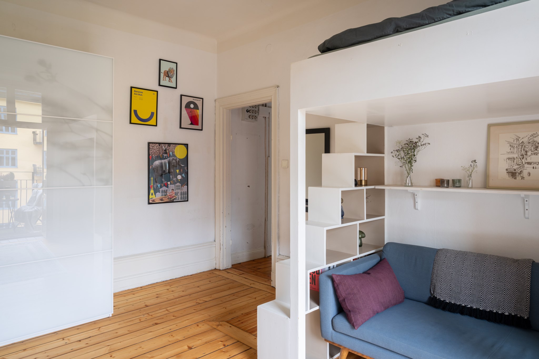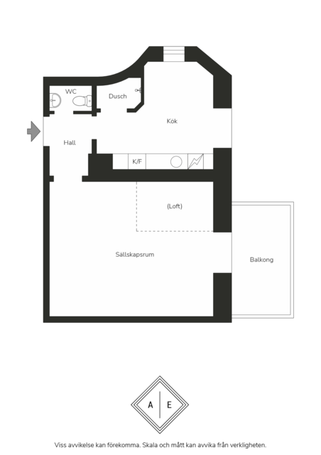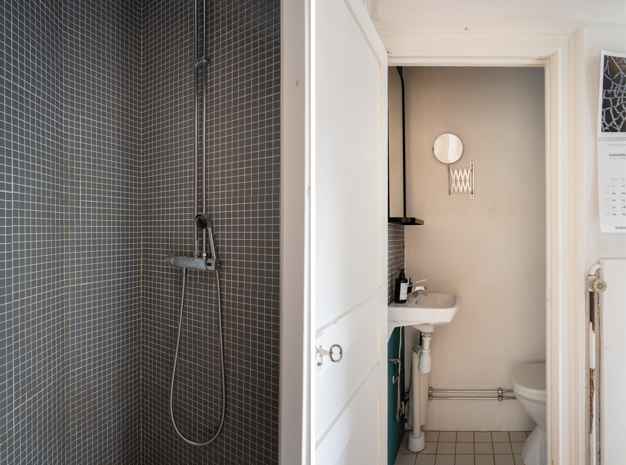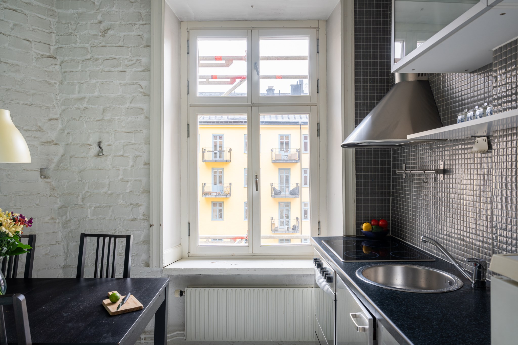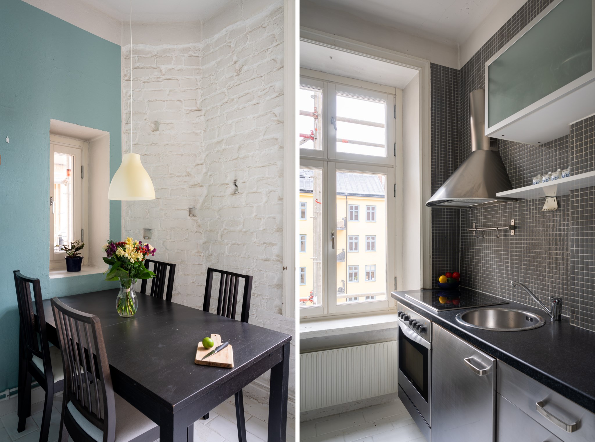 Lägenheten har en härlig rymd med generös takhöjd, vackra trägolv och stora fönsterpartier som släpper in gott om ljus. Det öppna allrummet erbjuder flexibla möbleringsmöjligheter där nuvarande lösning med loftsäng skapar extra golvyta och gör hemmet både stilfullt och funktionellt. Köket är smakfullt renoverat med modern känsla – svart bänkskiva, rostfria köksluckor och genomtänkta arbetsytor. Perfekt för dig som gillar att laga mat. Badrummet är helkaklat i mörka, eleganta toner med dusch och fräscha materialval. Dessutom finns en separat WC, vilket är både praktiskt och lyxigt för en etta i denna storlek. Från vardagsrummet kliver du rakt ut till bostadens absoluta pärla – en mysig balkong med utsikt över innergården.