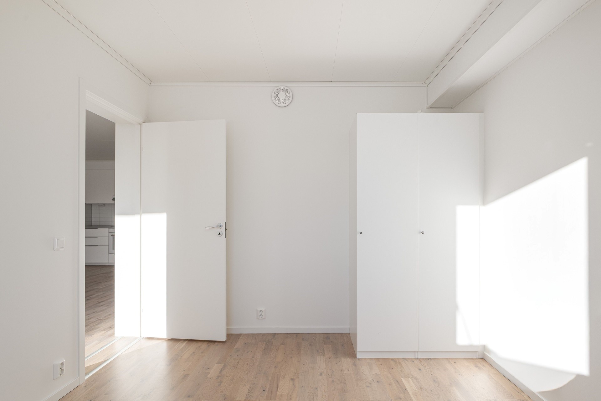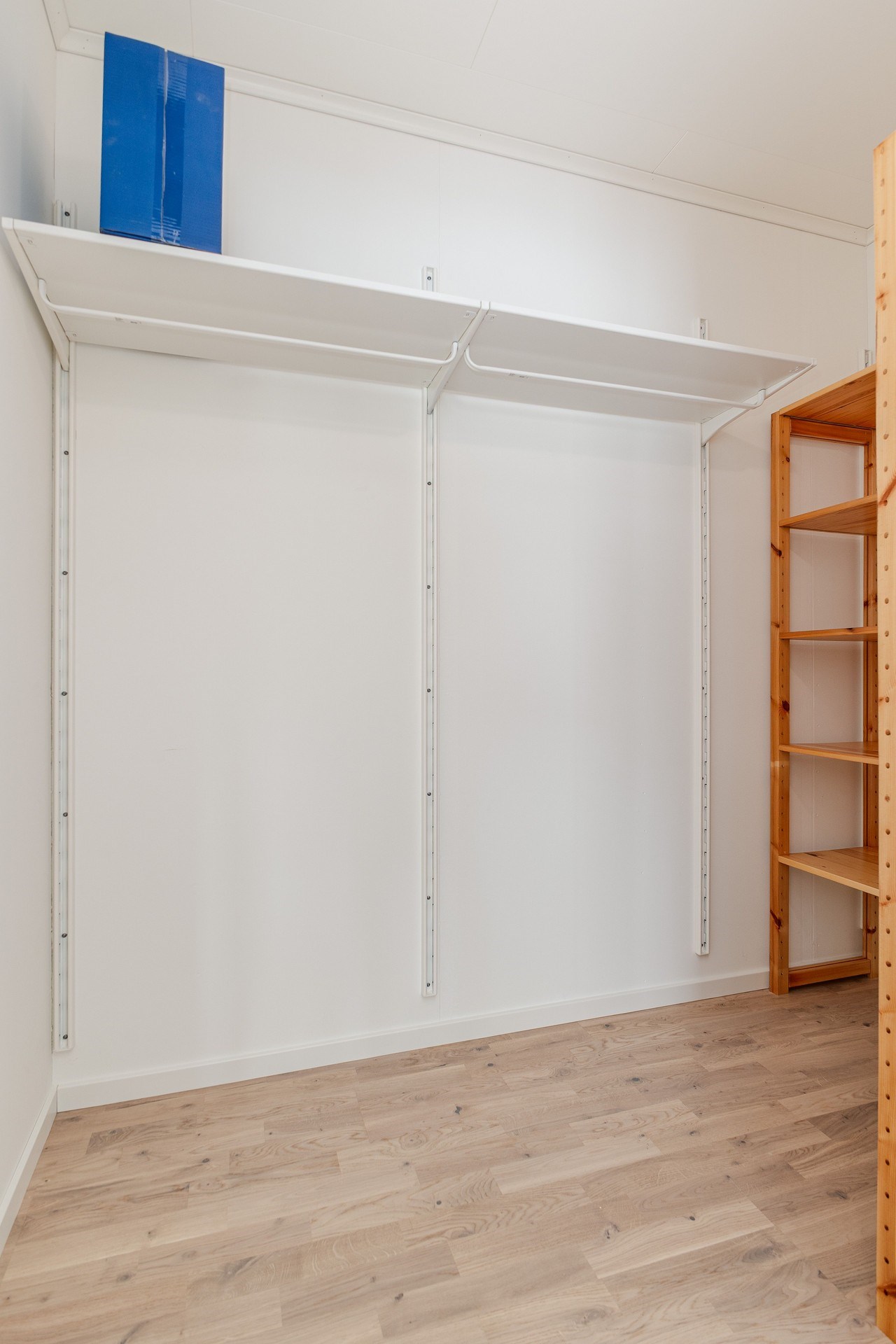 Mellan sovrum 2 och 3 finns en stor klädkammare med hyllsektioner. I anslutning till hallen finns en klädkammare.