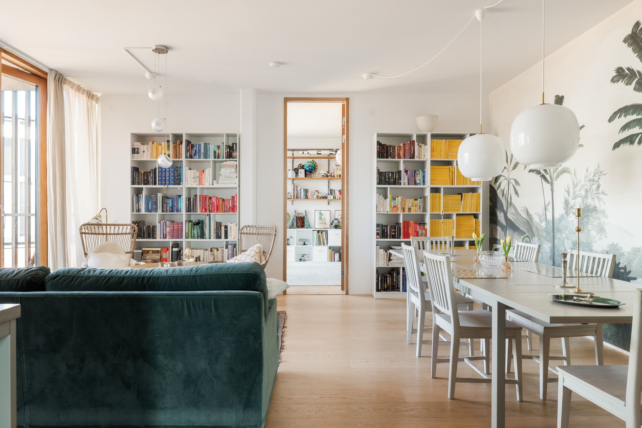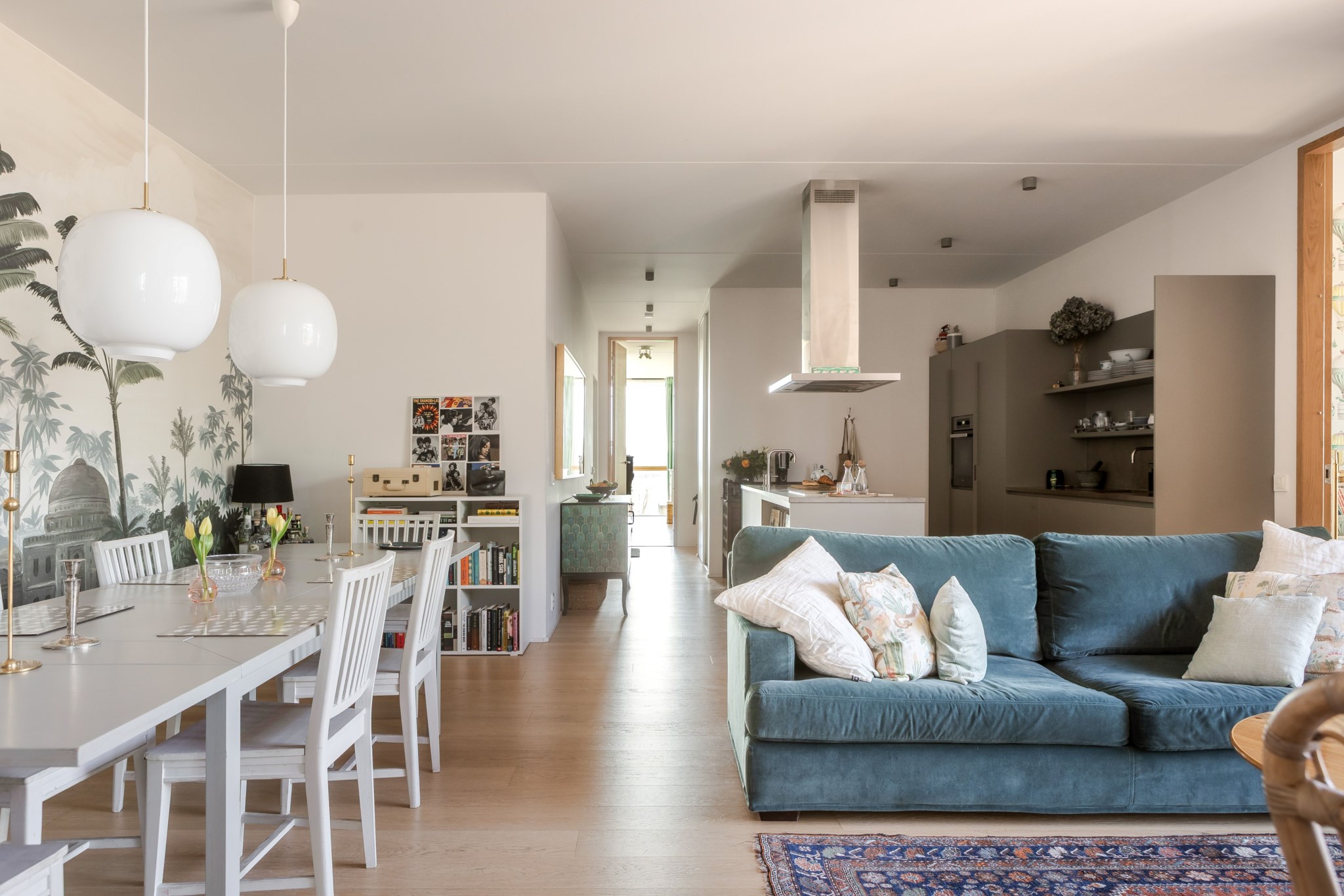 Den öppna planlösningen skapar en social och luftig känsla, medan noggrant utvalda materialval ger bostaden en tidlös och exklusiv karaktär. Här bor ni med en trevlig balkong med kvällssol, dubbla badrum och utsikt över Gärdesfältet från ett av bostadens sovrum.