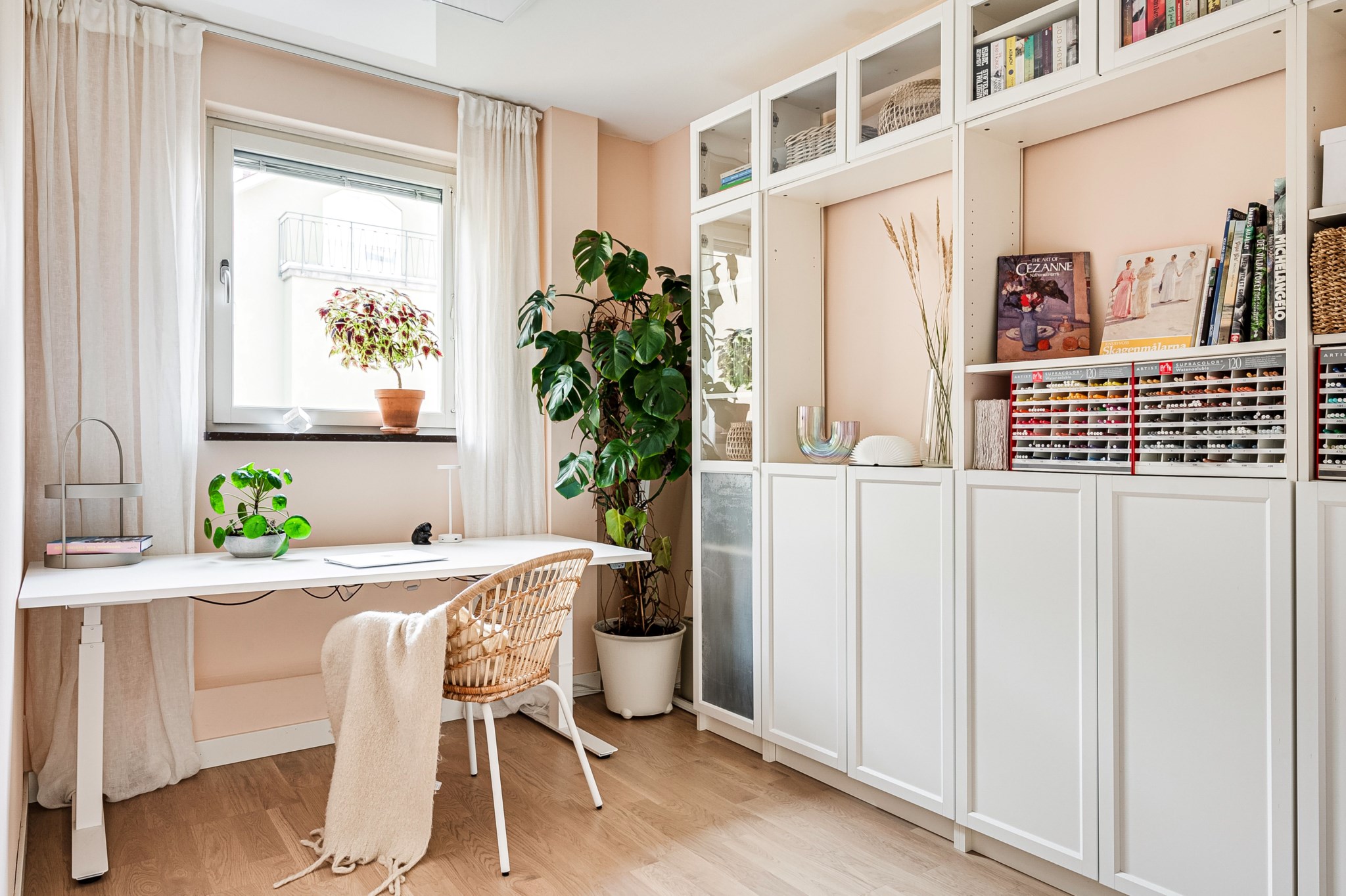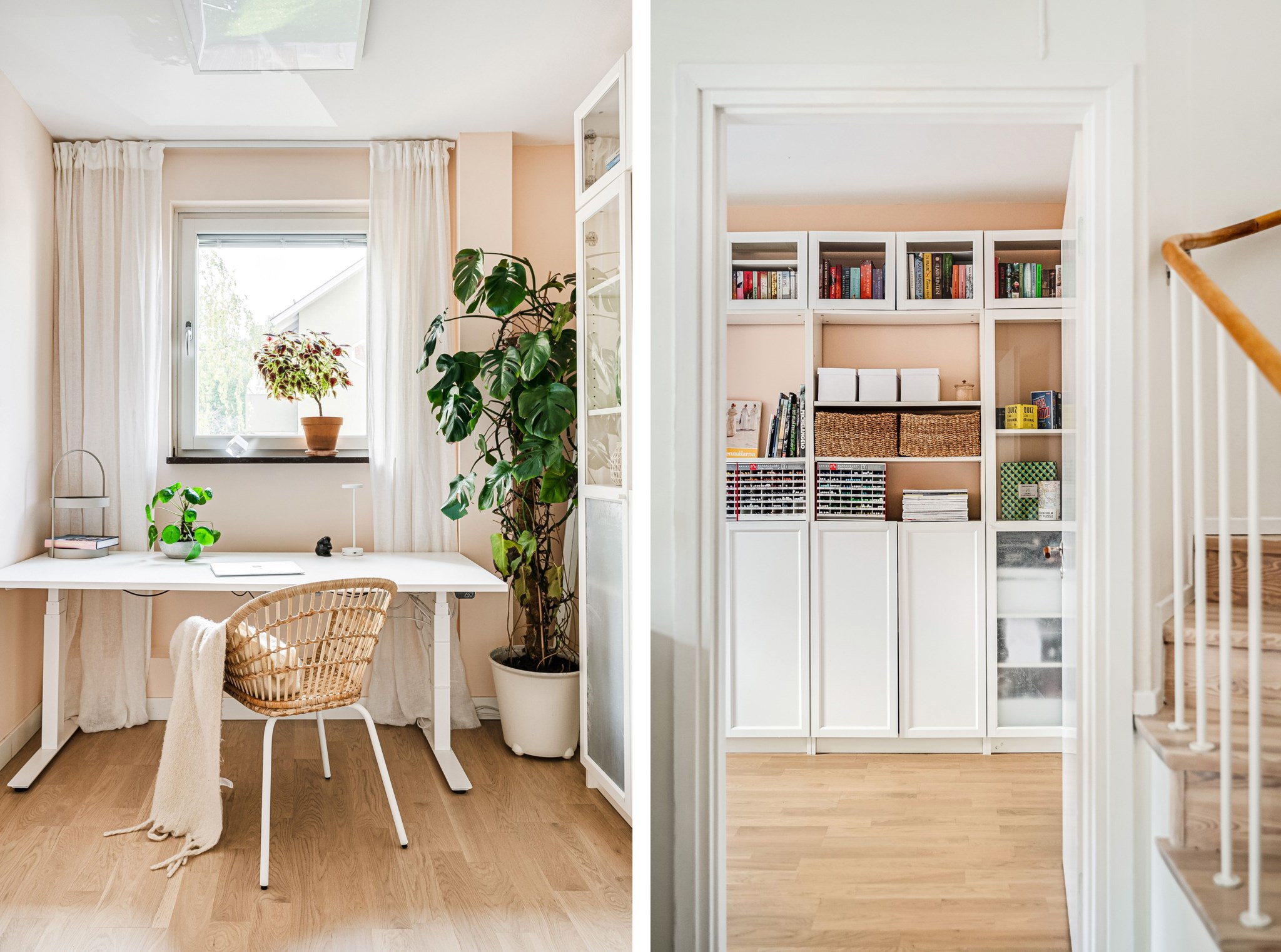 Trevligt rum i en härlig varm aprikos-kulör som idag disponeras som ett arbetsrum. Plats för skrivbord, bokhyllor och annat arbetsrelaterat. Rummet är även utmärkt som sovrum om så önskas med god plats för säng, nattduksbord och eventuella leksaker.