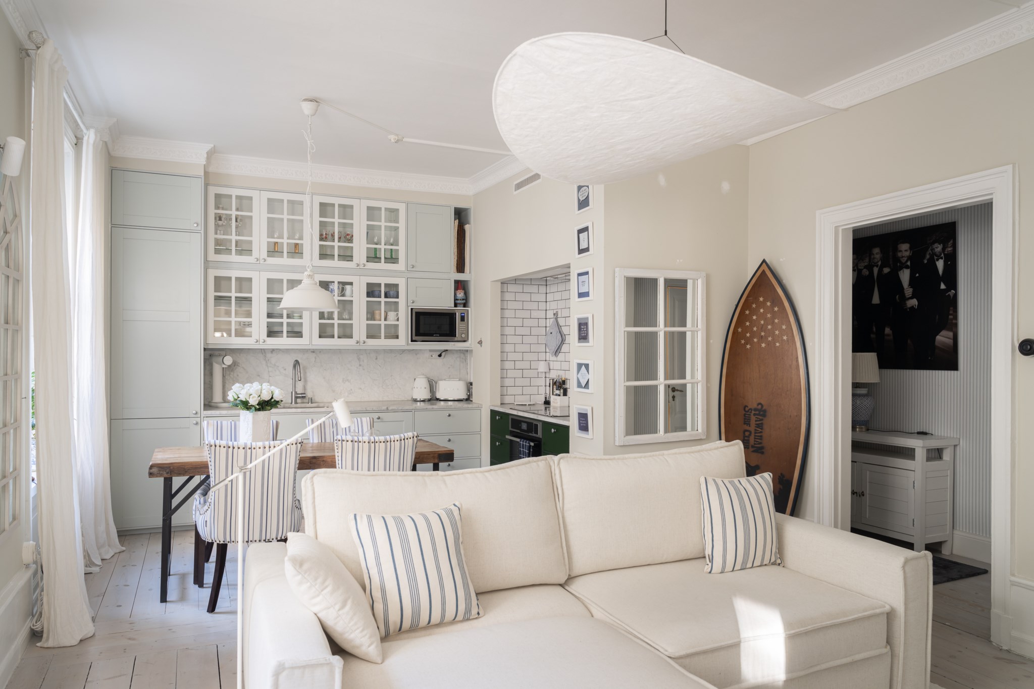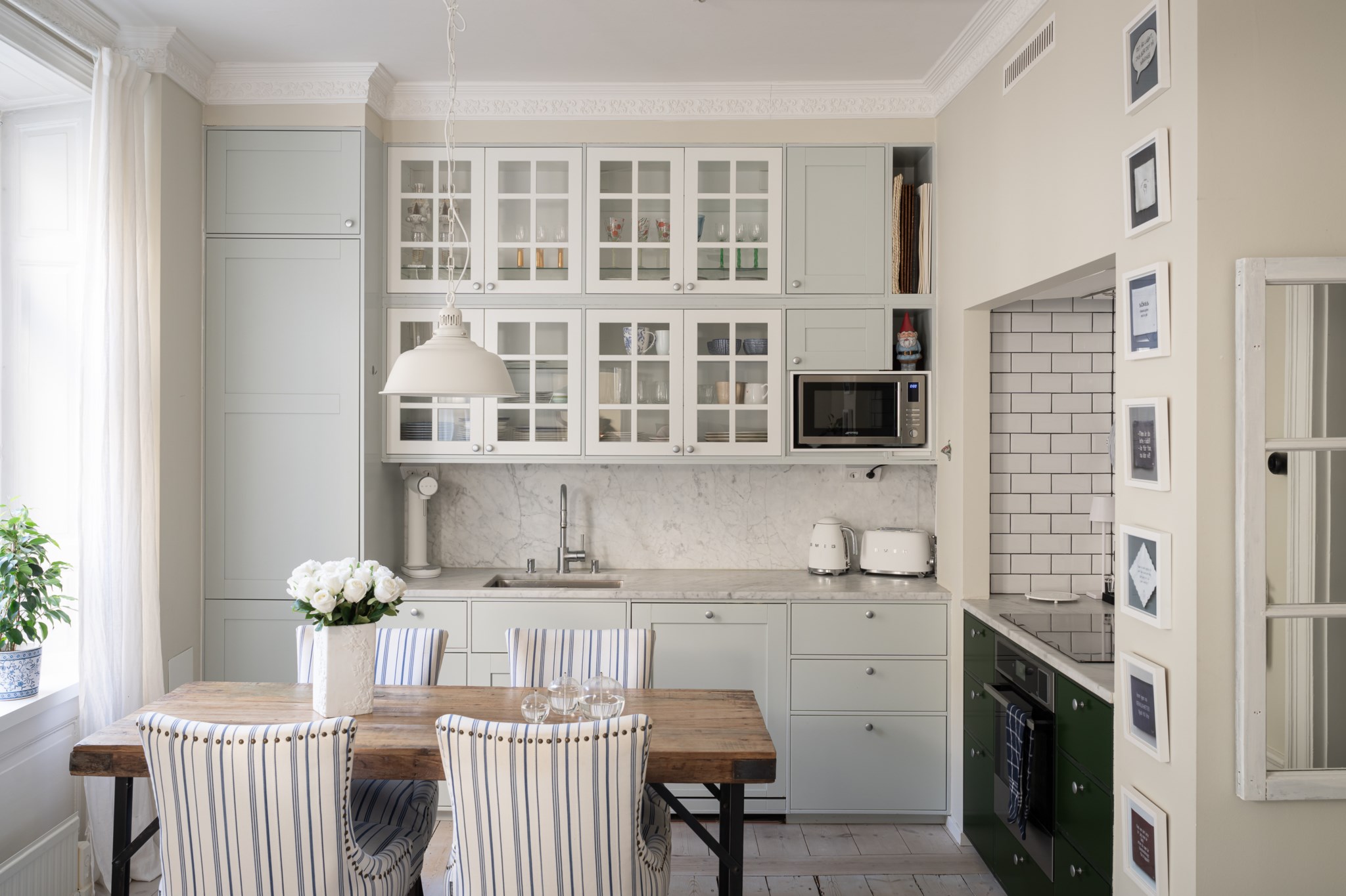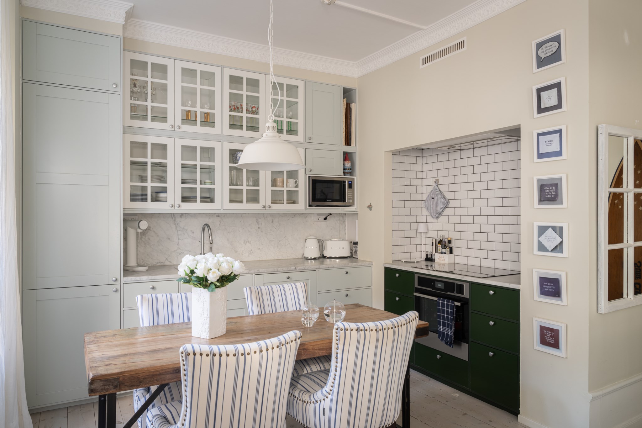Lägenheten erbjuder en social och trivsam planlösning där klassisk charm möter funktion. Vardagsrummet är luftigt med gott om plats för både soffgrupp och matplats, och de stora fönsterpartierna ger ett fint ljusinsläpp. Köket är stilrent och praktiskt utformat med goda arbetsytor och förvaring. Vacker öppen spis för mysfaktor. Sovrummet ligger rofyllt placerat och rymmer enkelt dubbelsäng samt förvaring. Här finns en vacker kakelugn. Helkaklat stilrent badrum.