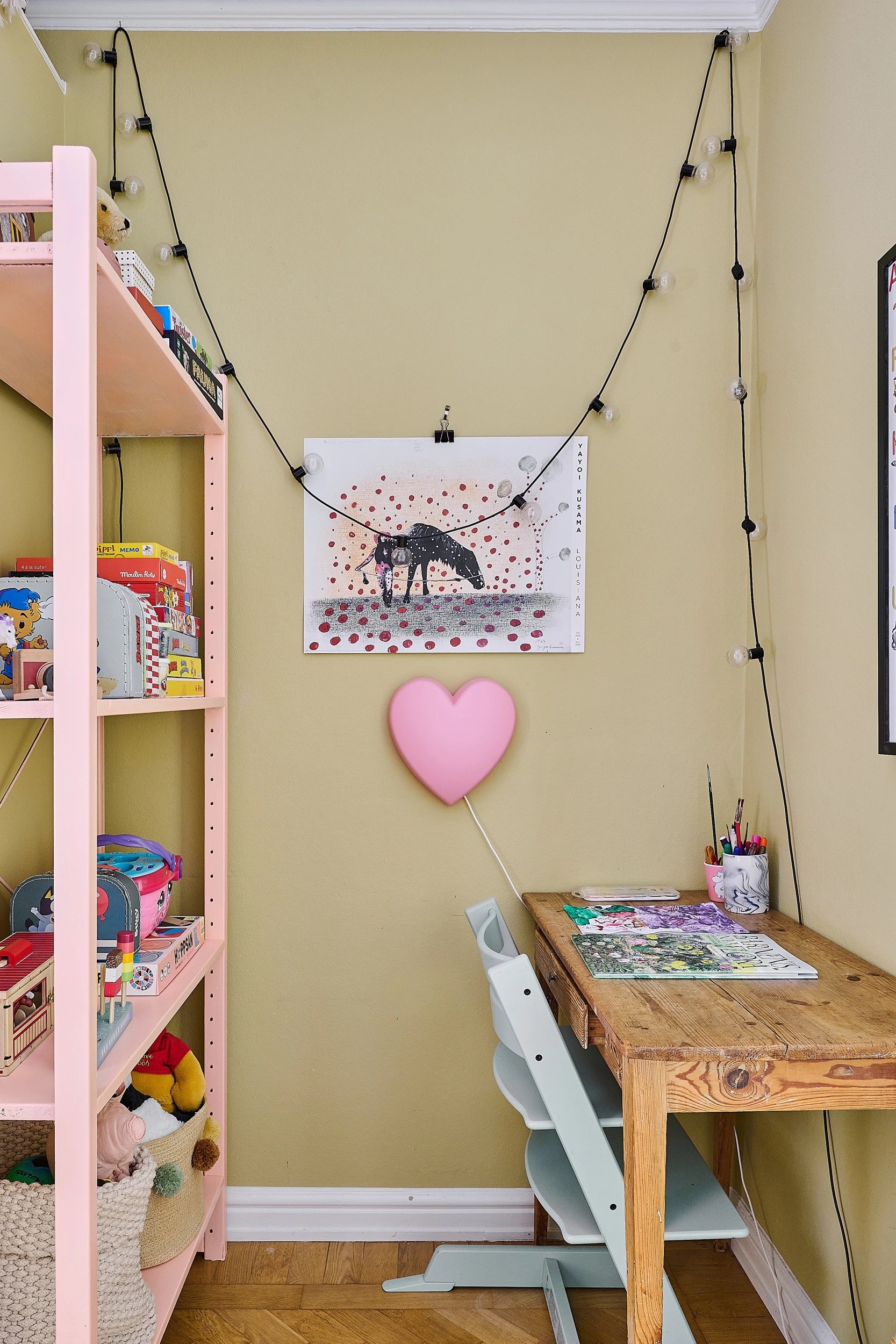 skapar en varm och inbjudande atmosfär. Här finns plats för en arbetsplats,
