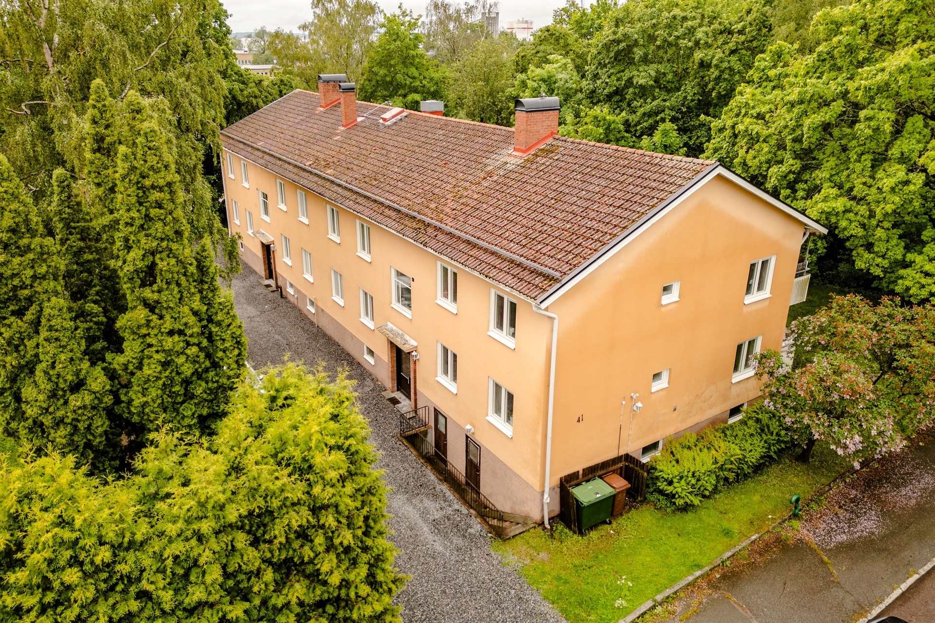 Fastigheten präglas av tidstypisk arkitektur och gedigna materialval. BRF Fregatten 2 är en familjär förening med sund ekonomi och långsiktigt tänk. Läget på Stohagsvägen är lugnt med kort promenadavstånd till city, grönområden, mataffärer och utmärkta kommunikationer.