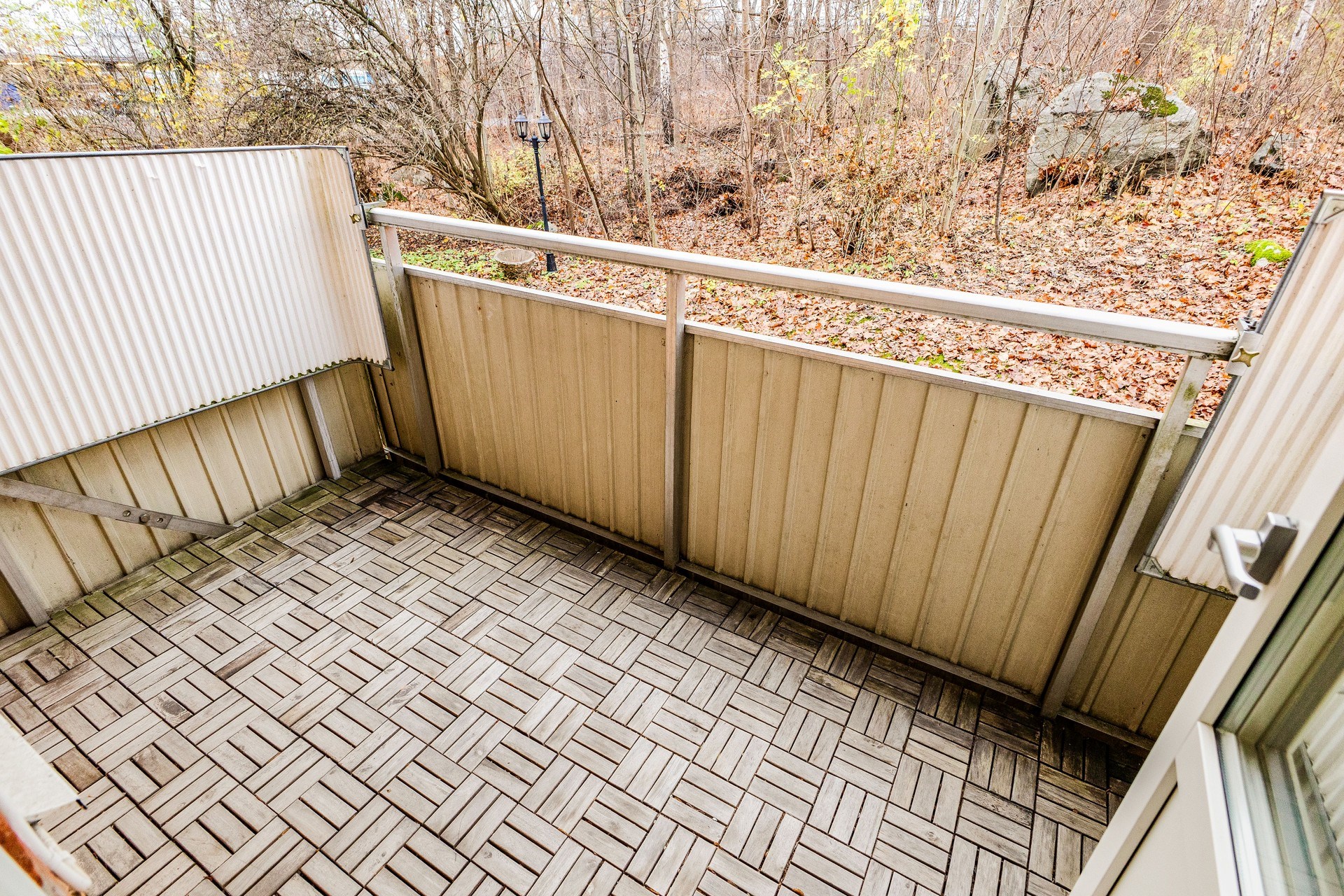 Till lägenheten hör en balkong. Den rymlig balkongen har gott om utrymme för balkongmöbler och bjuder på en lummig miljö i lugnt läge.