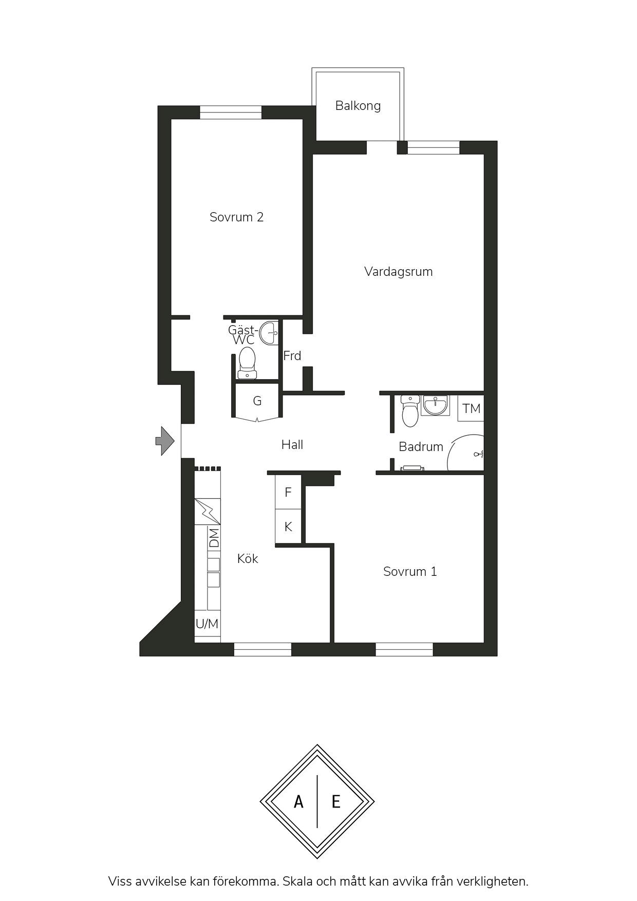 Rymligt kök med goda arbetsytor och förvaring. Här finns gott om plats för både matlagning och umgänge. Badrummet och gäst-wc är renoverade i tidlös design med fina materialval. Lättmöblerat vardagsrum med ljust från stort fönsterparti och utgång till balkong. Balkongen med utsikt mot lugn och trevlig innergård ger plats till bord och stolar för att bekvämt njuta av ljumna kvällar. De två sovrummen är lugnt placerade, det större rummet passar utmärkt som masterbedroom medan det mindre fungerar perfekt som barnrum, gästrum eller hemmakontor.