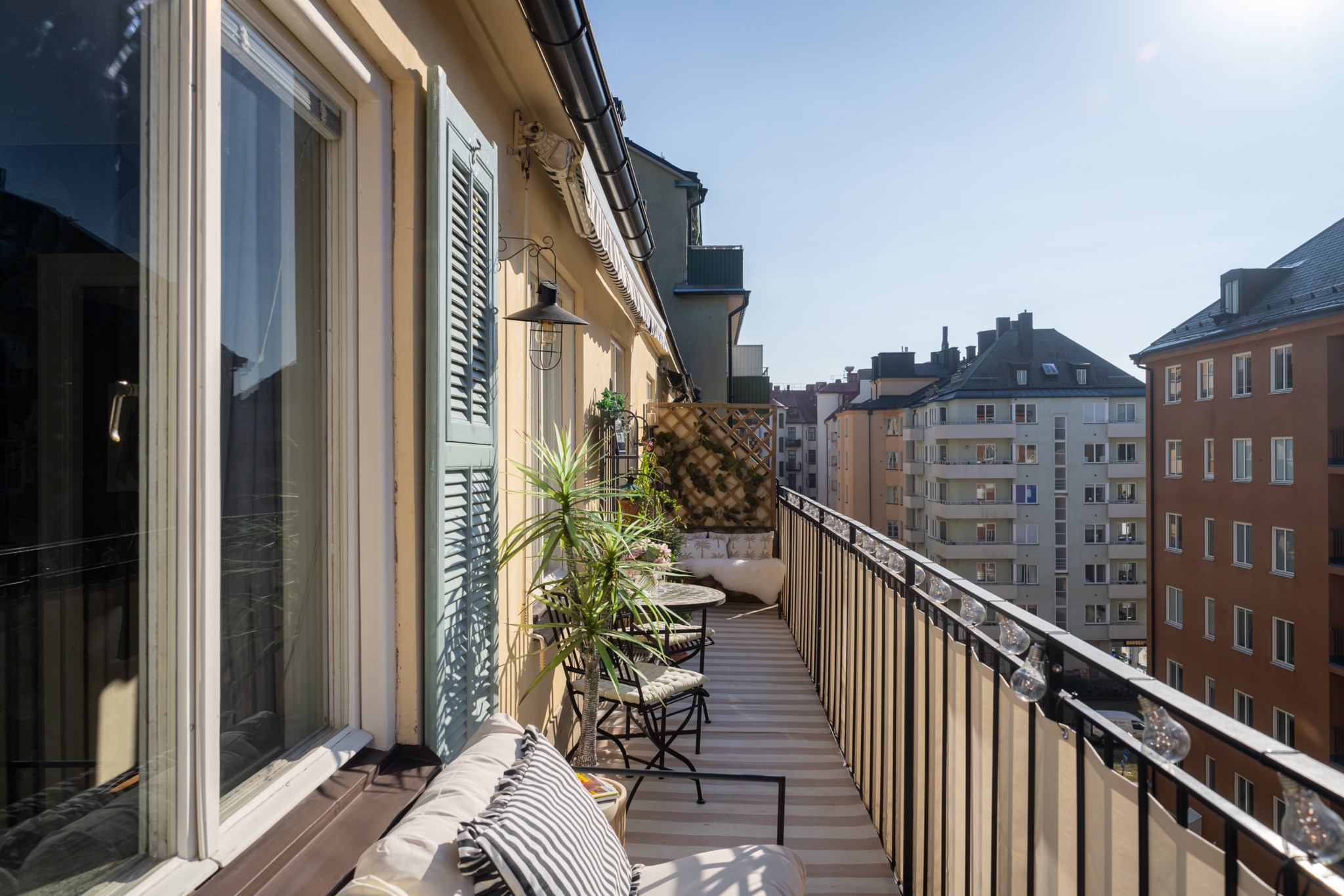 30-talspärla med hörnläge högt upp i huset med 12 kvadratmeter kungsbalkong i soligt läge!