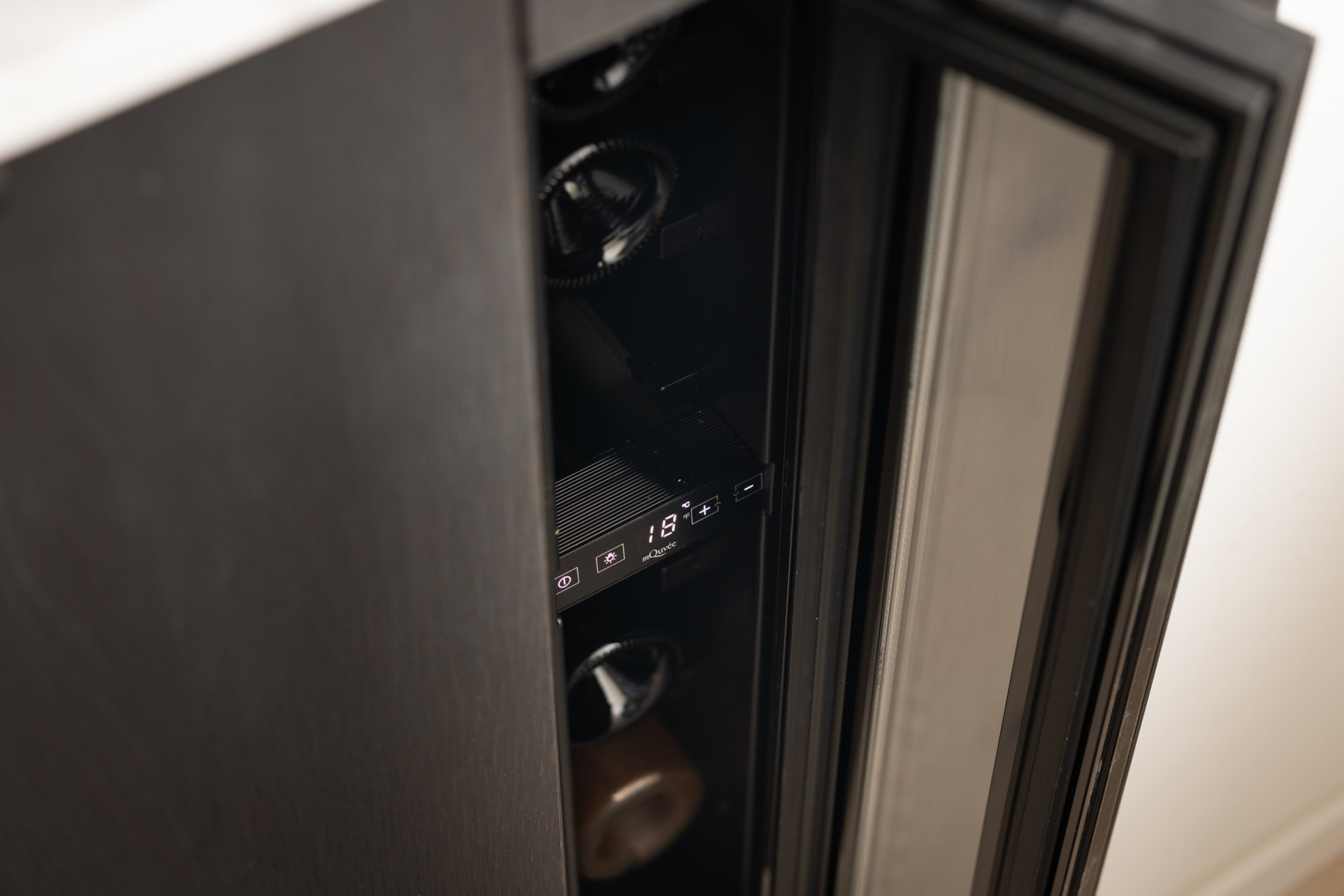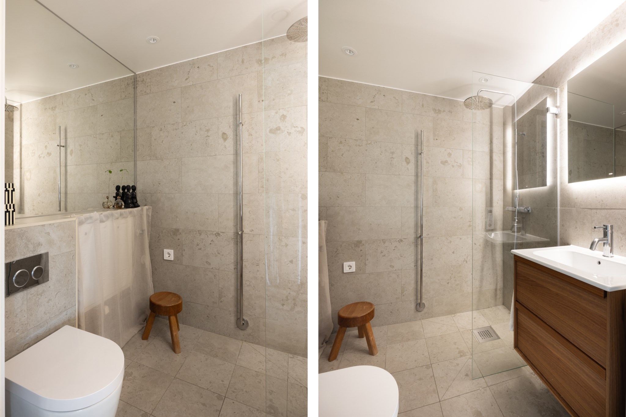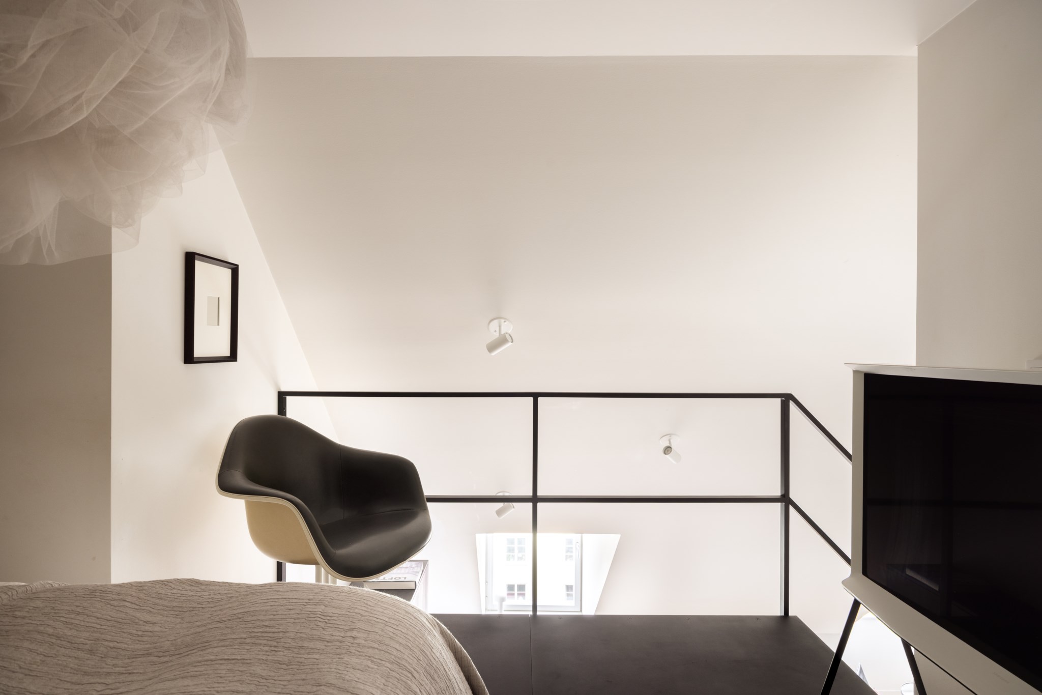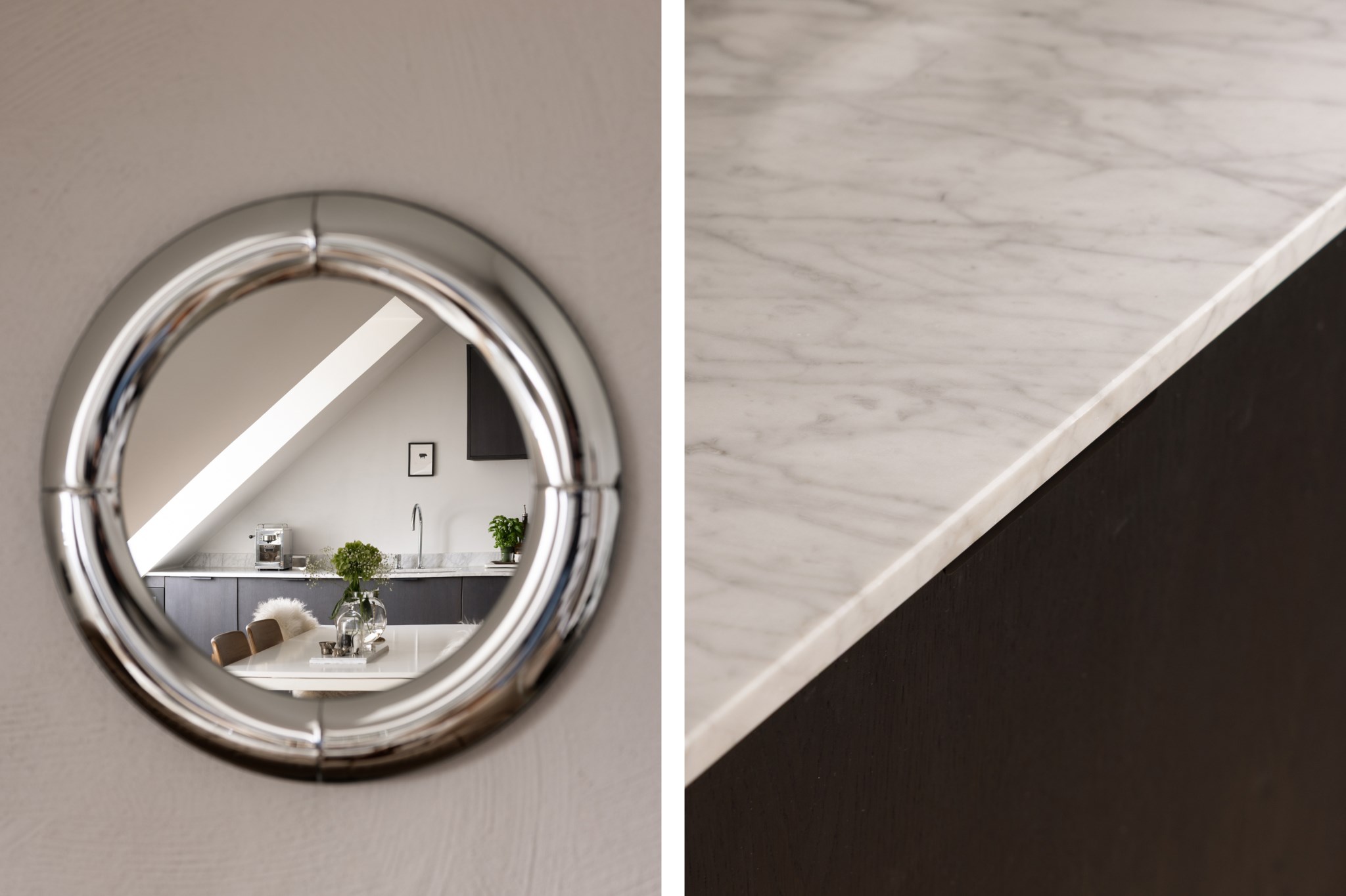 Köket är elegant inrett med fronter i svart ask och utrustat med kvalitativa vitvaror – en kombinerad ugn och mikro från SMEG, diskmaskin från Bosch samt en effektiv fläkt kopplad till fjärråskupan. Här finns gott om både arbetsyta och förvaring, vilket gör köket till en självklar samlingspunkt. Badrummet är helkaklat och förberett för tvättmaskin. En trappa upp finner du ett mysigt sovloft. Här kombineras äldre charm med moderna materialval och smart planering – ett hem som erbjuder både karaktär, funktion och en unik atmosfär mitt i stadens puls.