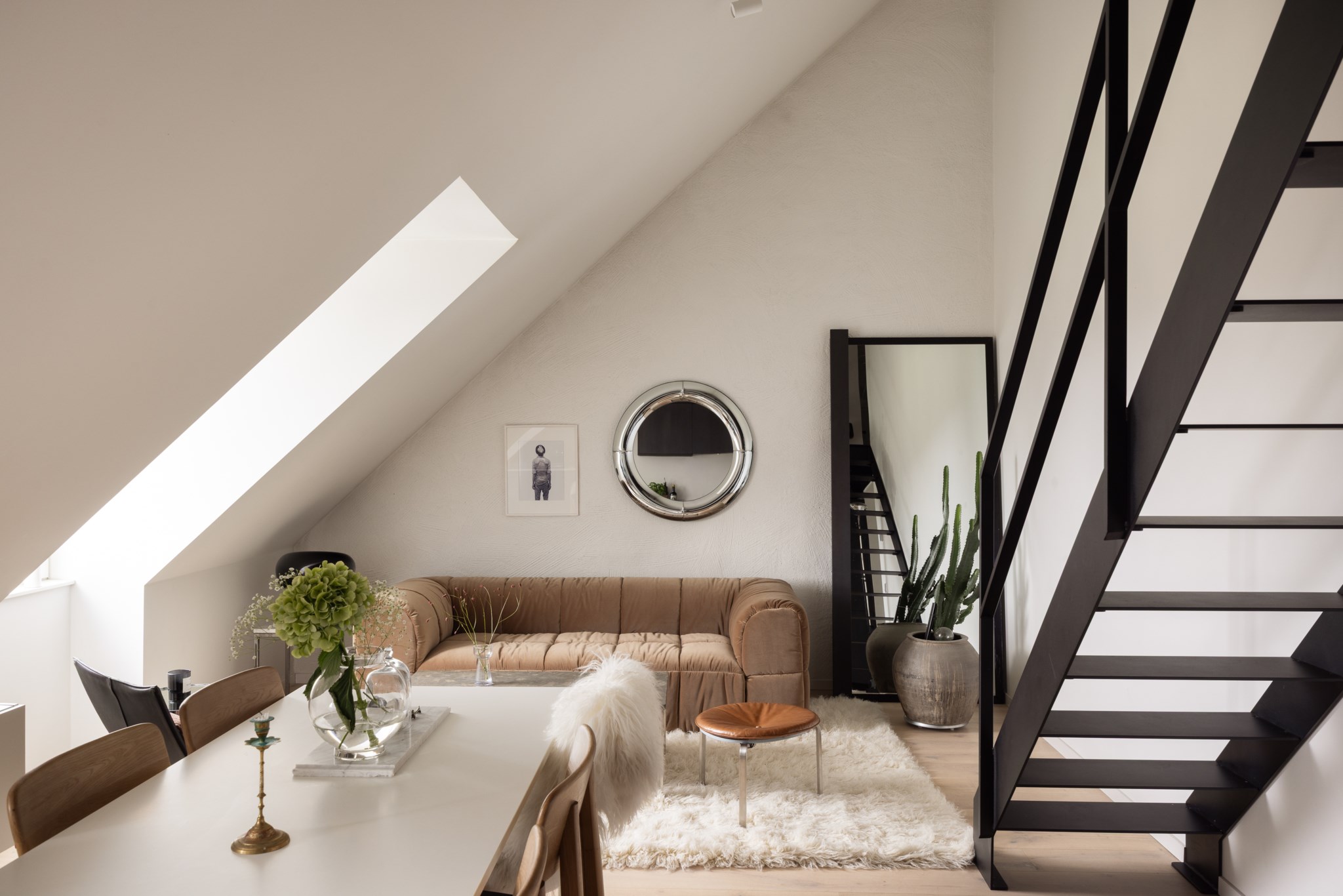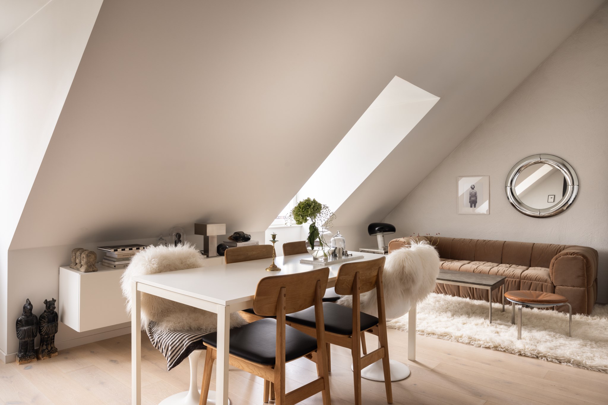 Välkommen till denna stilrena vindslägenhet om 39 + 5 kvm, nyrenoverad 2023, i ett charmigt hus från 1936.