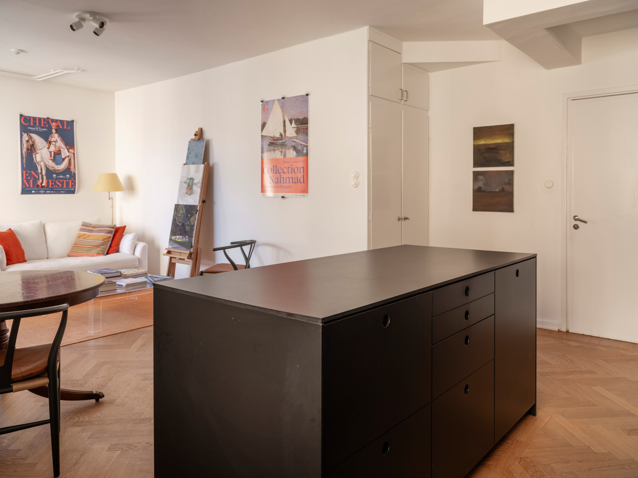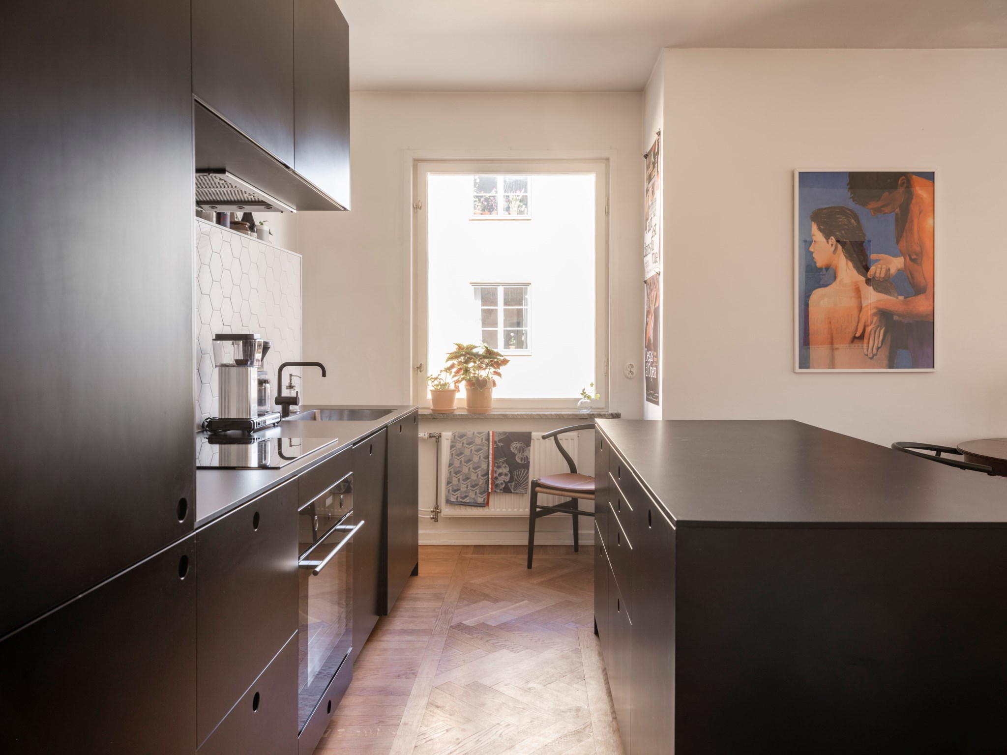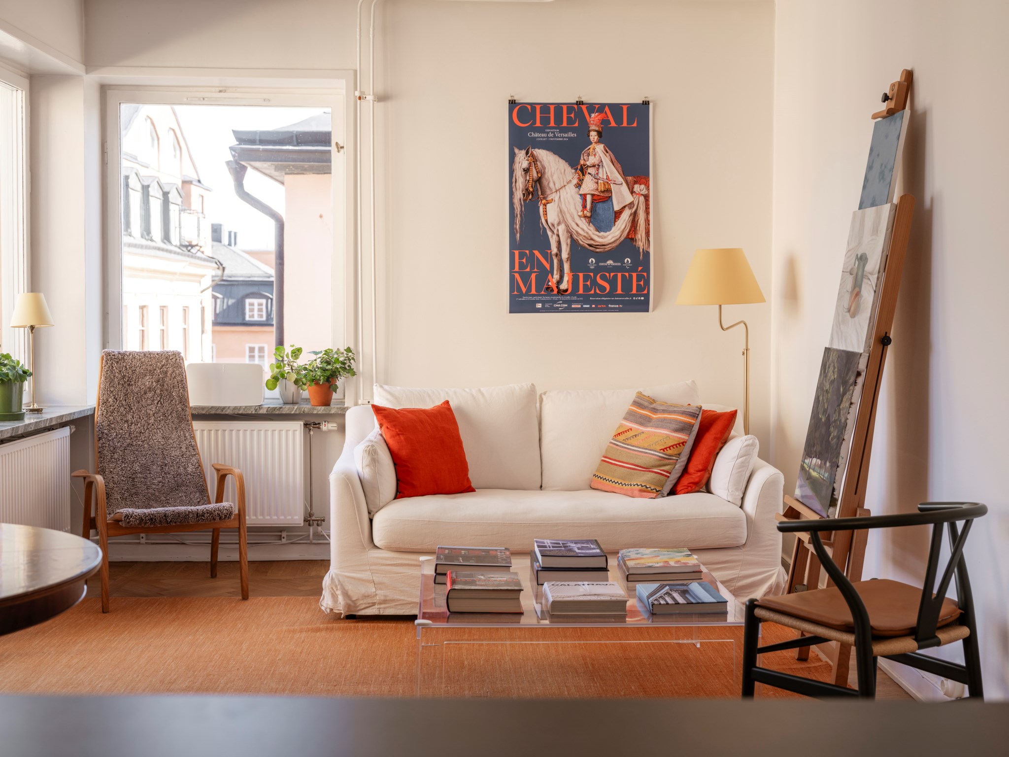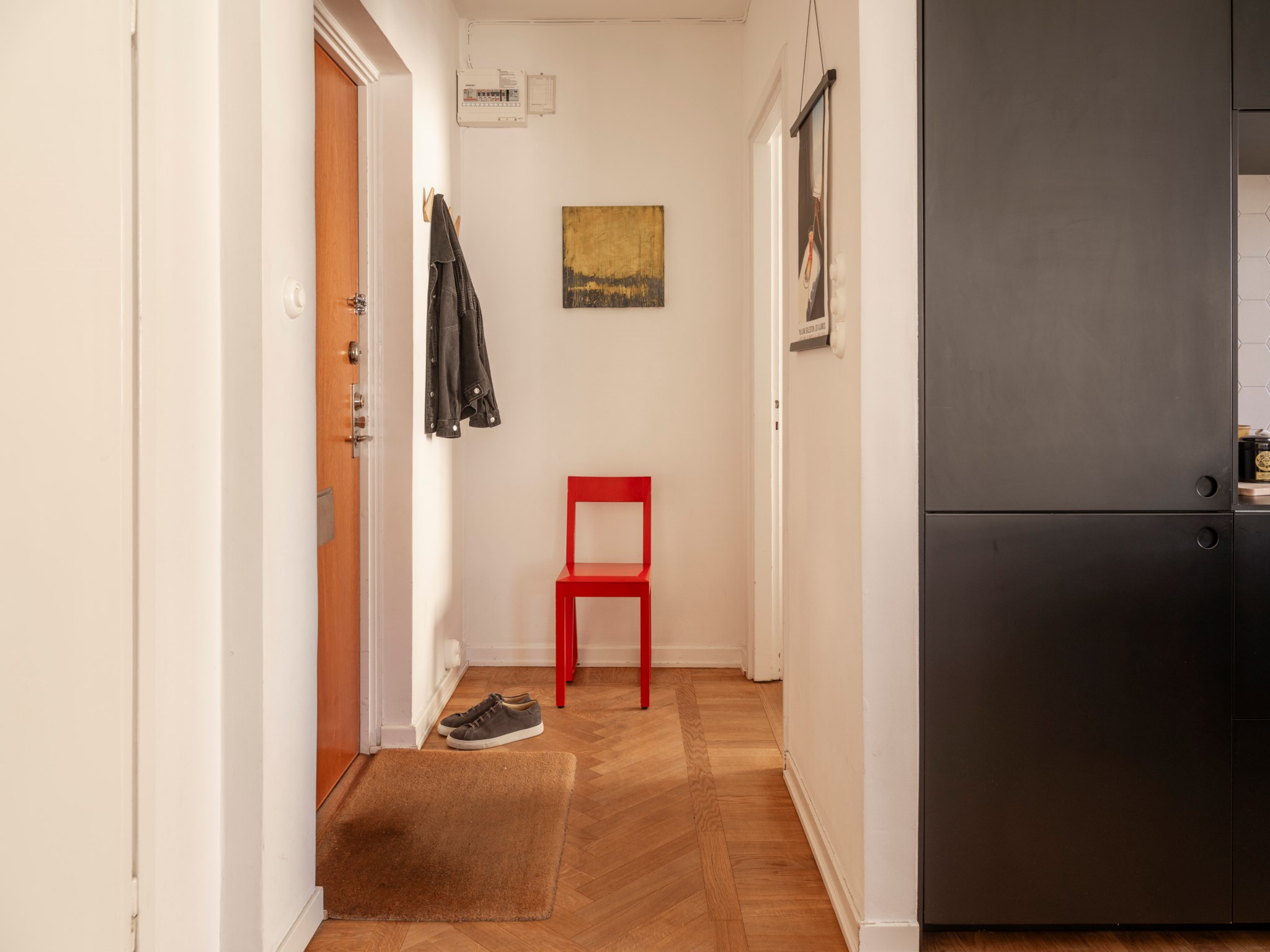 Välkommen till denna smakfulla tvåa i funkisstil med vacker vy från balkongen ut mot Riddarfjärden. Med hörnläge på Mariaberget och generösa fönsterpartier flödar bostaden i ljus. Lägenheten är genomgående renoverad och den tidstypiska funkisprägeln är väl bevarad. Kök och vardagsrum möts i en öppen planlösning i det luftiga hörnrummet med sina fönster och balkong i anslutning.