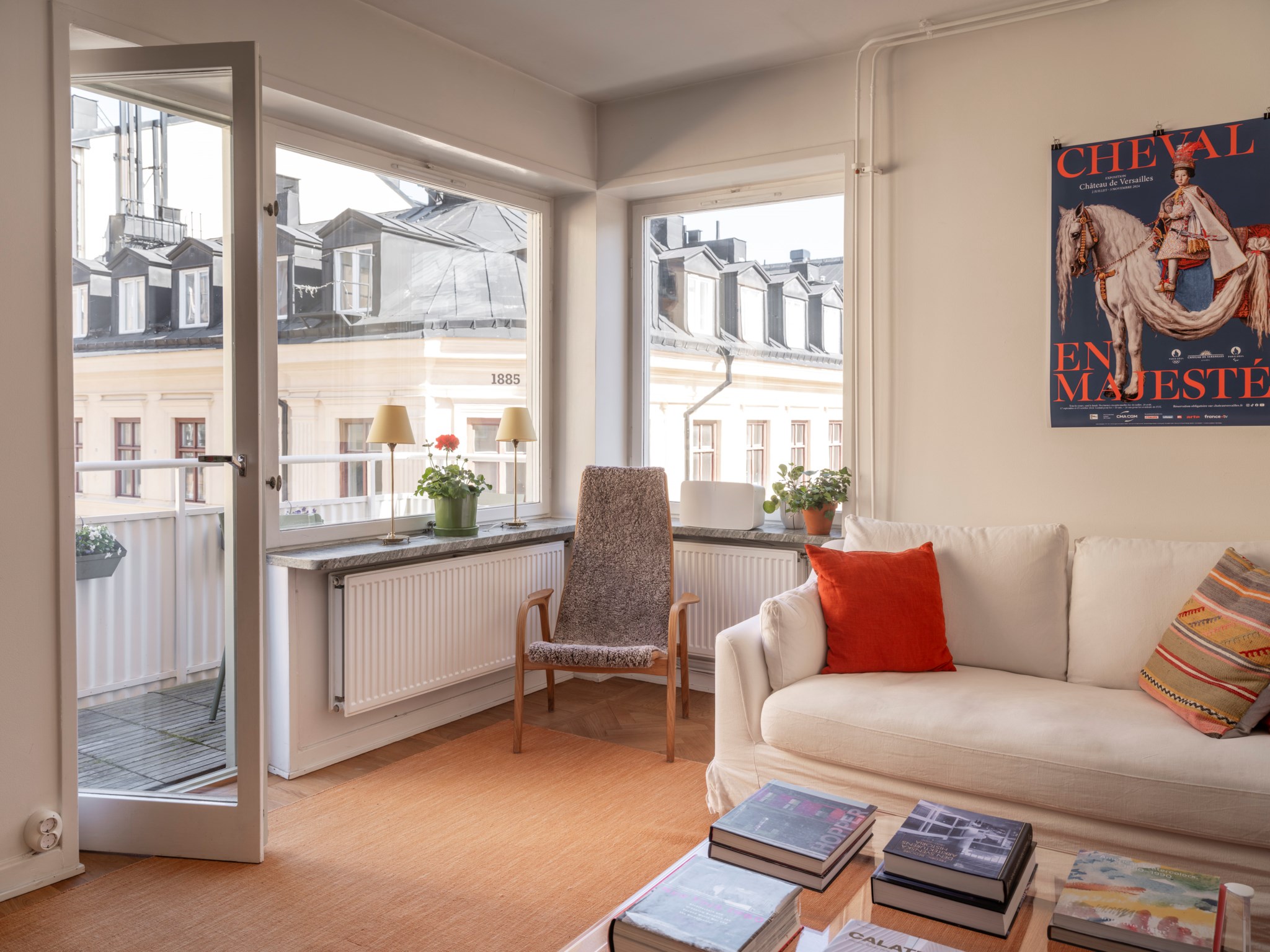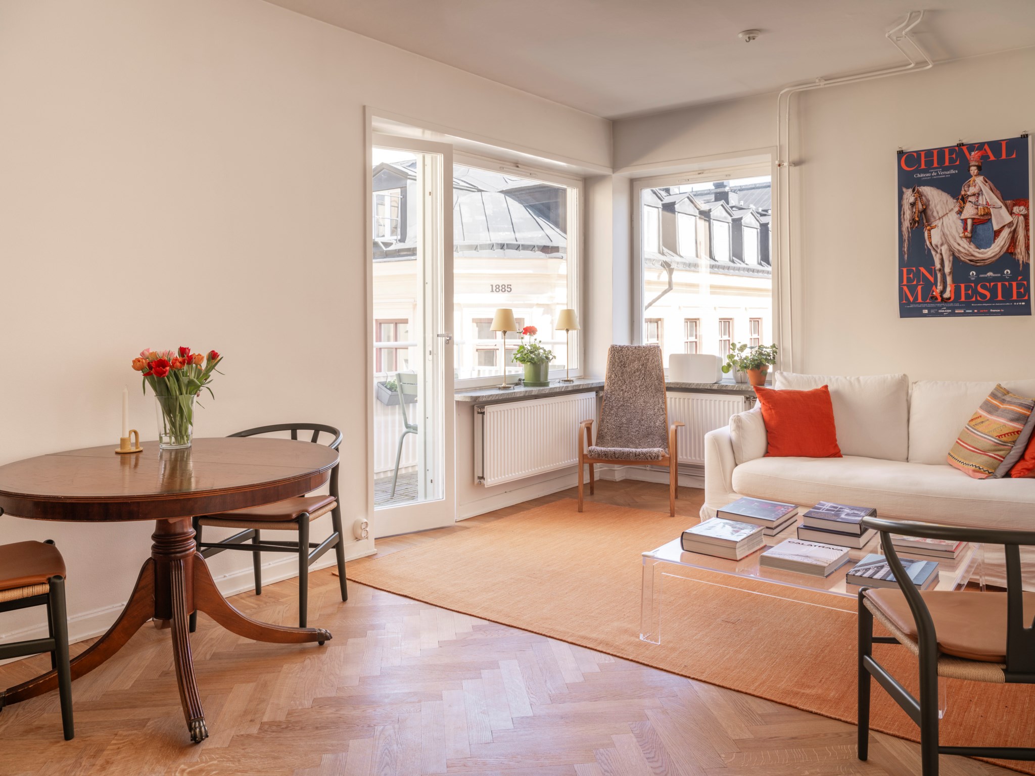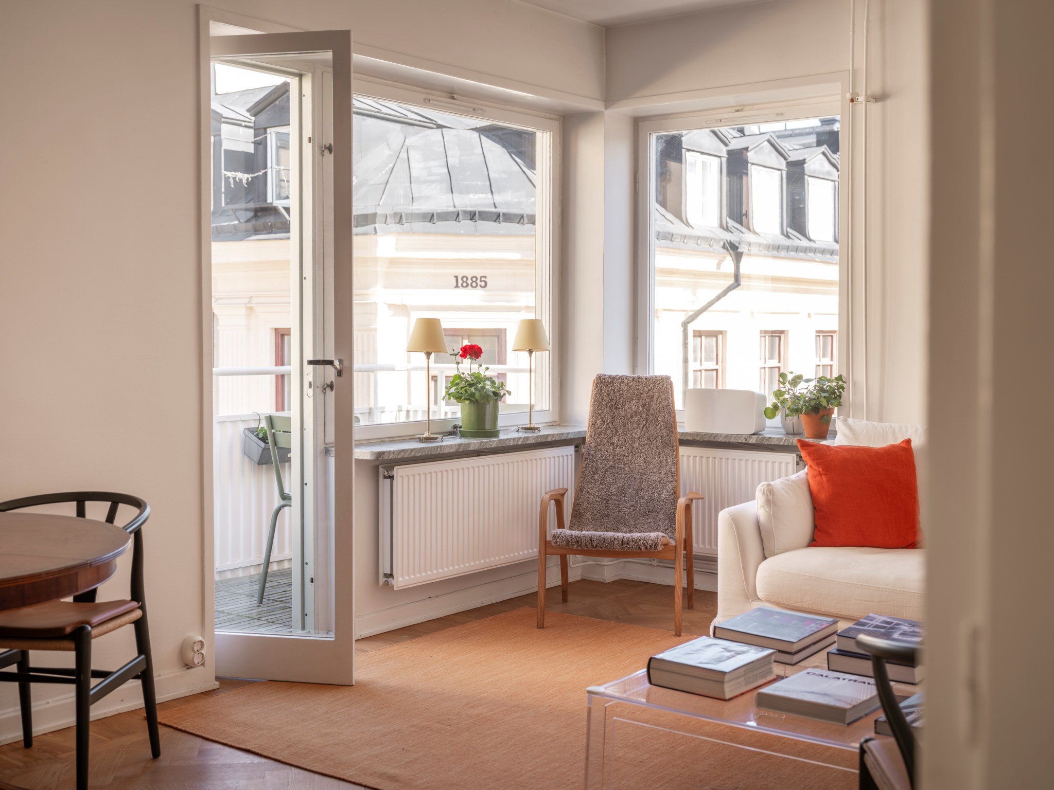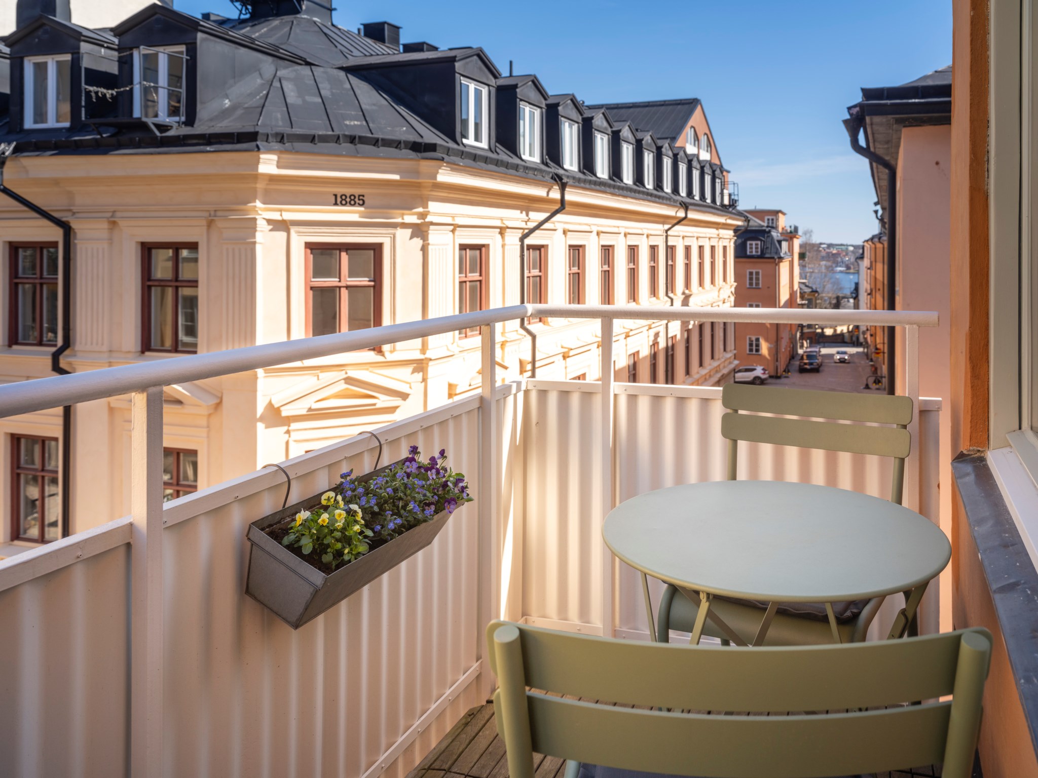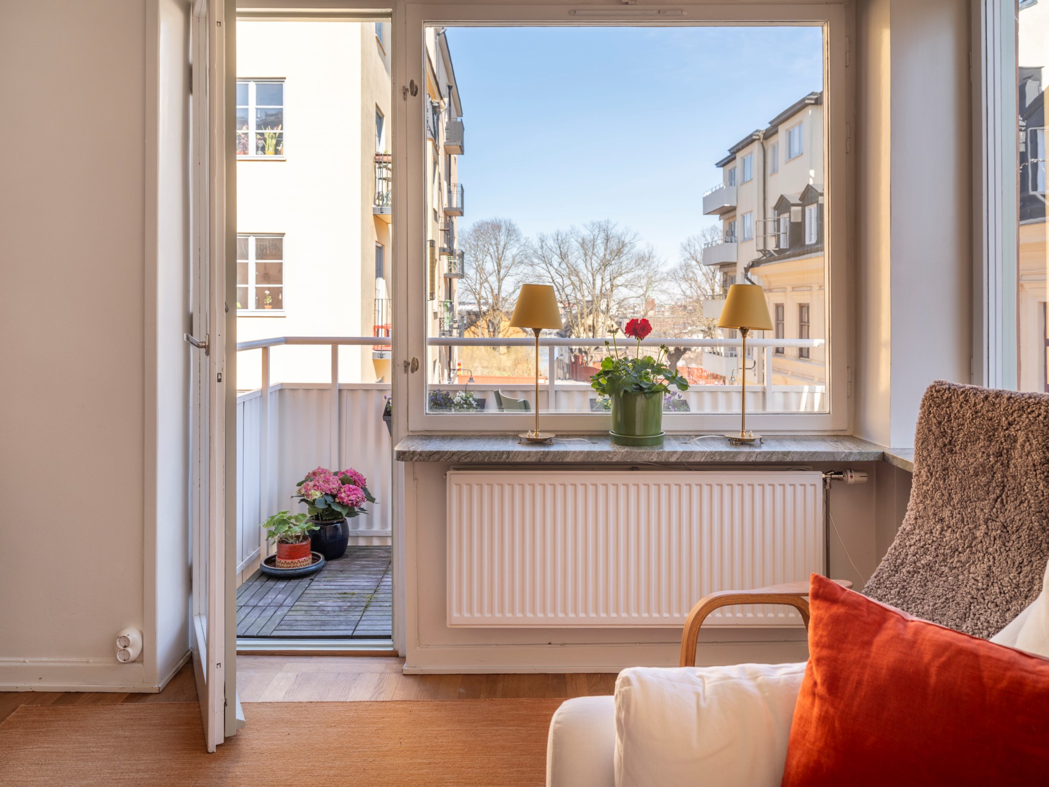Funkistvåa med mycket charm och ljus i hörnläge & balkong på Mariaberget