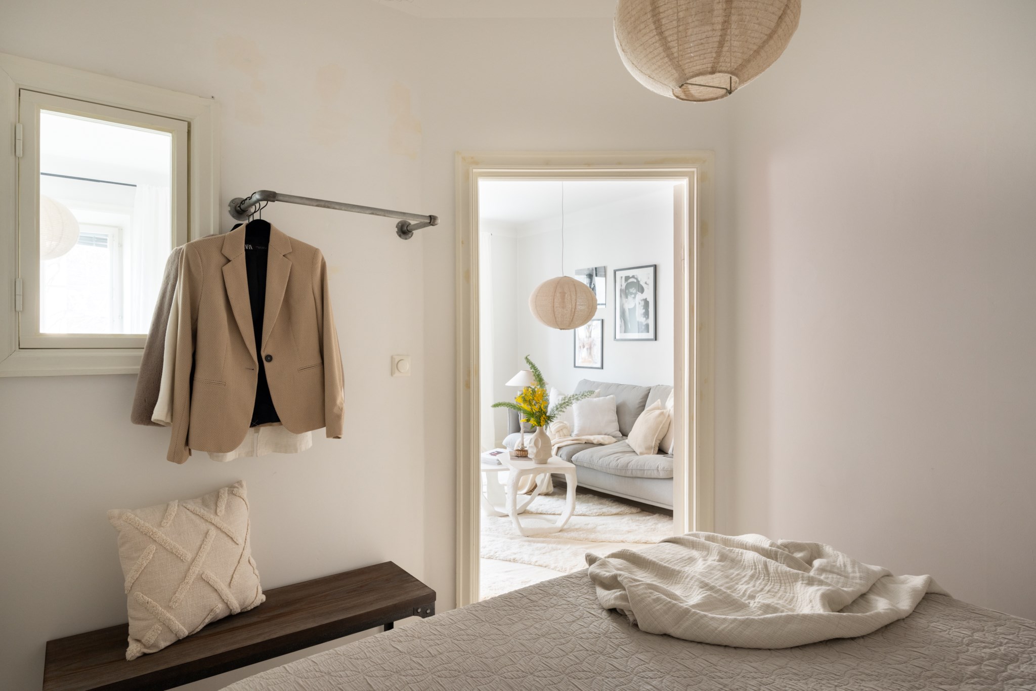 Bostaden erbjuder en genomtänkt planlösning där varje kvadratmeter tas tillvara. Ljuset flödar in genom generösa fönsterpartier och skapar en luftig och inbjudande känsla. Vardagsrummet är lättmöblerat med gott om plats för både soffgrupp och matplats, en naturlig samlingspunkt för såväl lugna hemmakvällar som middagar med vänner. Härifrån nås även den härliga balkongen, en privat oas där du kan njuta av solen, morgonkaffet eller en stilla stund ovanför stadens puls.