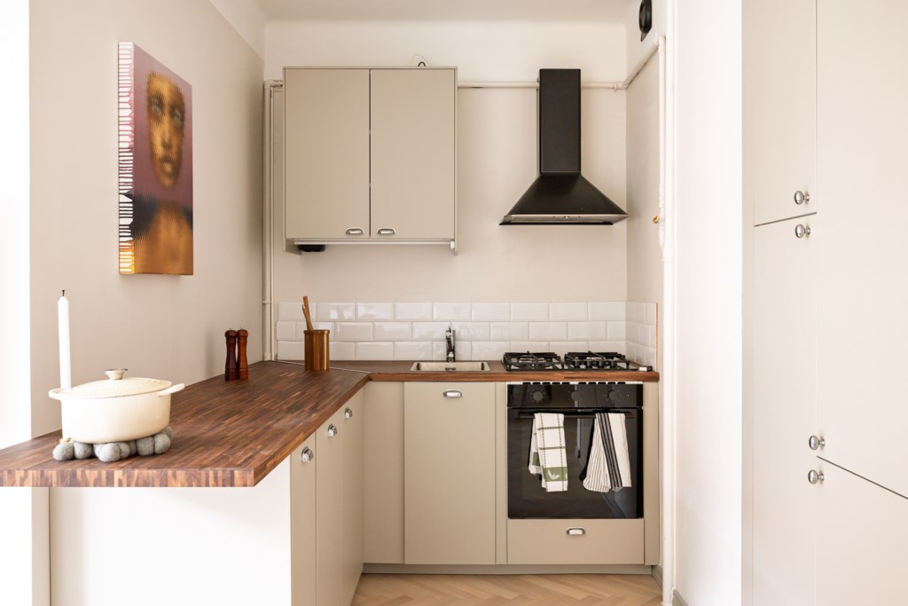 Stilrent och välplanerat kök med goda arbetsytor, överskåp och generös förvaring. Köket är nyrenoverat 2025 och utrustat med nya vitvaror i form av gasspis, ugn, diskmaskin och köksfläkt. Klassiskt vitt kakel ovan arbetsytorna ger ett tidlöst och harmoniskt uttryck. Det öppna sambandet mot vardagsrummet skapar en social och trivsam helhet.