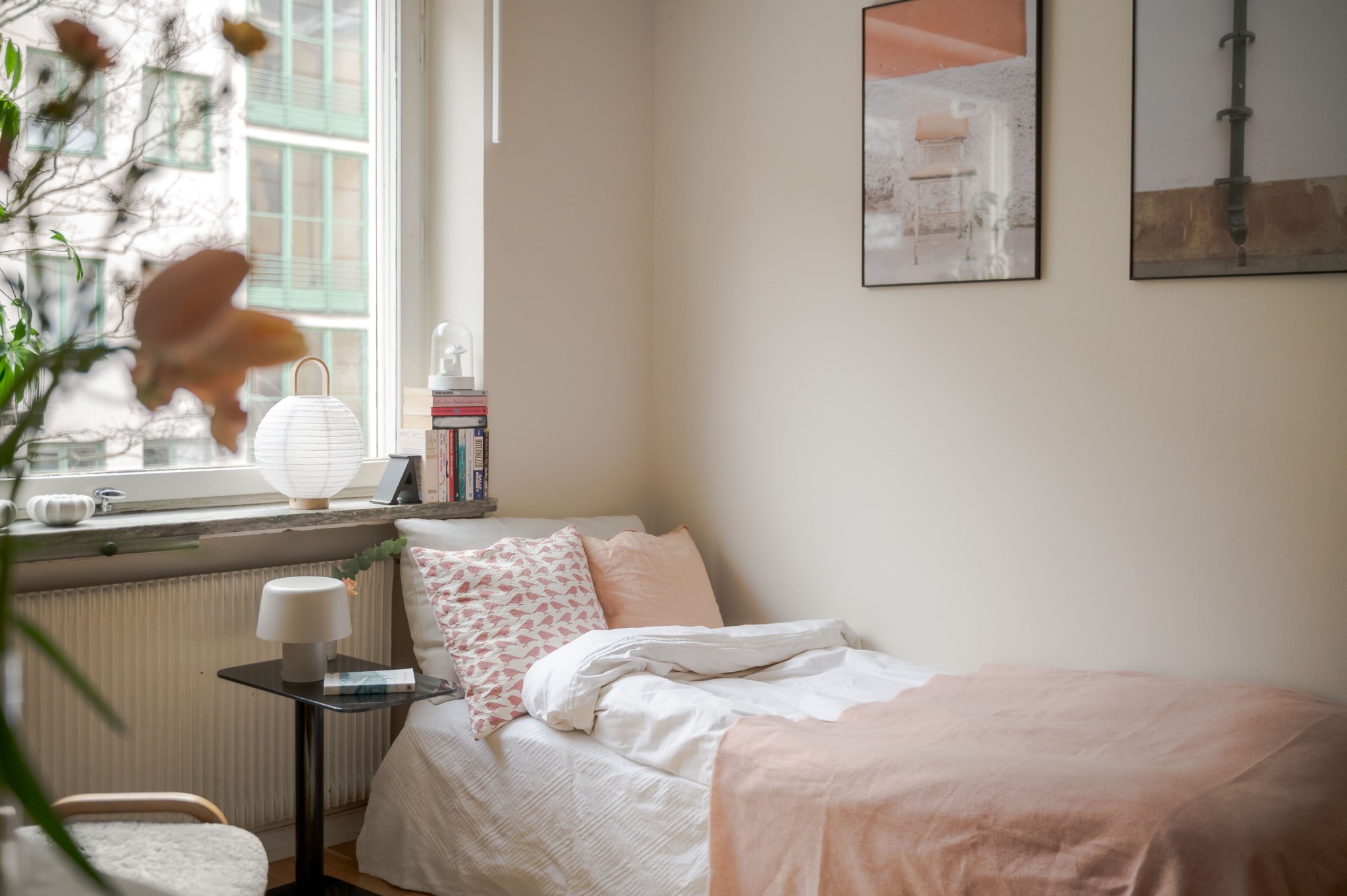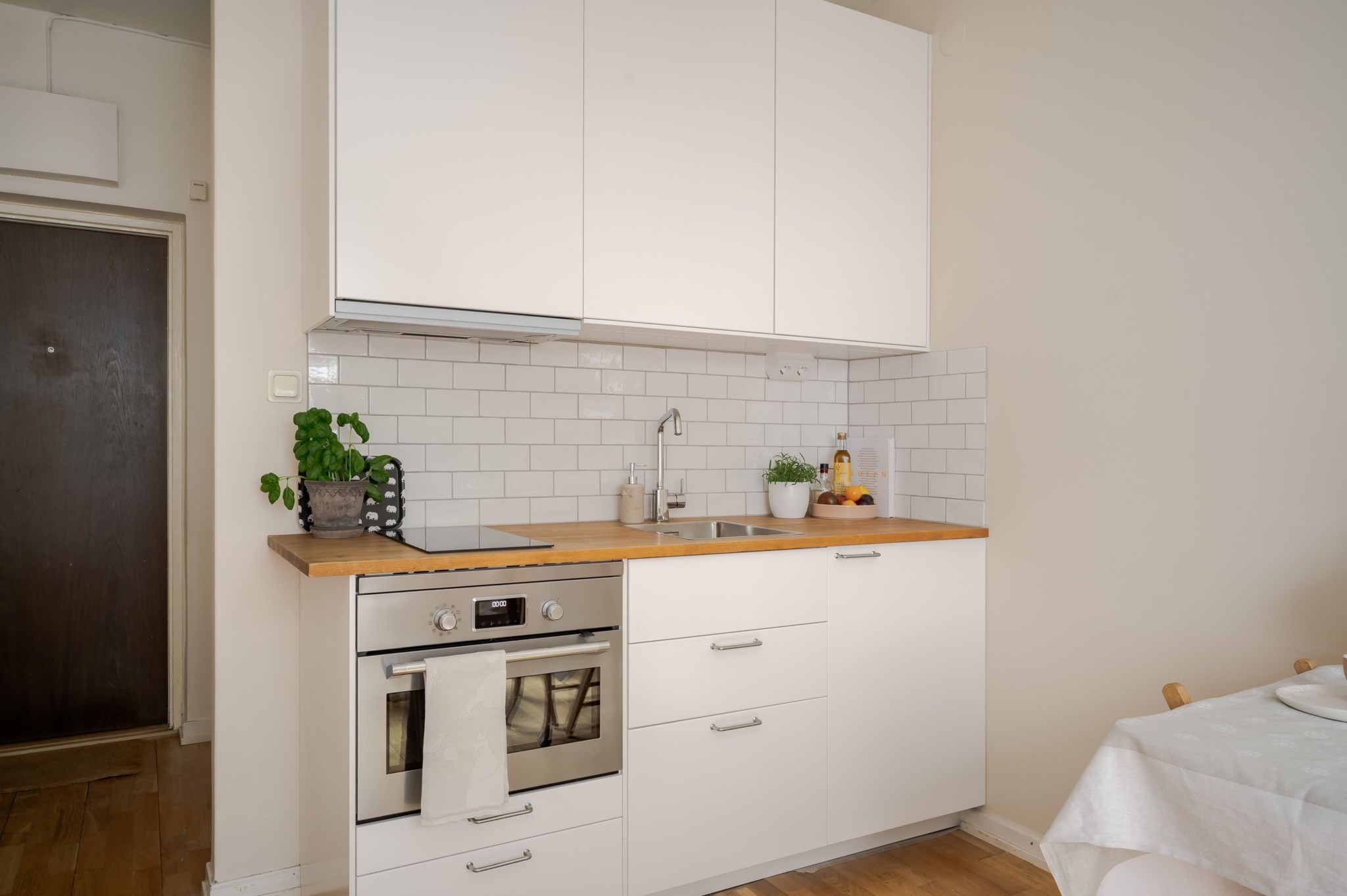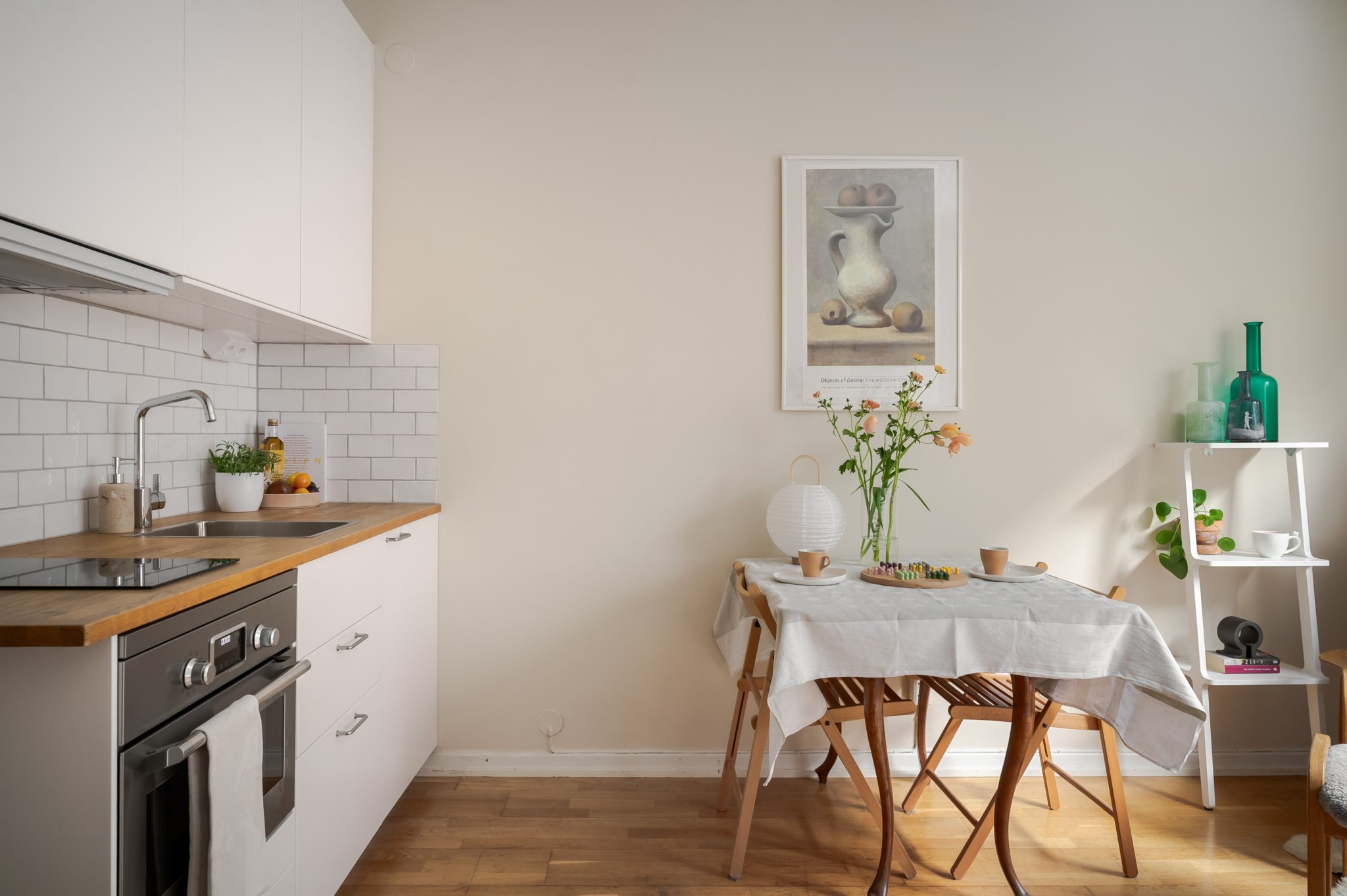 Här bor ni med stilrent & modernt kök, helkaklat badrum samt ett lättmöblerat allrum med ett stort fönster med soligt läge som vetter mot innergården.