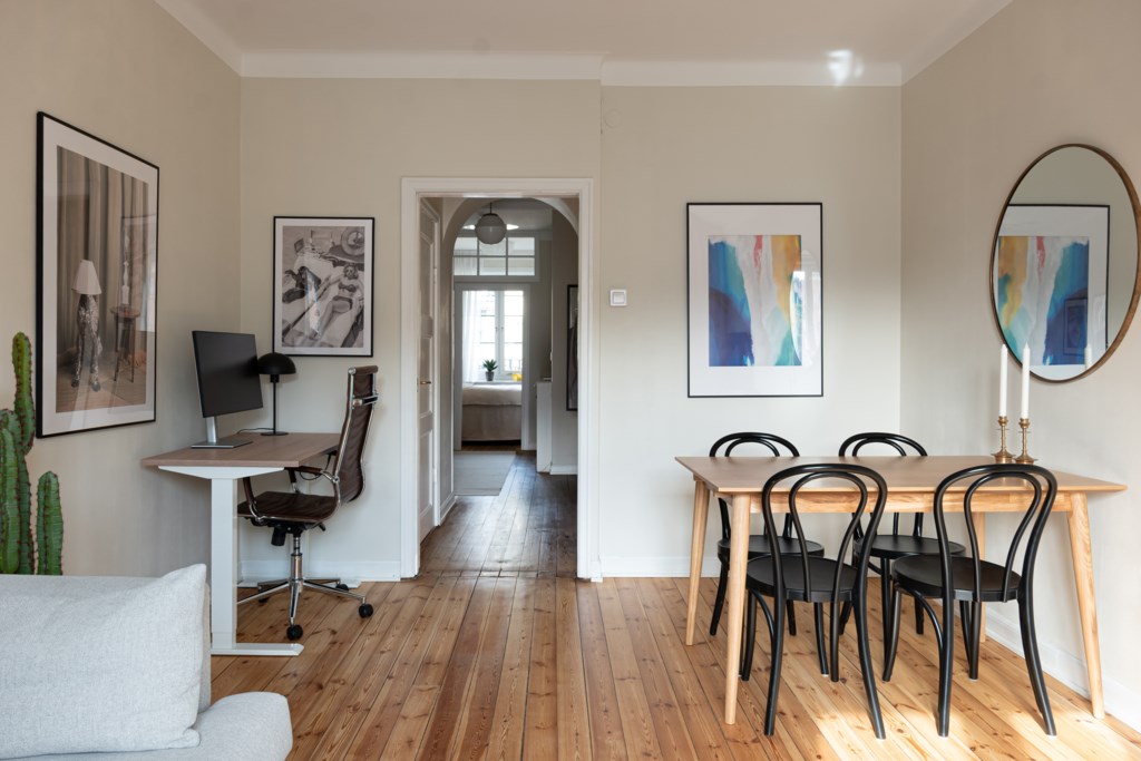 Genomgående sekelskiftespärla i skuldfri förening högt upp i huset på bästa stället i Birkastan!