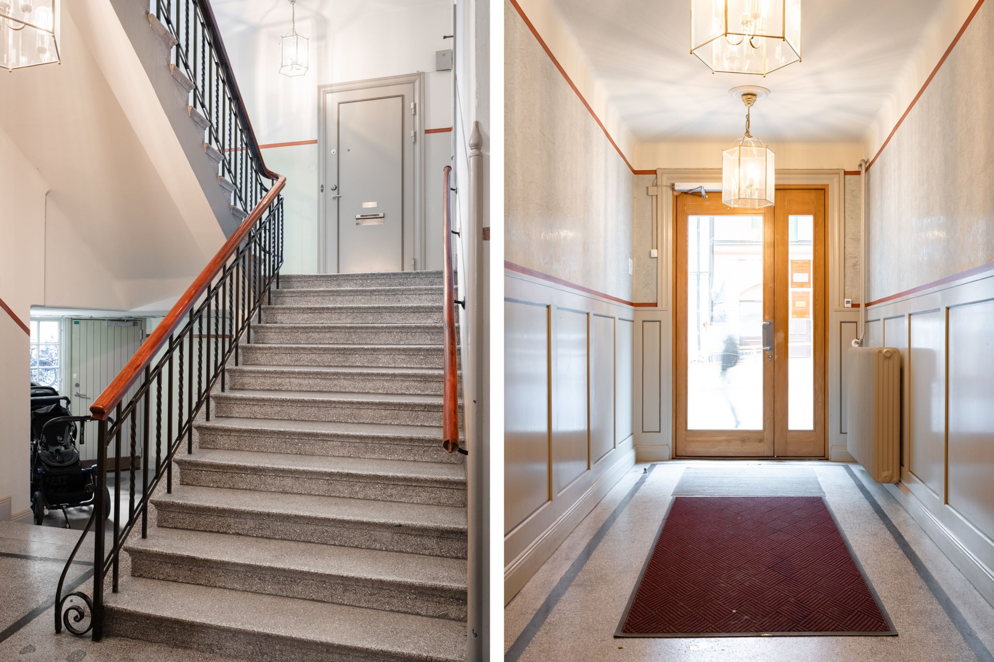 - Plats för barnvagnar på angivna platser i entréerna.