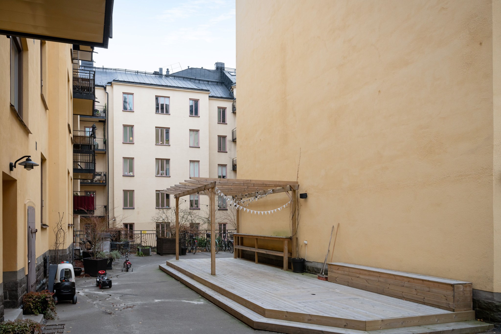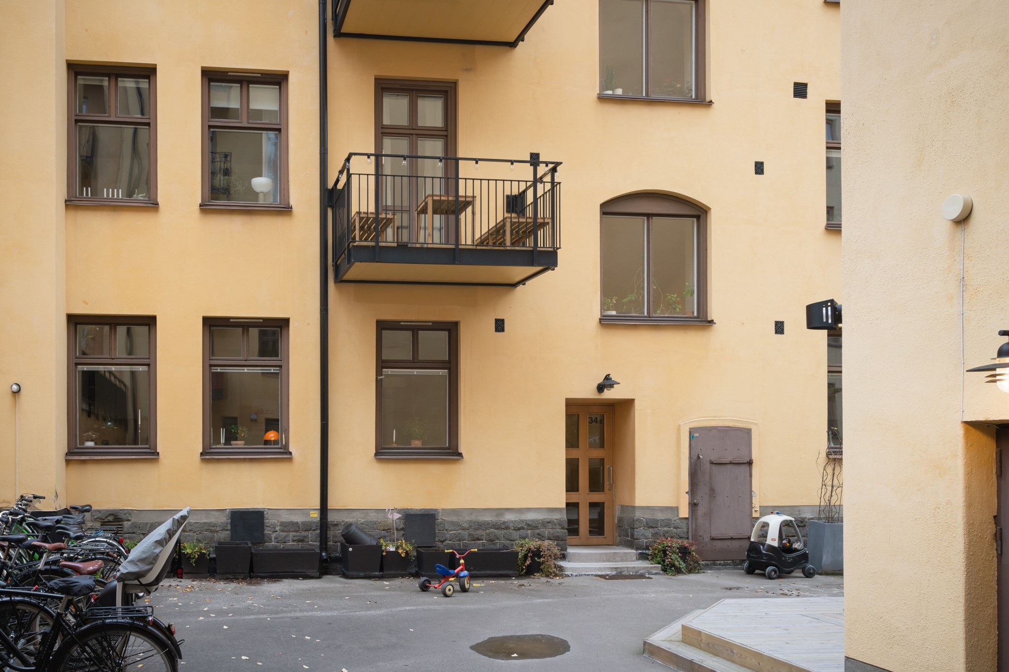 2026 Renovering av porten till entrén numrerad 34E prel.hösten 2026).ParkeringI området råder boendeparkering.Gemensamma utrymmen- Tvättstuga med fönster mot gården.