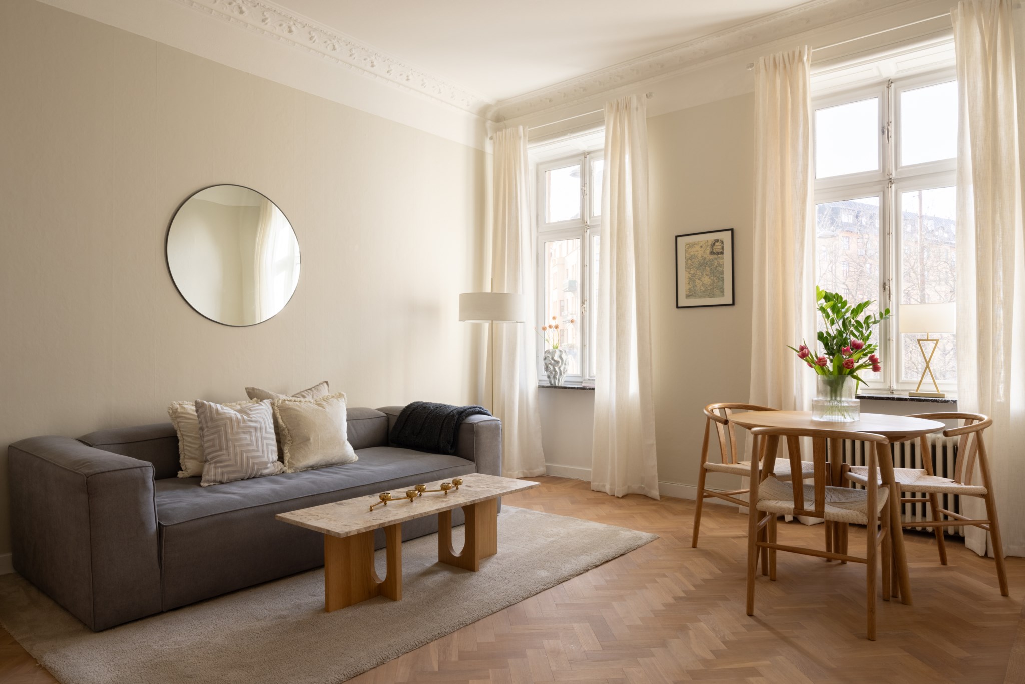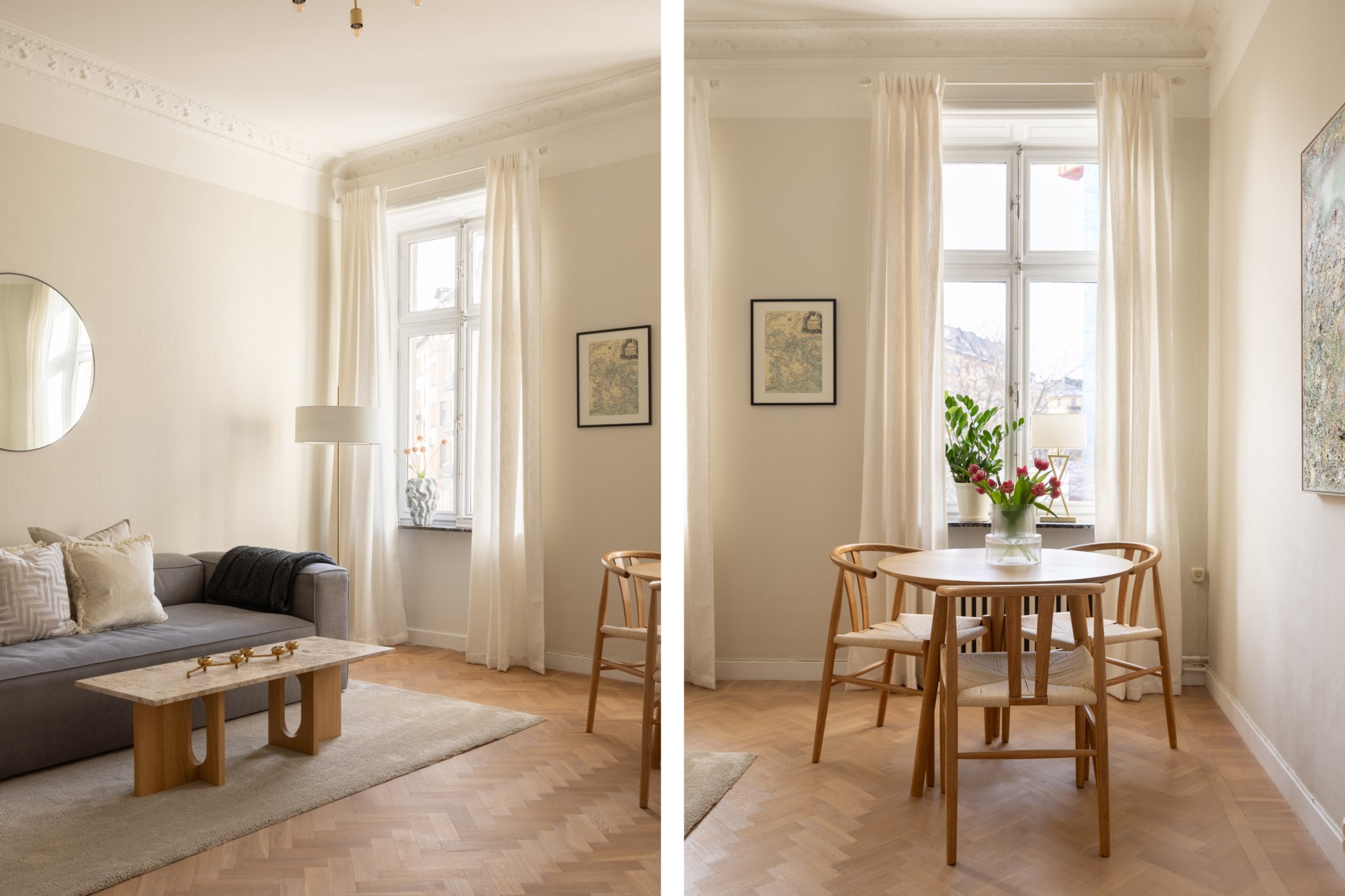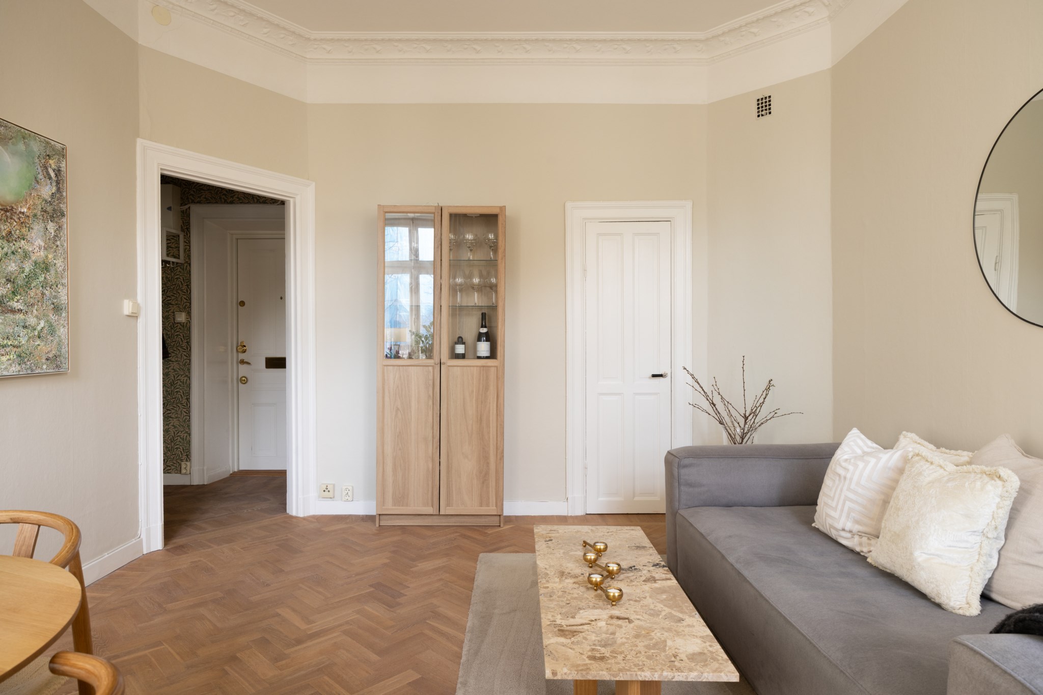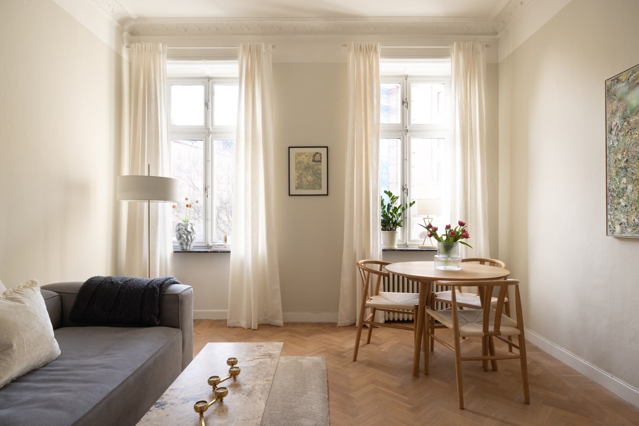 Varmt välkomna till denna sekelskiftespärla belägen på en attraktiv gata med fyra fönster i fil. Lägenheten präglas av härligt ljusinsläpp, högt i tak, originaldetaljer och fina materialval. Denna väldisponerad tvåa är utrustad med allt ni kan önska er, fullt utrustat kök med diskmaskin och plats för matbord, socialt vardagsrum med plats för stort matbord och soffgupp, välplanerat sovrum med förvaring och ett kaklat badrum.