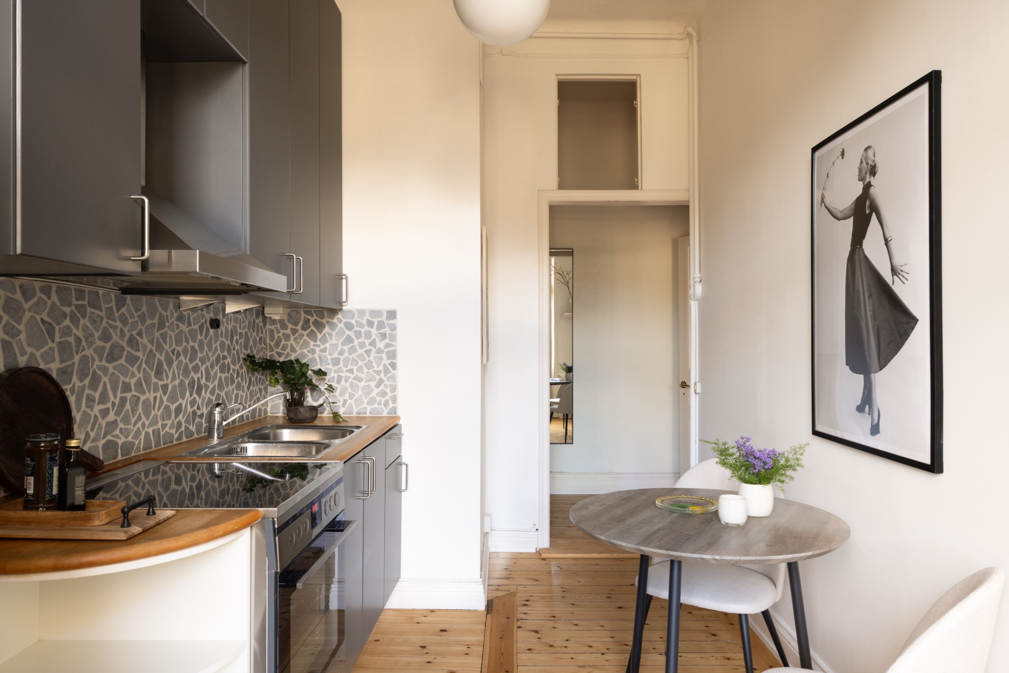 En välplanerad och charmig lägenhet med klassiska sekelskiftesdetaljer och balkong i ett attraktivt läge.