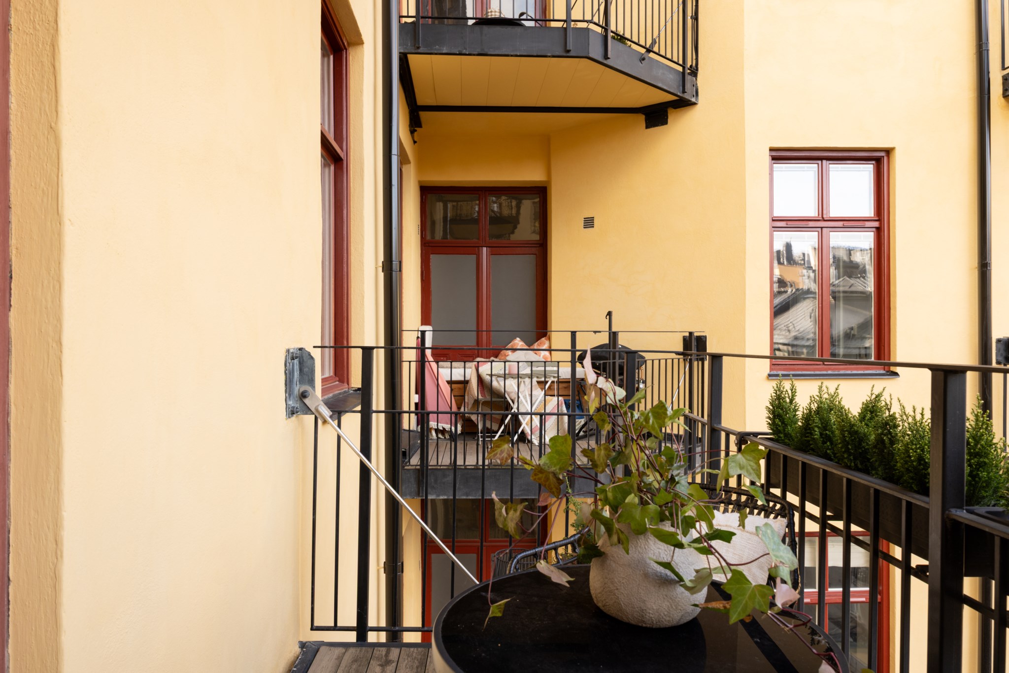 Vacker sekelskifteslägenhet från 1903 med balkong mot lummig innergård och originalstuckatur!