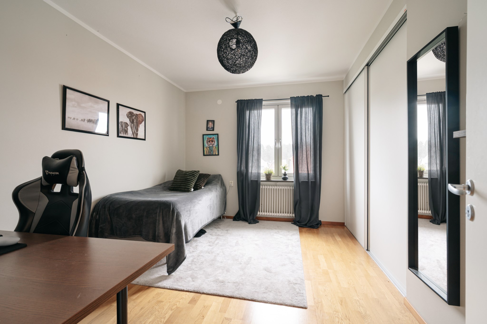 Sovrum med gott om plats till säng, sängbord, skrivbord och ytterligare möblering. Förvaring i skjutdörrsgarderob.
