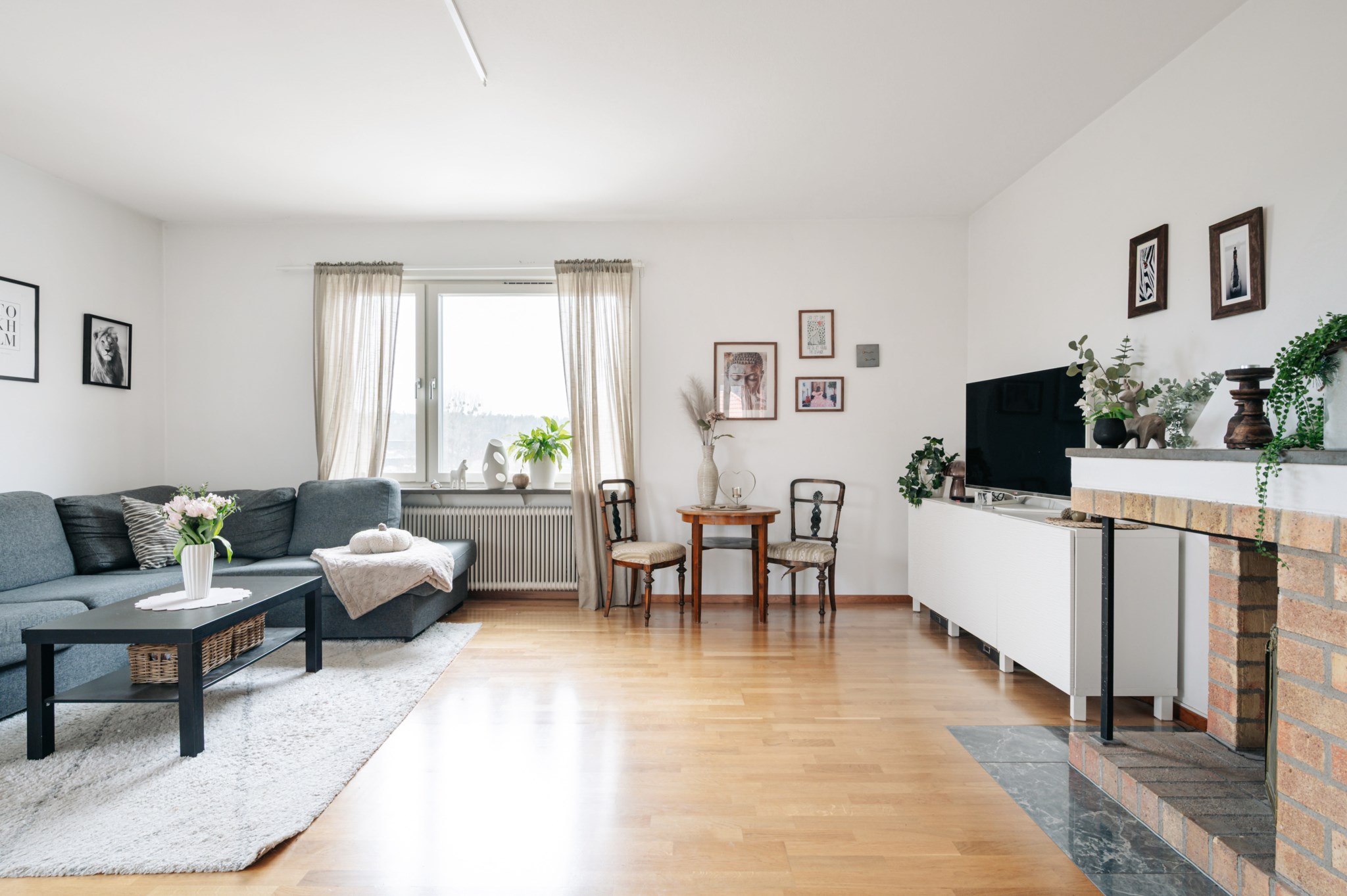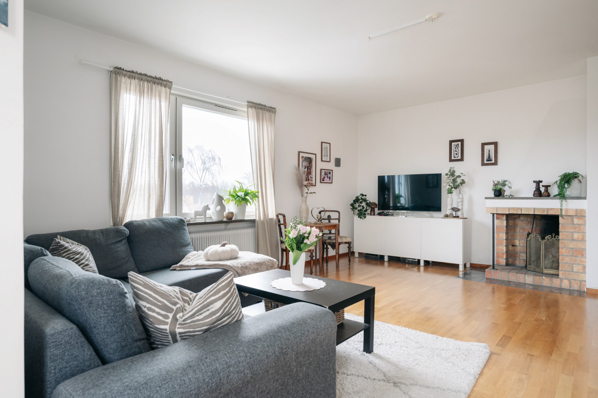 Ljust vardagsrum med ett stora fönsterpartier som bjuder på en fantastisk utsikt i fritt läge. Rummet ger plats till en stor sällskapsdel och ytterligare möbelering. Från vardagsrummet når du även den härliga balkongen som förlänger bostaden när vädret tillåter. I vardagsrummet finns en fungerande öppen spis söm höjer mysfaktorn.