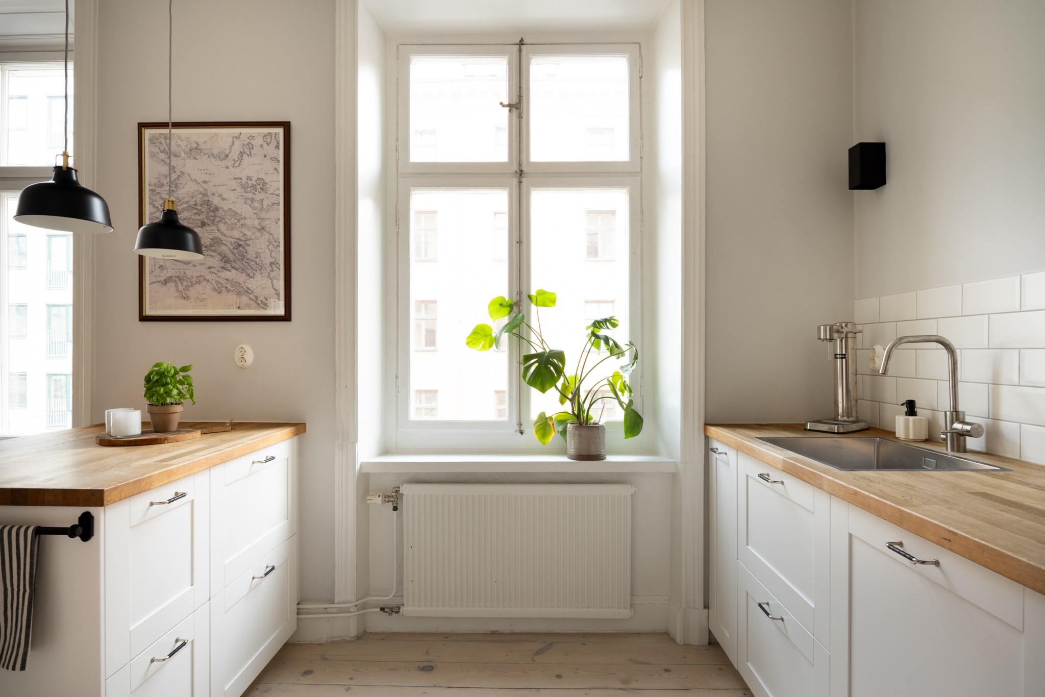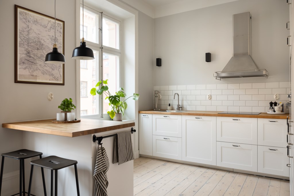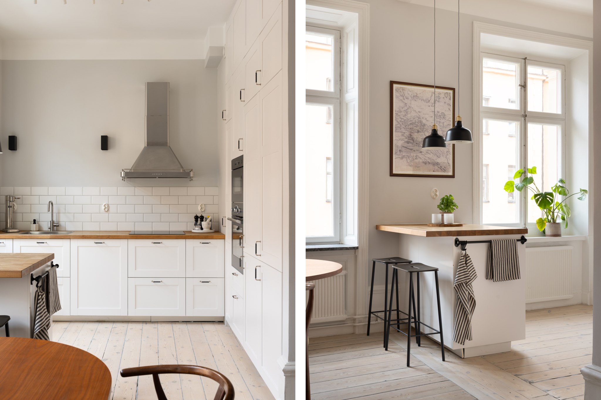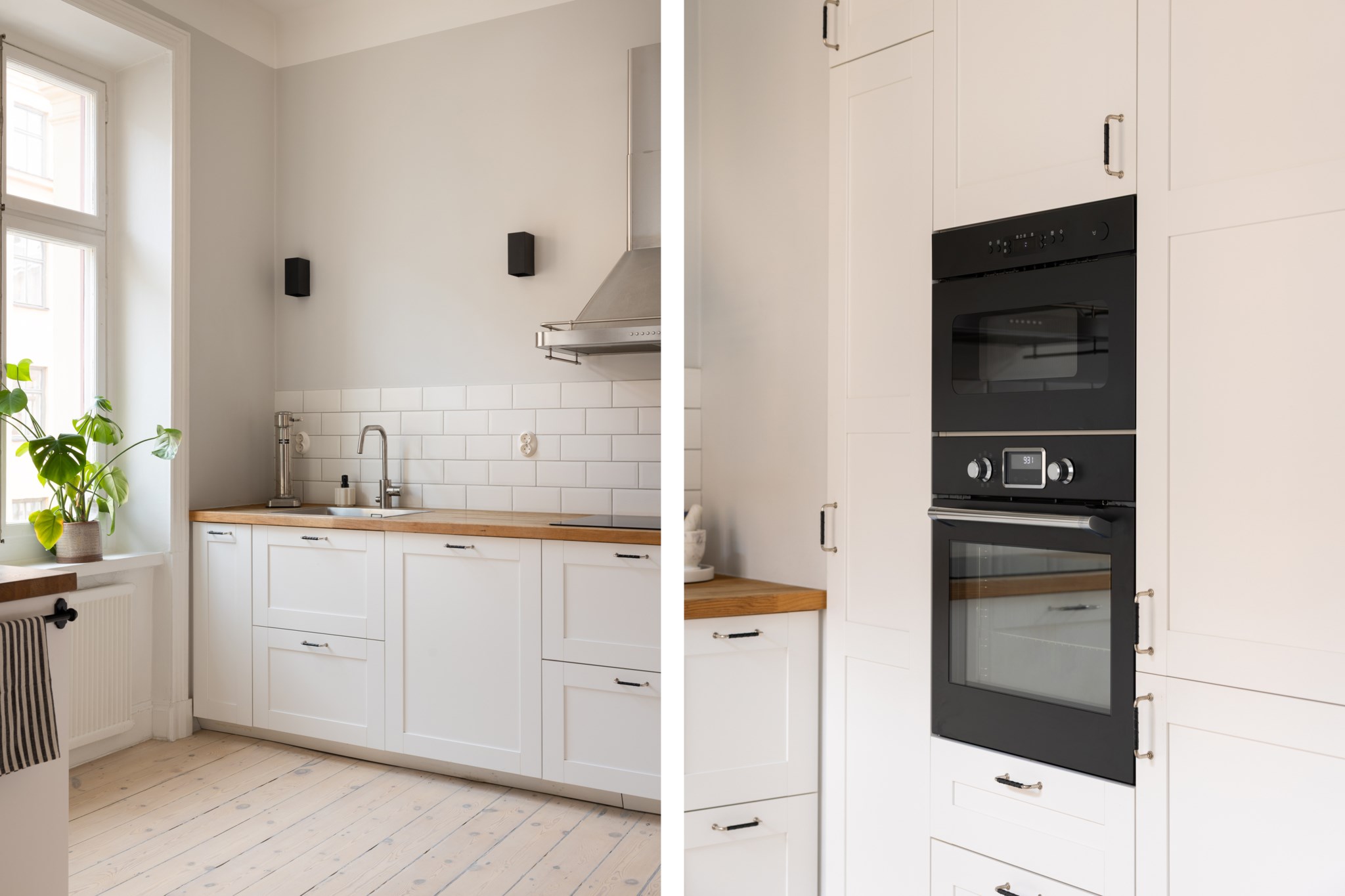 Köket är nyligen renoverat i stilren design med smakfulla materialval, goda arbetsytor och integrerade vitvaror – perfekt för både vardagsmatlagning och middagar med vänner. Även badrummet är fräscht och smart planerat, helkaklat med dusch och kombinerad tvättmaskin/torktumlare för extra bekvämlighet.
