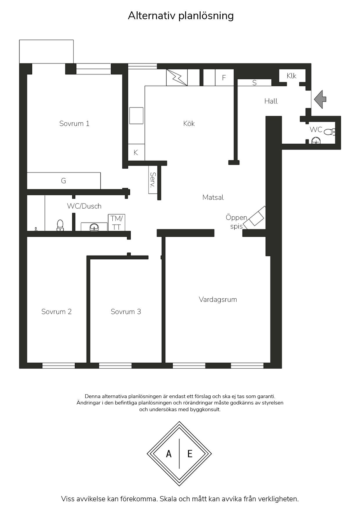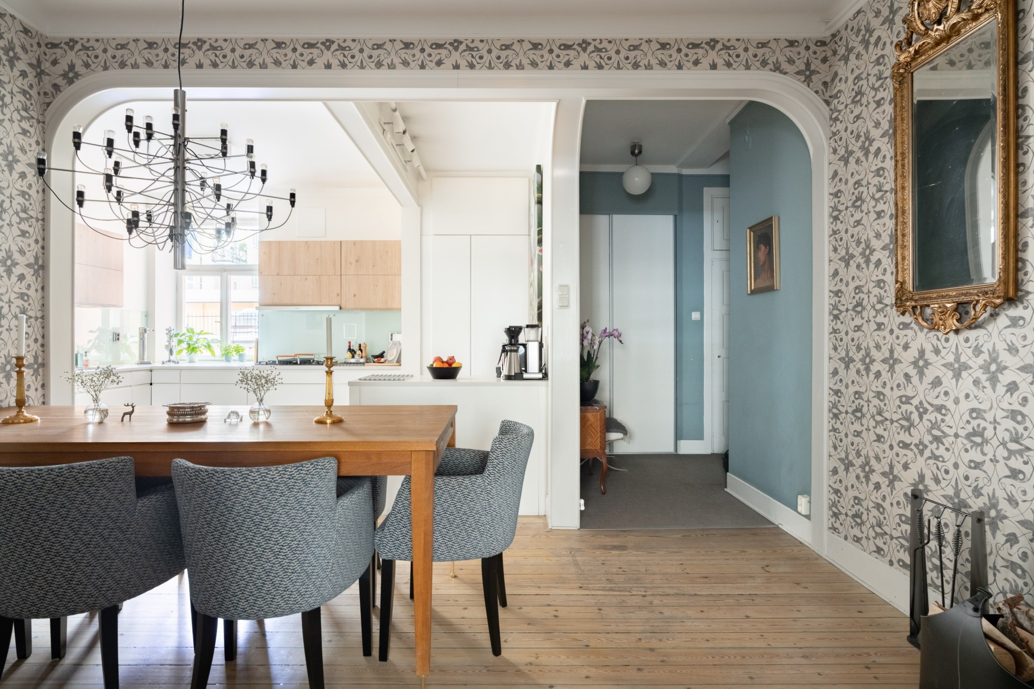 Planlösningen är flexibel och ger möjlighet att skapa en potentiell fyrarummare, perfekt för den växande familjen eller för dig som önskar extra arbets- eller gästrum. Den härliga balkongen blir en naturlig förlängning av bostaden och en uppskattad plats för morgonkaffet eller kvällens samtal. Ljuset flödar in genom de stora fönsterpartierna och förstärker känslan av rymd och sekelskiftescharm i varje rum.