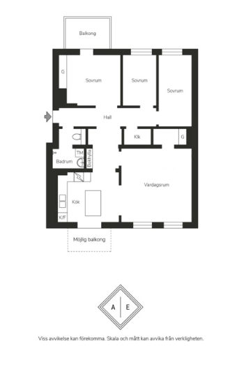 Lägenheten har en flexibel planlösning med möjlighet att bygga om till en 4:a och anlägga balkong från köket– perfekt för den som vill sätta sin egen prägel.