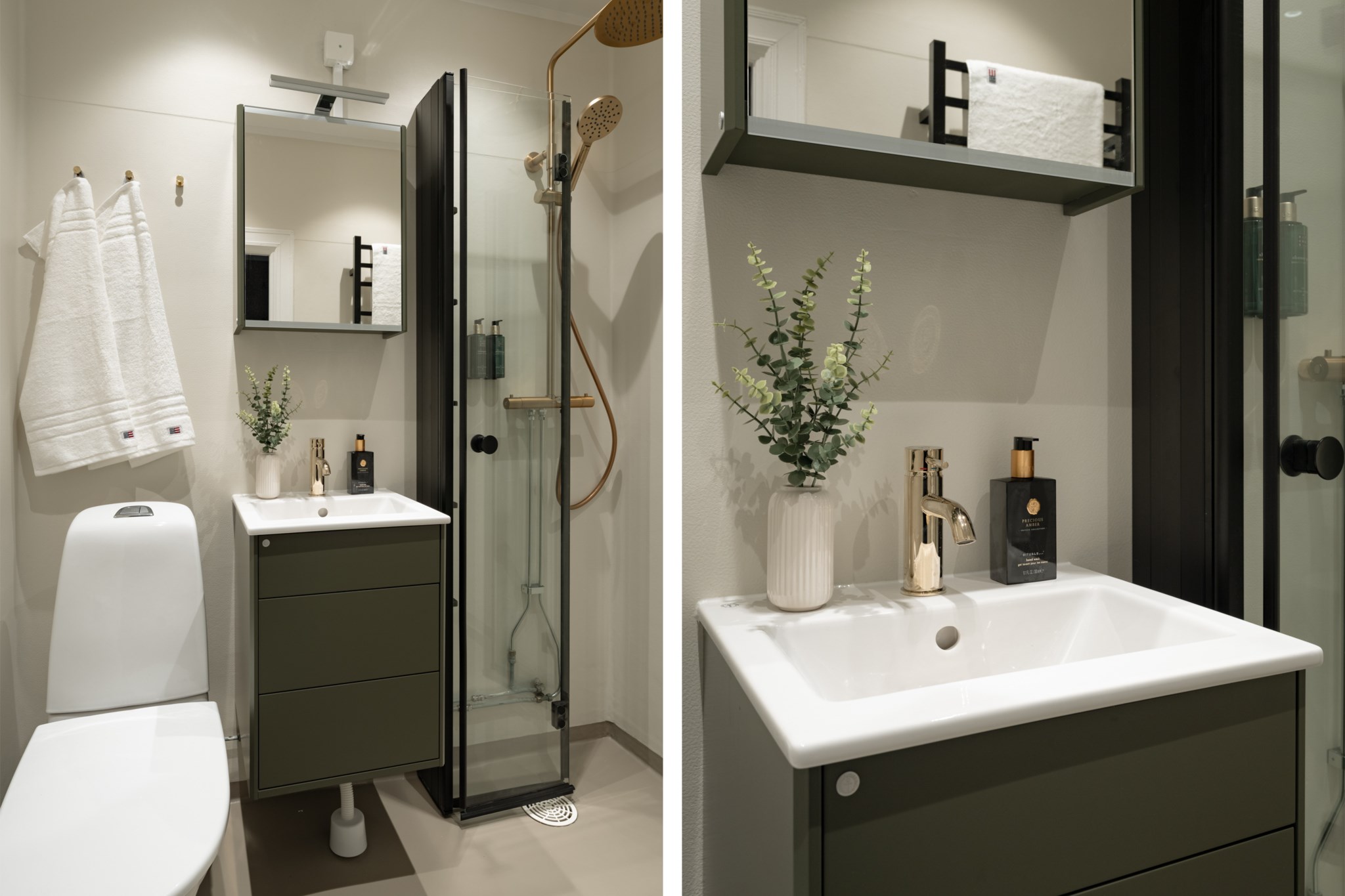 - Ny inredning så som Gustavsbergs WC, tvättställskåp Gustavsberg med lådor, spegelskåp Gustavsberg med belysning och eluttag.