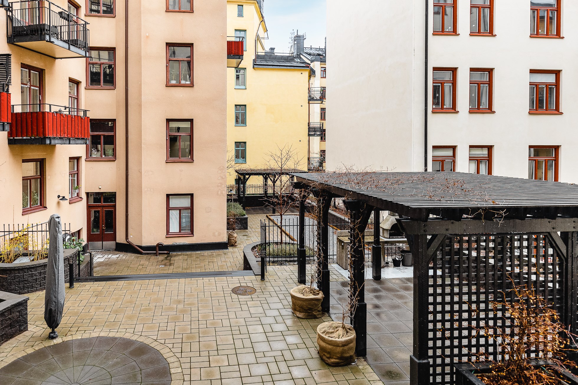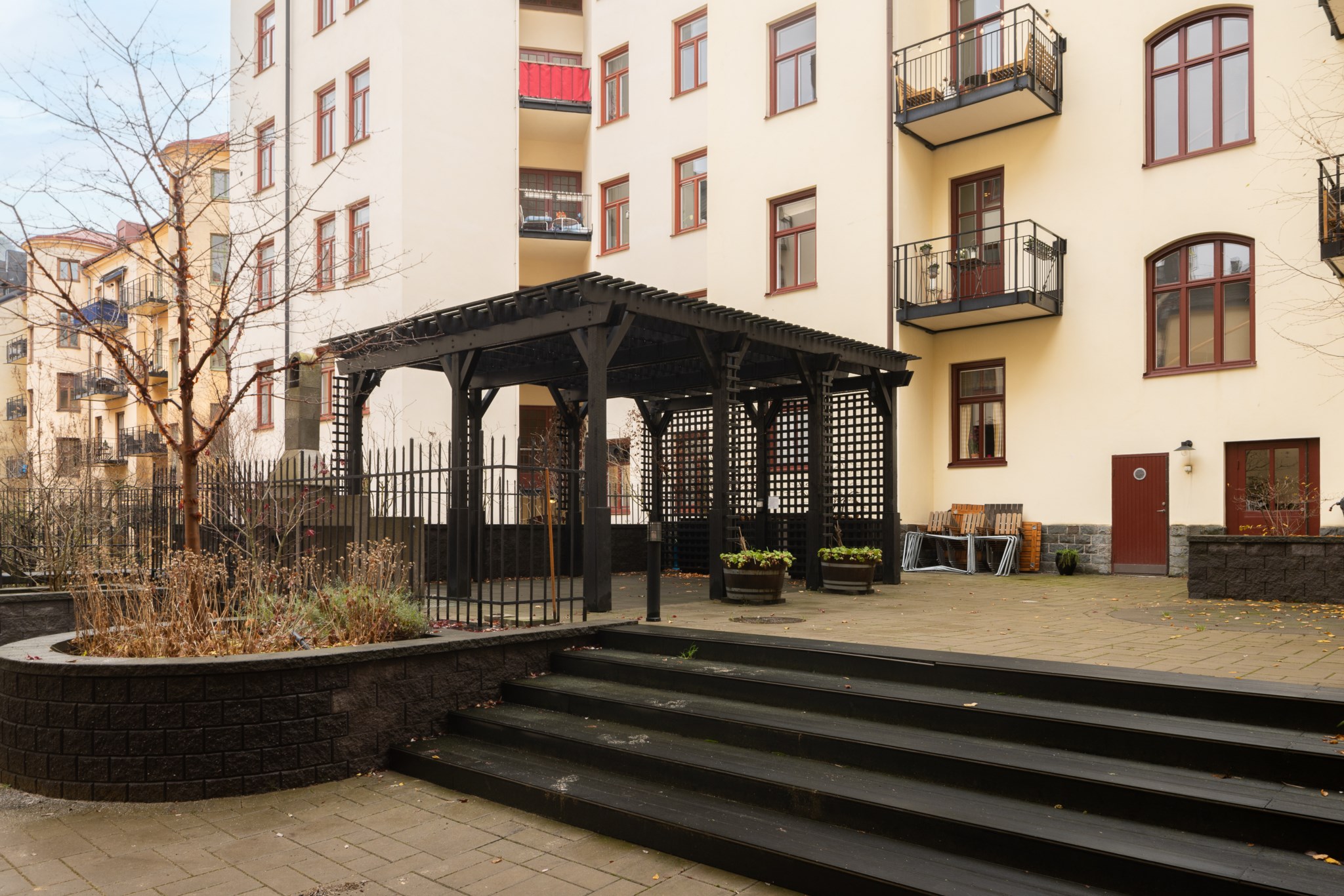 Här bor du i en stabil förening som äger marken. Föreningen erbjuder även en fin innergård med sittgrupper och pergola samt tillgång till bastu och övernattningslägenhet, ett uppskattat mervärde för boende.