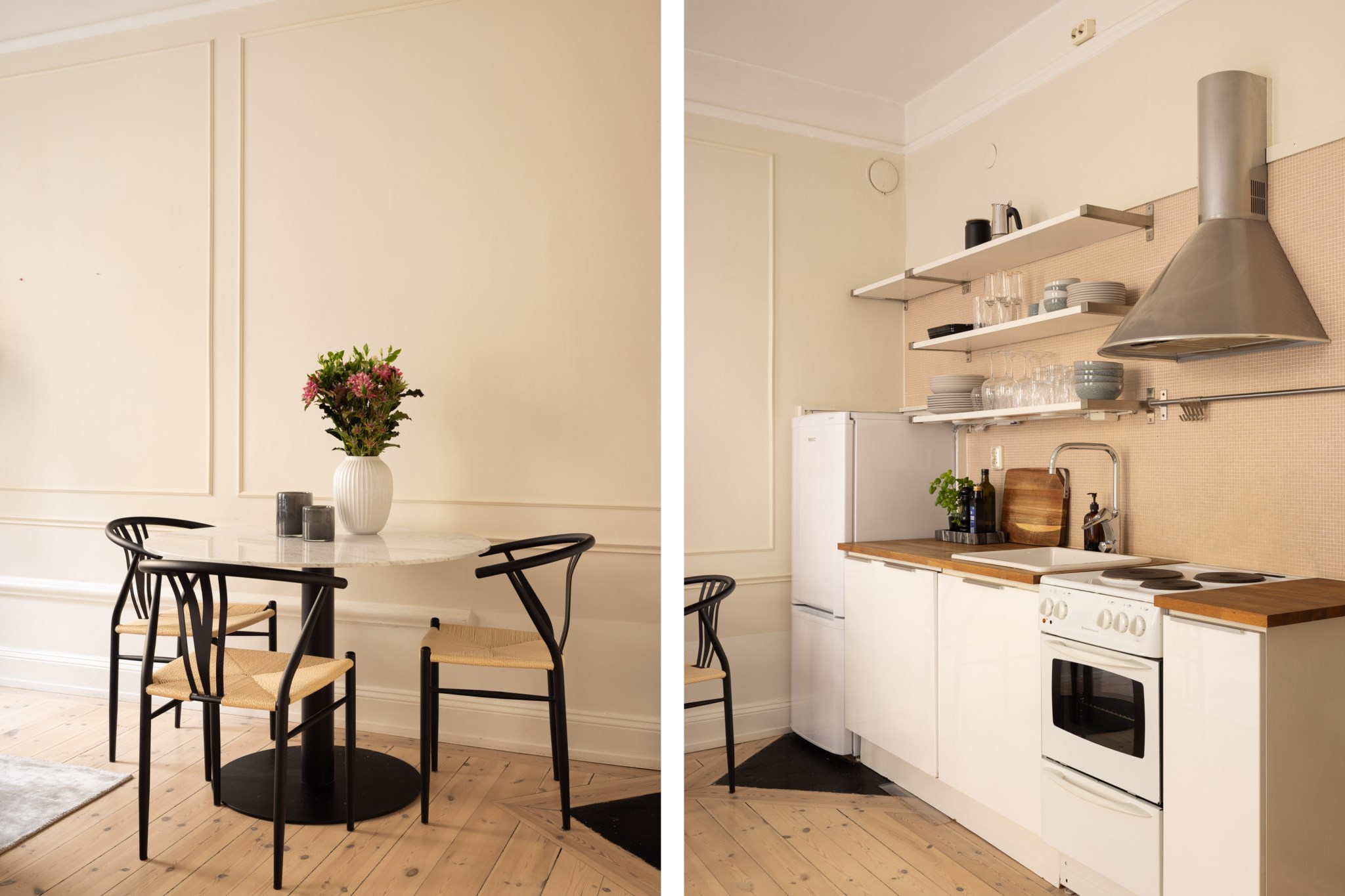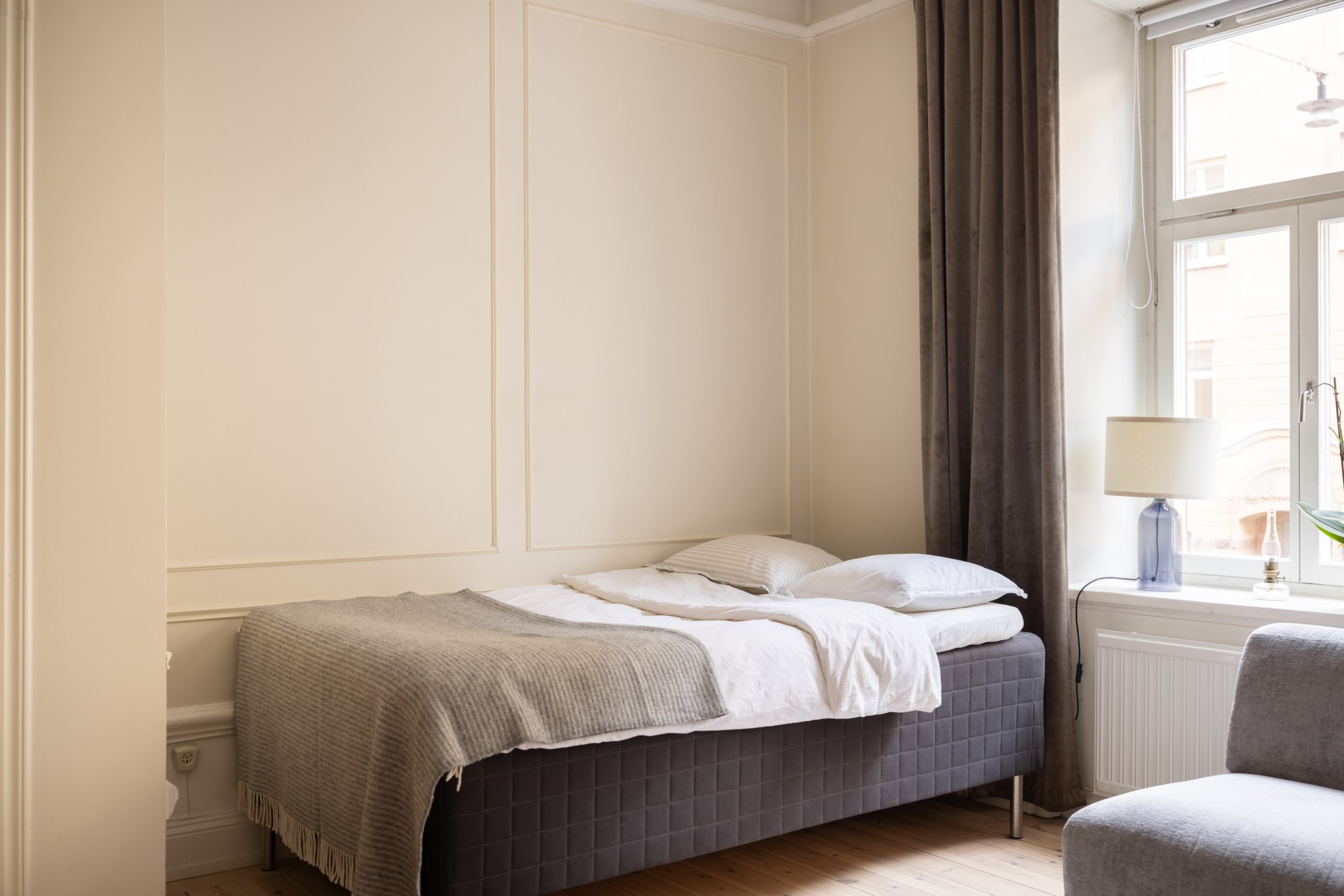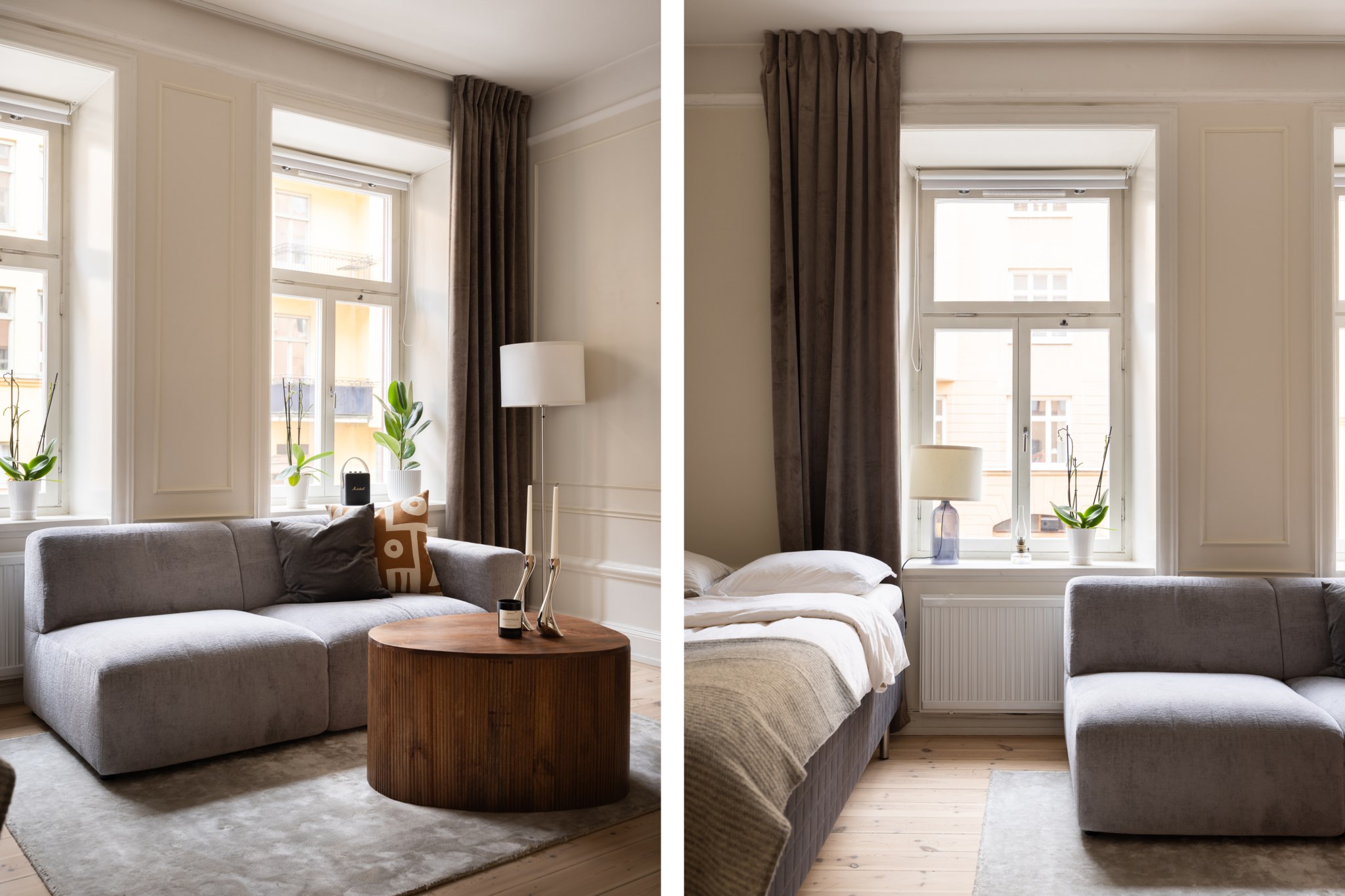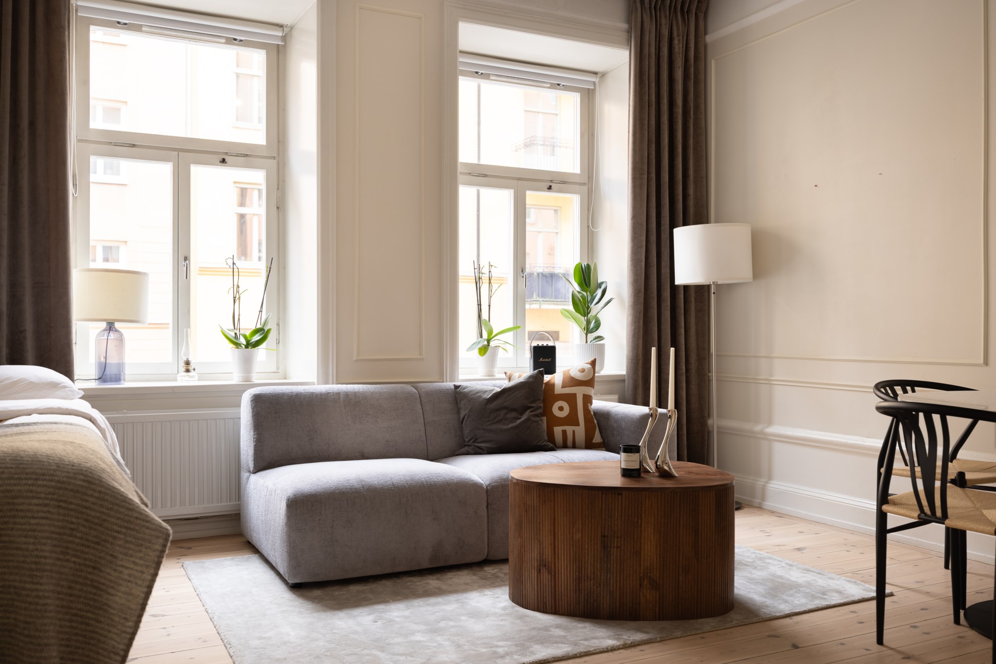 Här bor du i en ljus och charmig bostad där smakfulla materialval möter tidstypiska detaljer. Bostaden karaktäriseras av generös takhöjd, vackert originalgolv i trä, dekorativa vägglister och genomgående ljusbeige kulör. I allrummet möts du av ett härligt ljusinsläpp via två fönster i fil. Den öppna planlösningen ger gott om utrymme för både soffa, matplats, säng och annat möblemang efter önskemål. Köket är välplacerat i öppen planlösning med allrummet och är fullt utrustat, perfekt för både vardag och sociala tillfällen. Badrummet är nyrenoverat (november 2025) i samband med stambyte och håller högsta standard, med stilrena ytskikt samt golvvärme och tvättmaskin för bästa komfort.