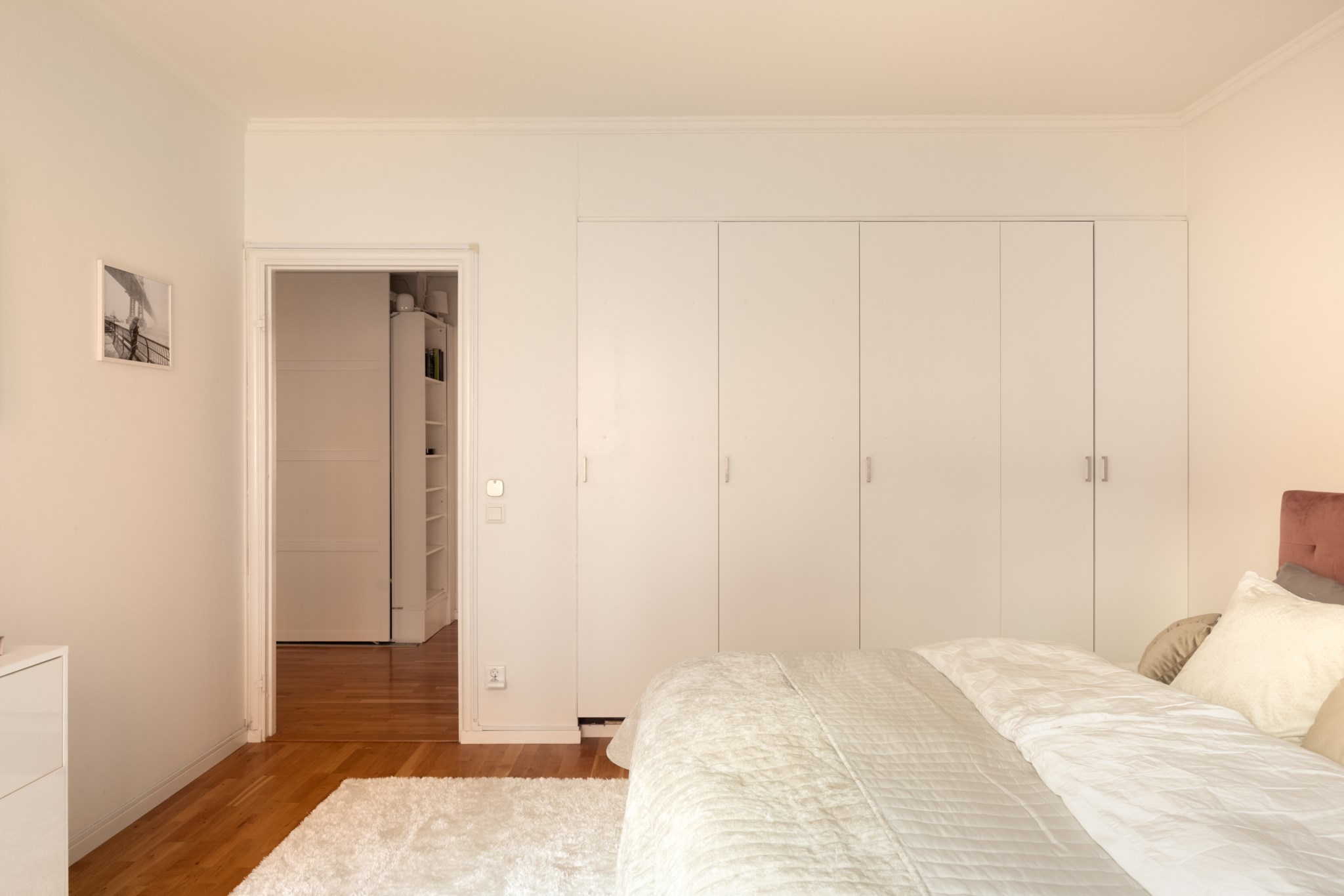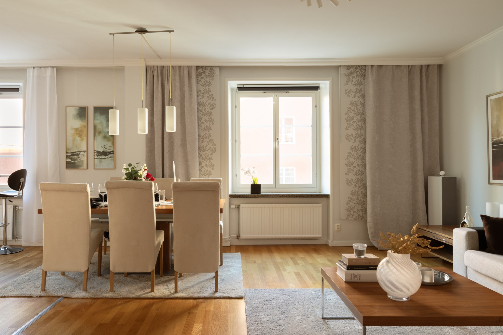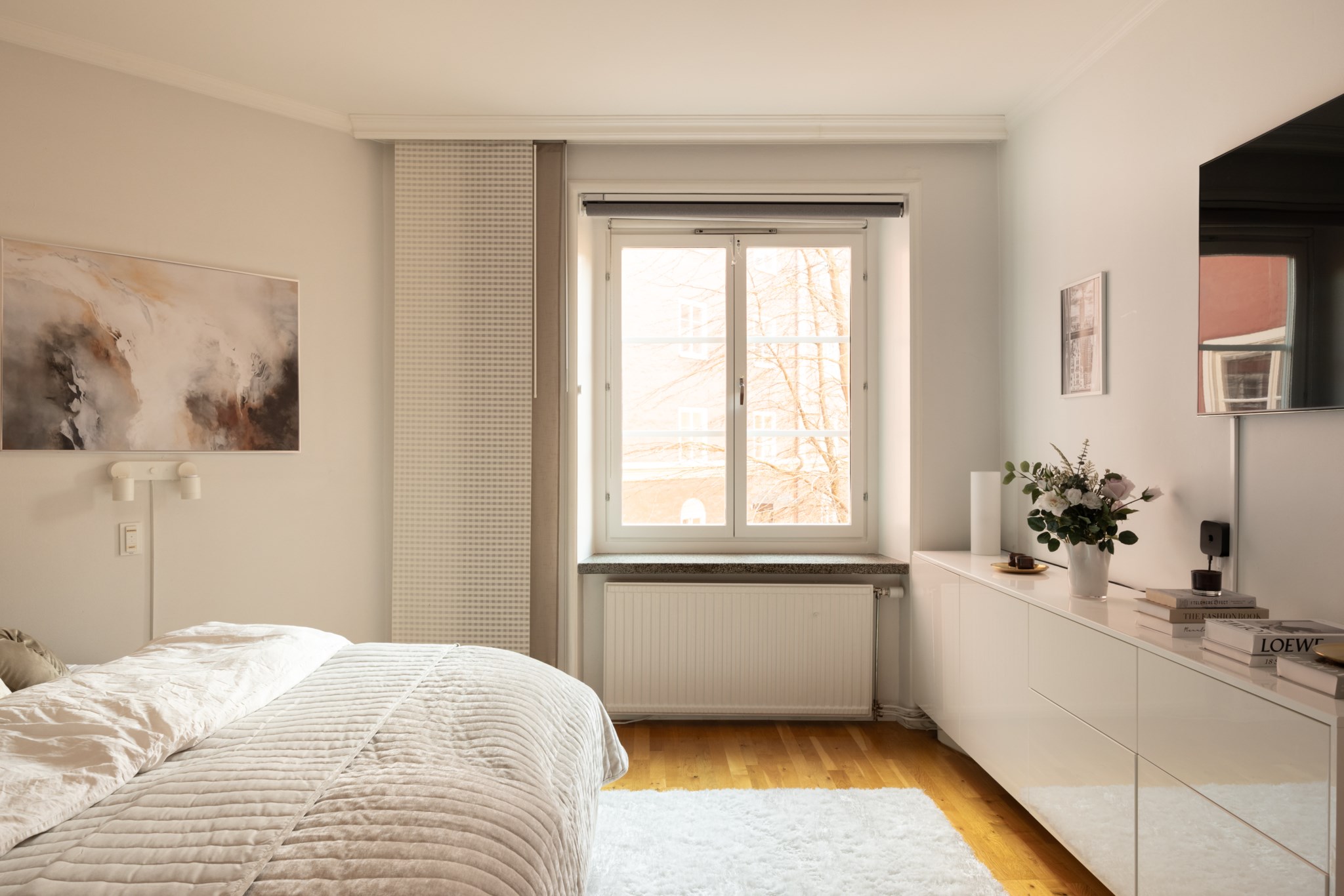 Hjärtat i detta vackra hem är den öppna planlösningen mellan det stilrena köket och det rymliga vardagsrummet, med gott om plats för stor soffgrupp och tilltagen matplats - perfekt för middagar med familj och vänner. Lägenheten rymmer två stora insynsskyddade sovrum med fri utsikt över innergården. Bostaden är i mycket fint skick: golven i köket byttes 2021, samtliga vitvaror i kök och badrum är utbytta mellan 2021-2025, och ytskikt, lister samt fönster har målats om kontinuerligt. Genomgående för hela lägenheten är den platsbyggda och smarta förvaringen. Bostaden präglas av vackra tidstypiska detaljer, exempelvis djupa fönsternischer i sten, som ger karaktär åt varje rum.