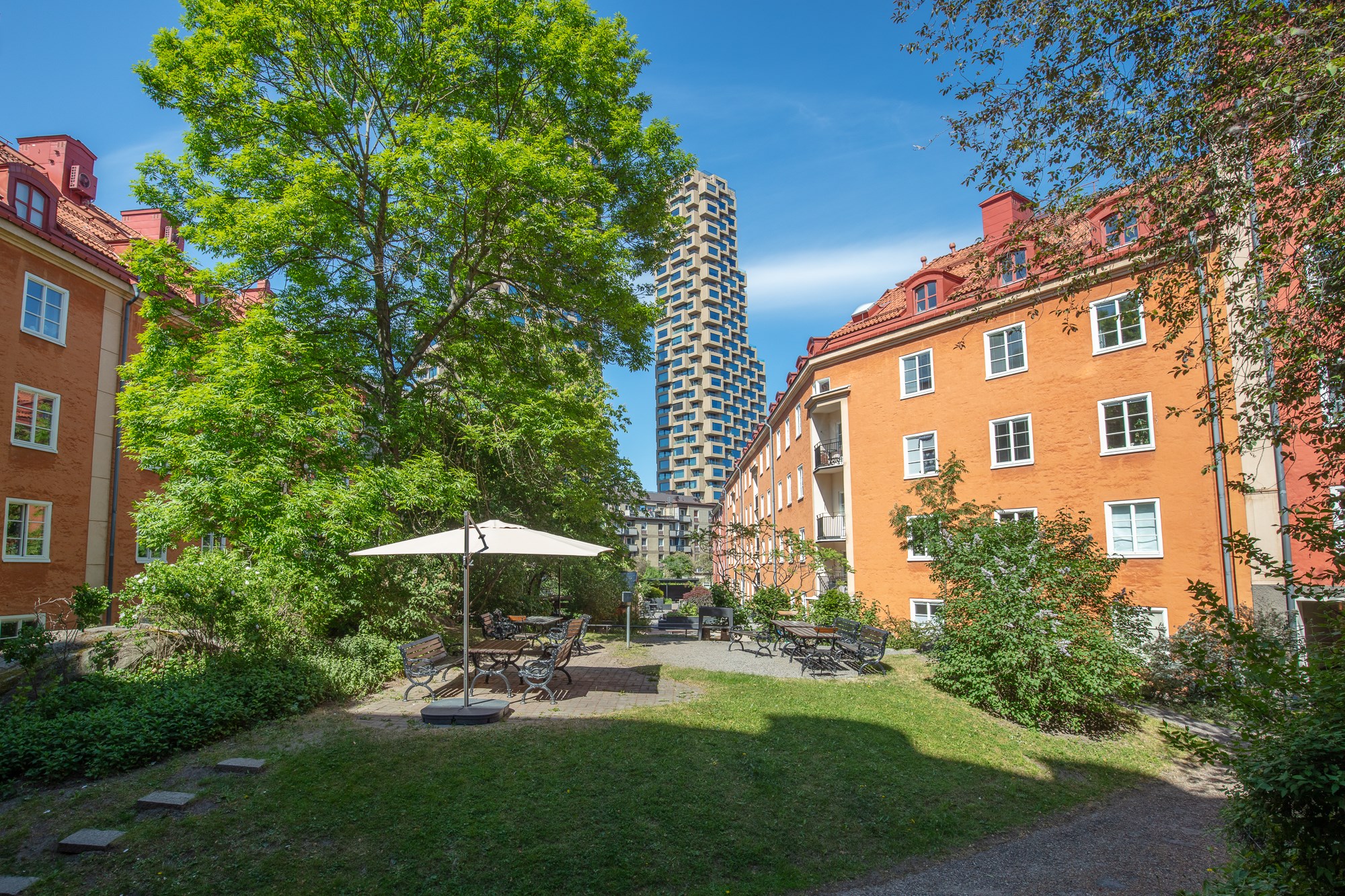 Som en grönskande förlängning av hemmet väntar dessutom föreningens fantastiska, parkliknande innergård, utrustad med möblerade uteplatser, grillmöjligheter och generösa lekytor där flera sällskap kan njuta av ljumma sommarkvällar utan att störa varandra. Detta är ett hem som erbjuder den sällsynta balansen av avkoppling mitt bland stadens alla möjligheter.