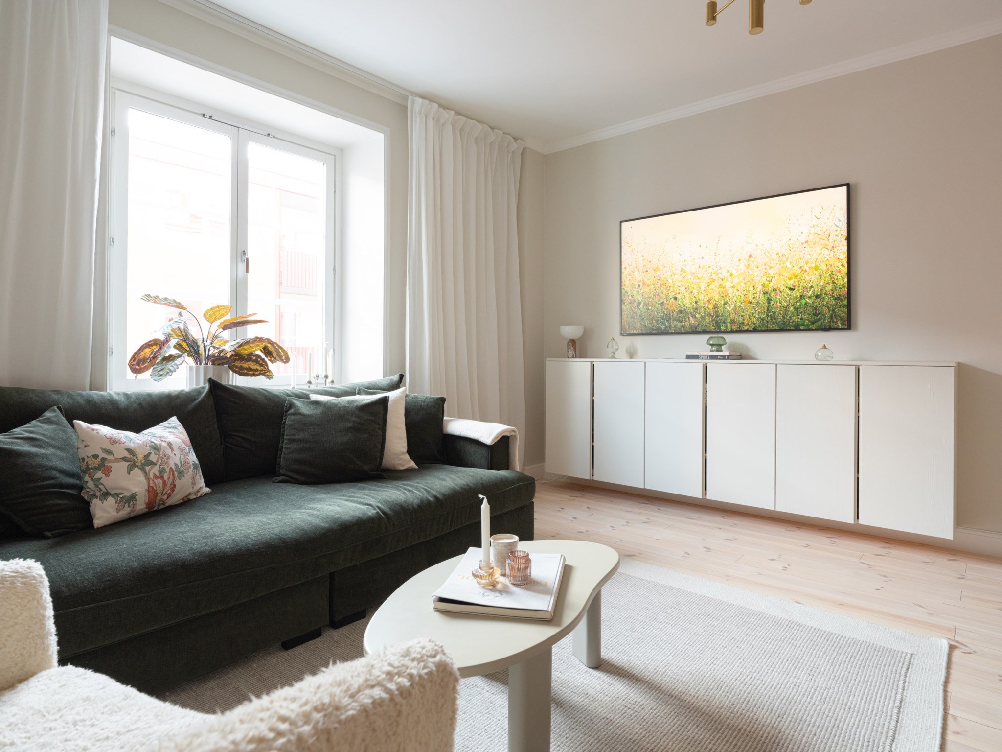 Detta är ett hem att trivas i – lika perfekt för dig som vill ha vardagskomfort med karaktär som för dig som uppskattar stadens puls med lugnet runt knuten.