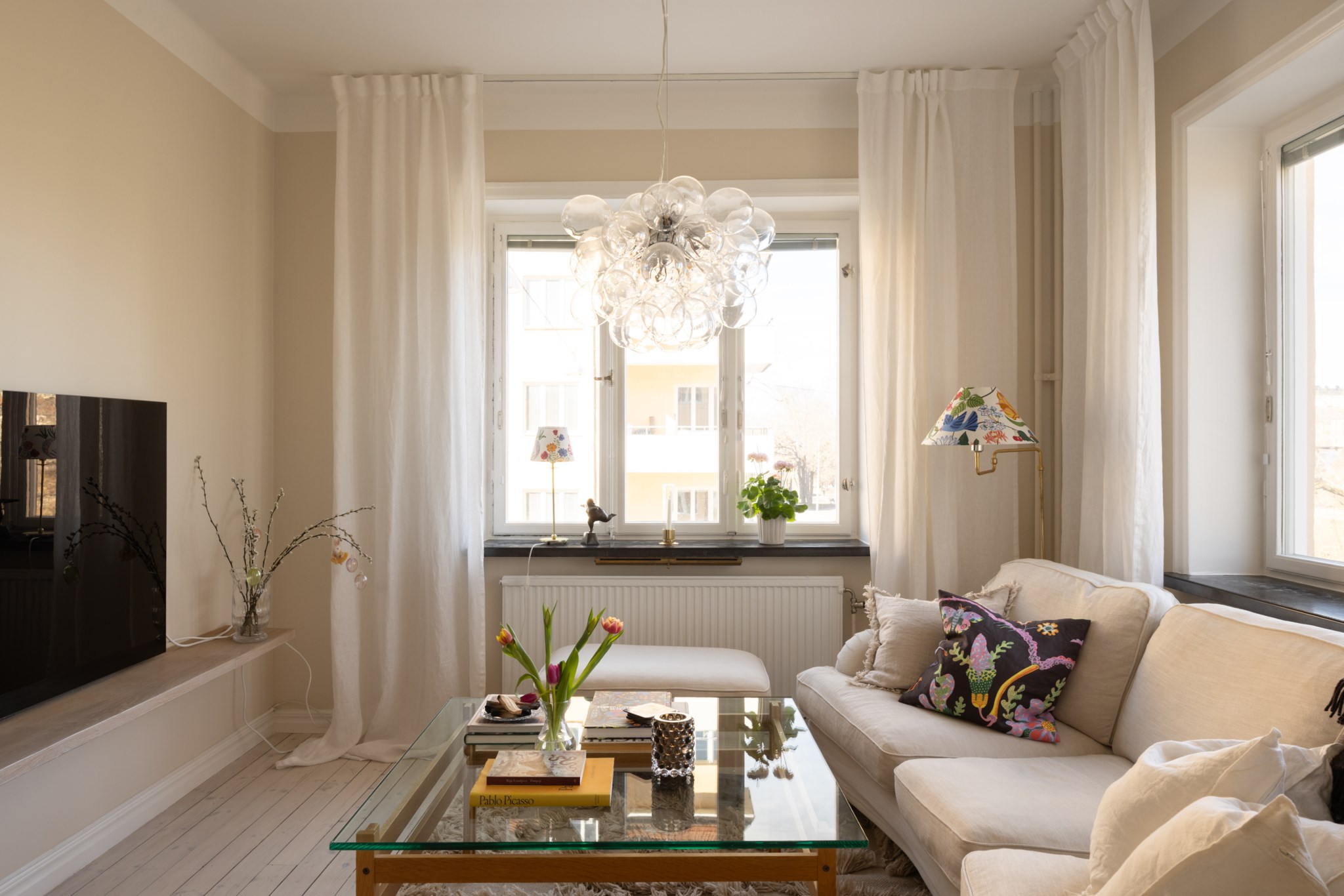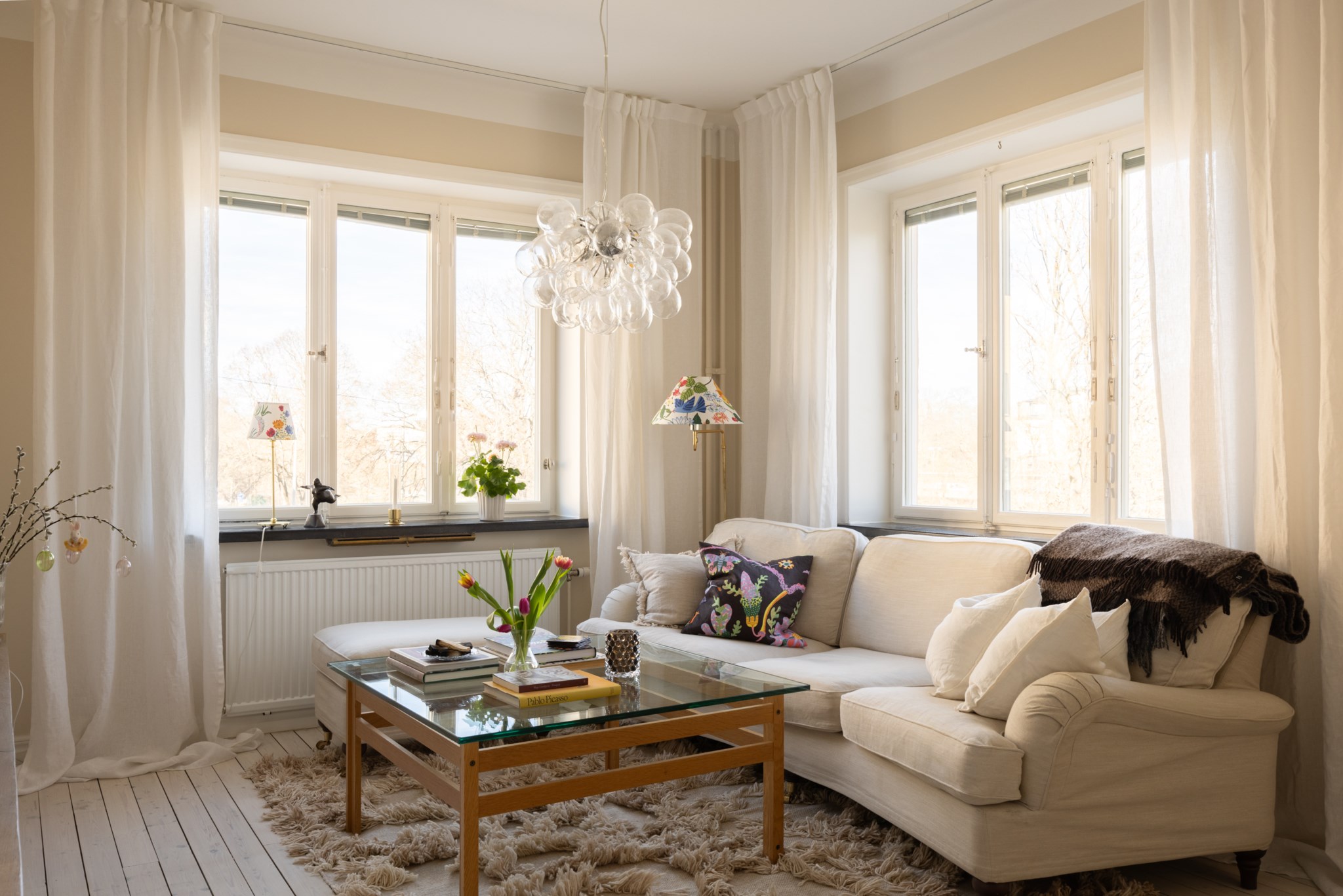 Välkommen till denna ljusa och stilfulla hörnlägenhet med fri sikt och en fantastisk utsikt över grönskande Fredhällsparken. Här möts du av ett generöst ljusinsläpp från flera väderstreck som tillsammans med den genomgående ljusa färgsättningen och de vackra trägolven skapar en luftig och harmonisk atmosfär.