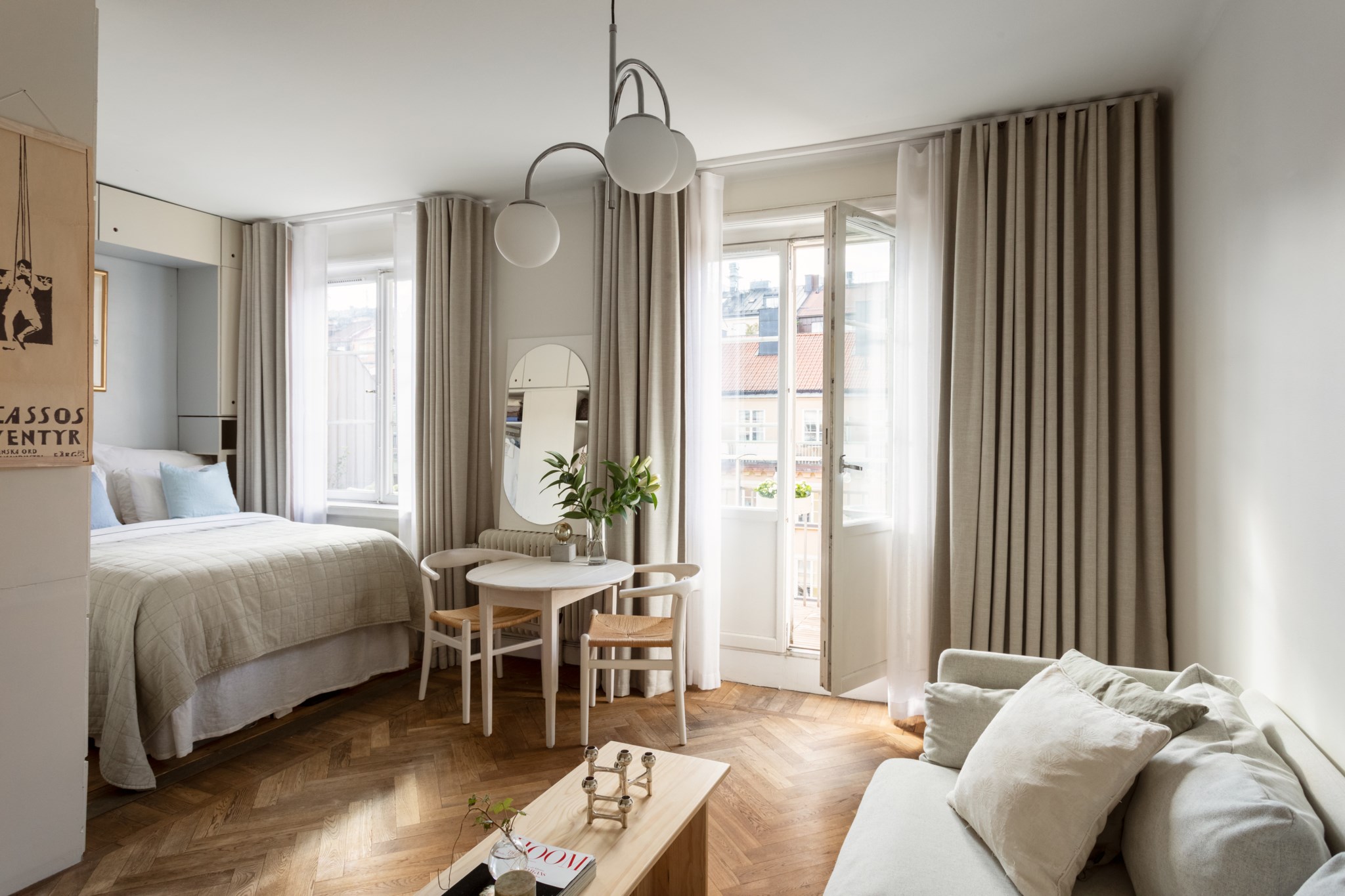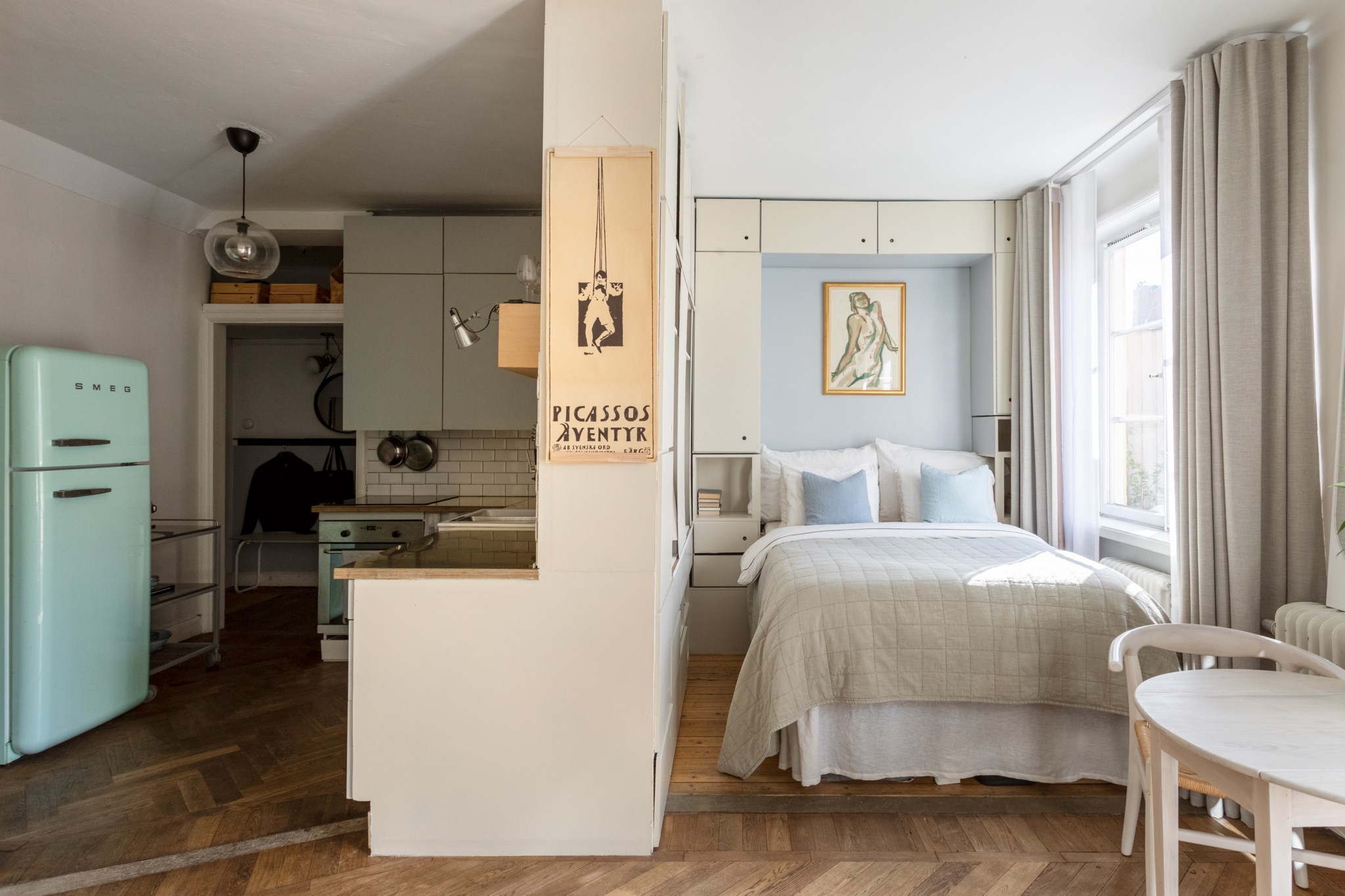 Varmt välkomna till denna 20-talspärla högst upp i huset med en solig och rymlig kungsbalkong. Spröjsade fönster, vackert trägolv och generös takhöjd präglar denna attraktiva bostad. Väldisponerat kök i en öppen planlösning mot vardagsrummet, välplanerat sovdel med plats för dubbelsäng, bra förvaring och rymligt. Möjlig tvåa.